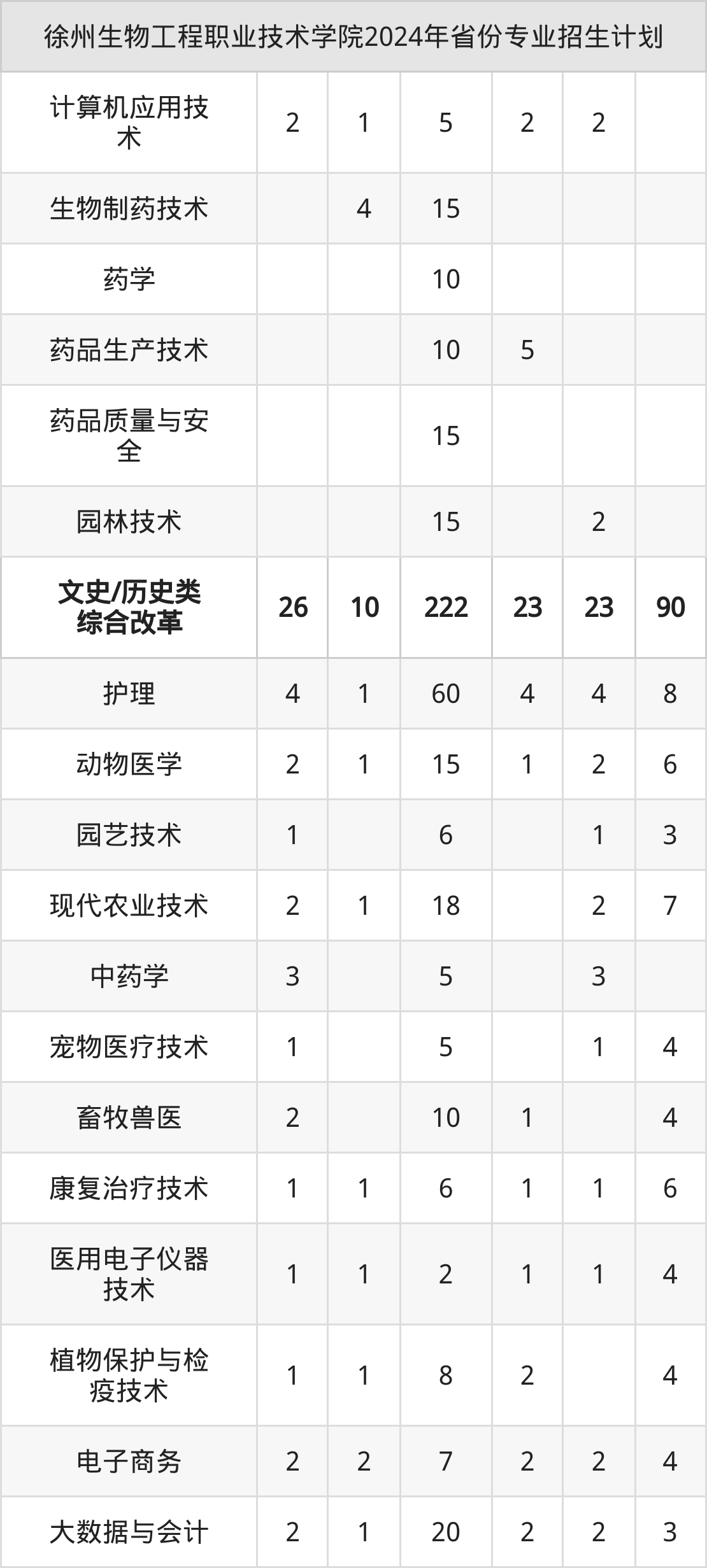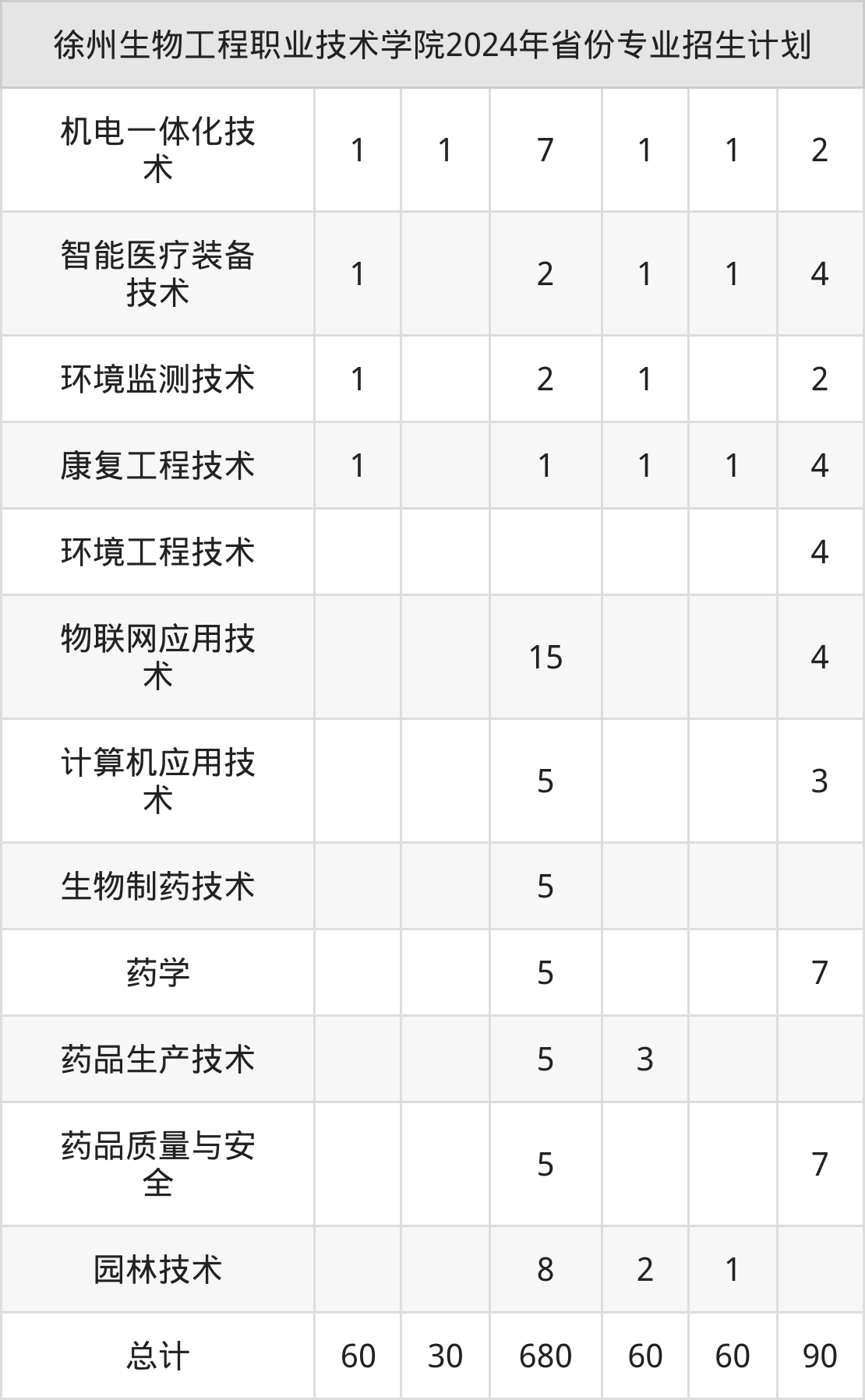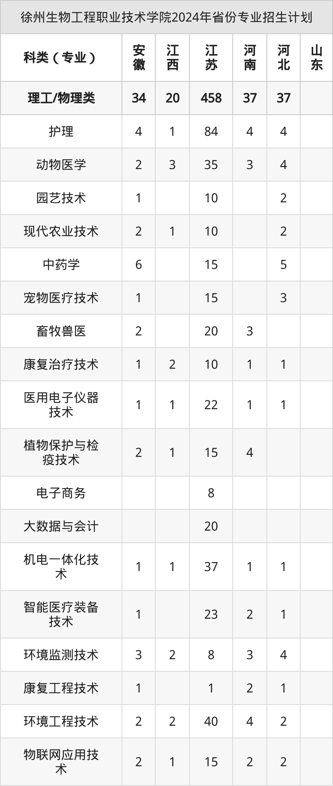 2025年徐州生物工程职业技术学院专科招生计划待公布,下面附上2024年数据,暂供参考: