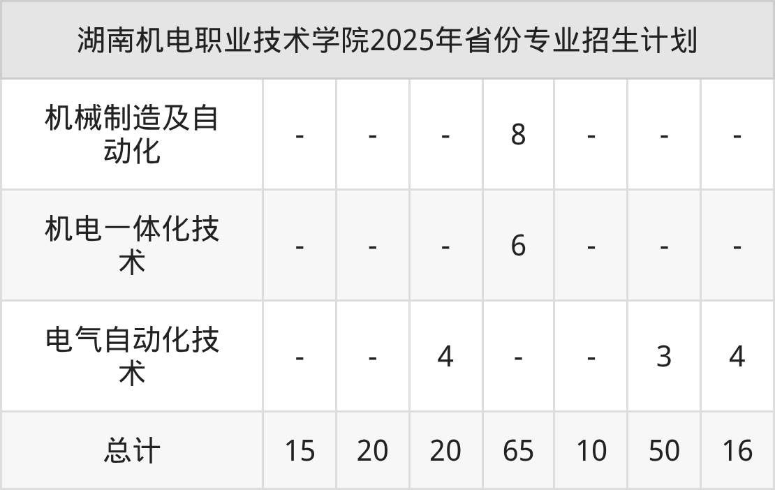 2026年湖南机电职业技术学院专科招生计划待公布,下面附上2025年数据,暂供参考: