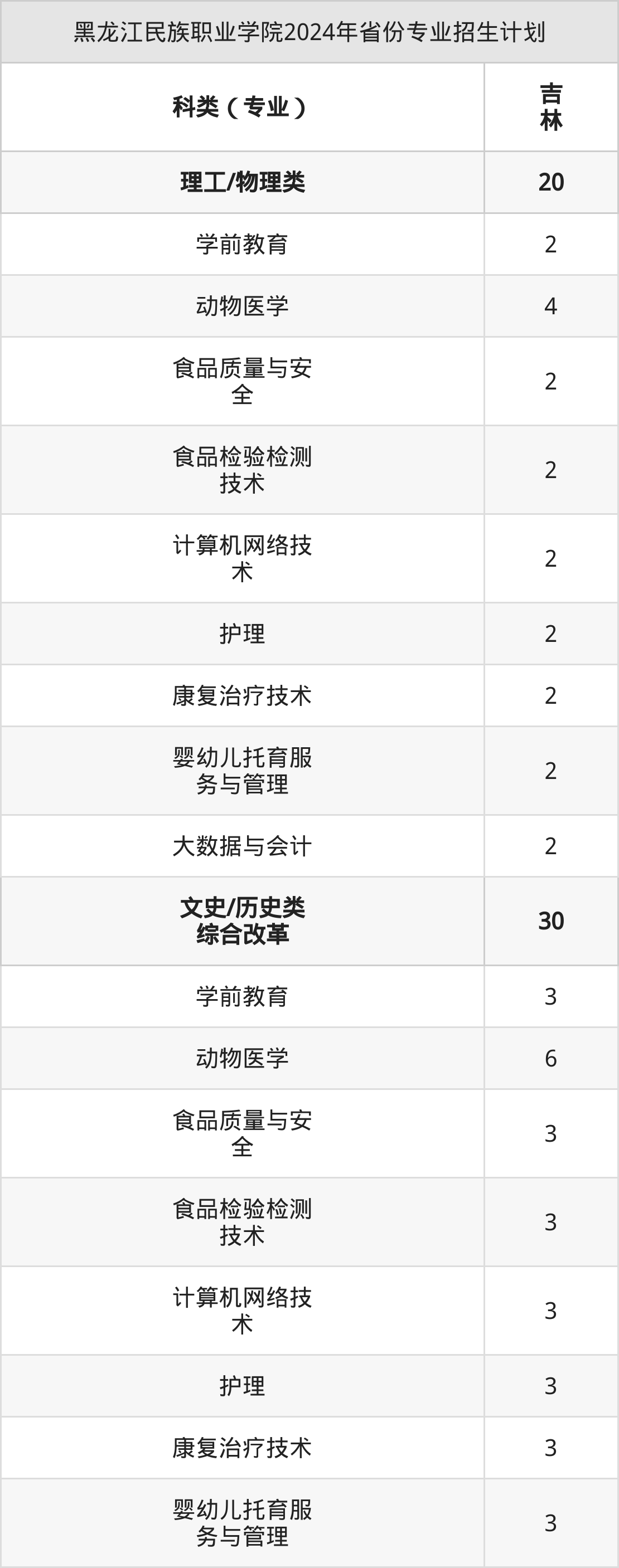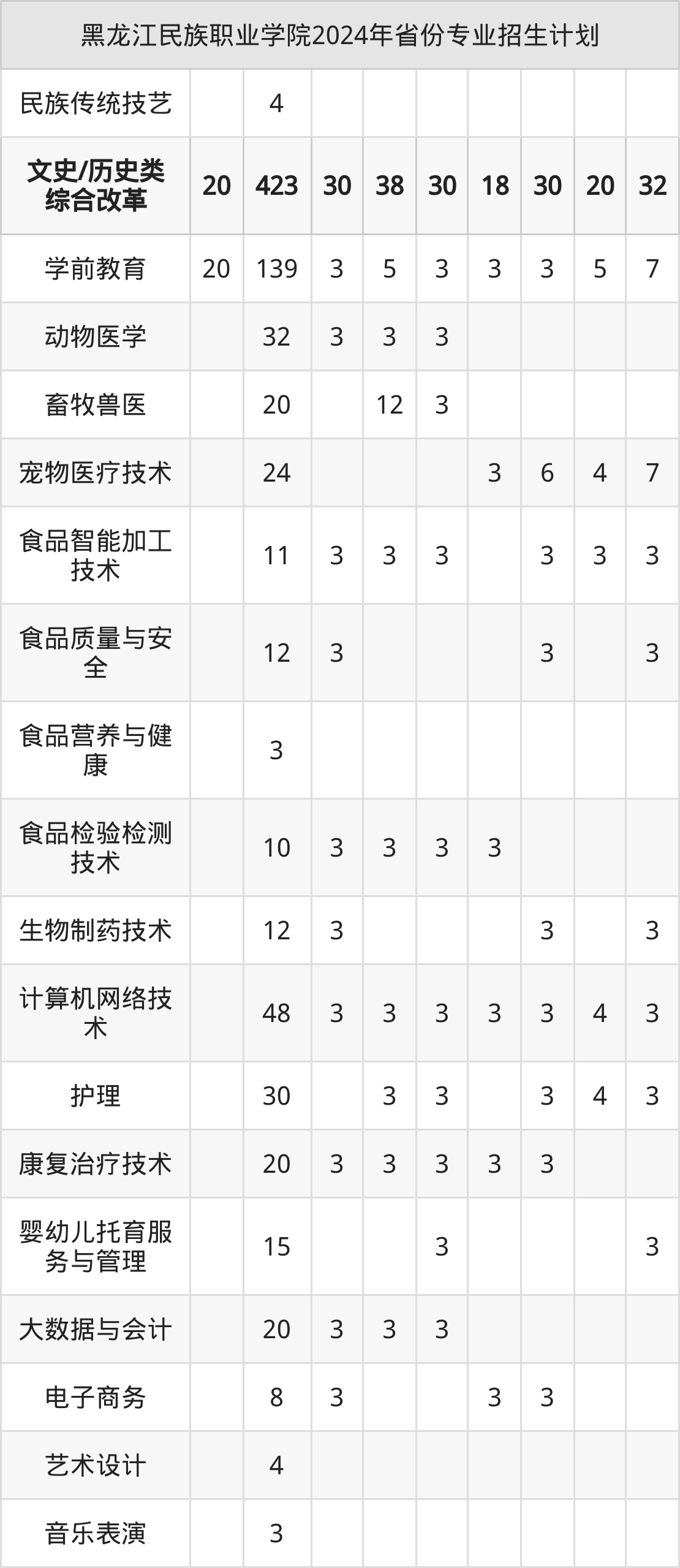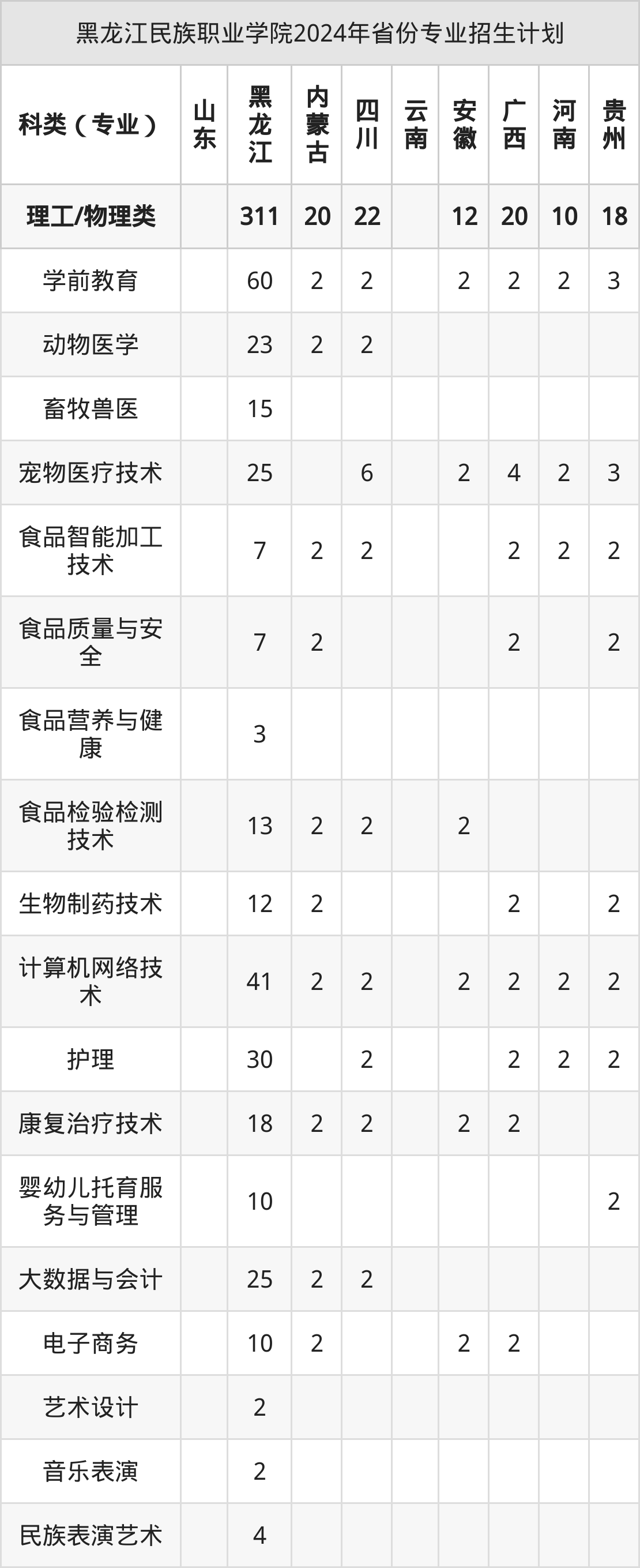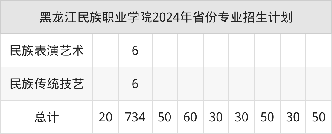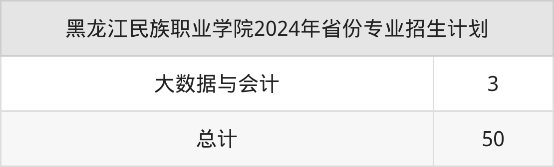 2025年黑龙江民族职业学院专科招生计划待公布,下面附上2024年数据,暂供参考: