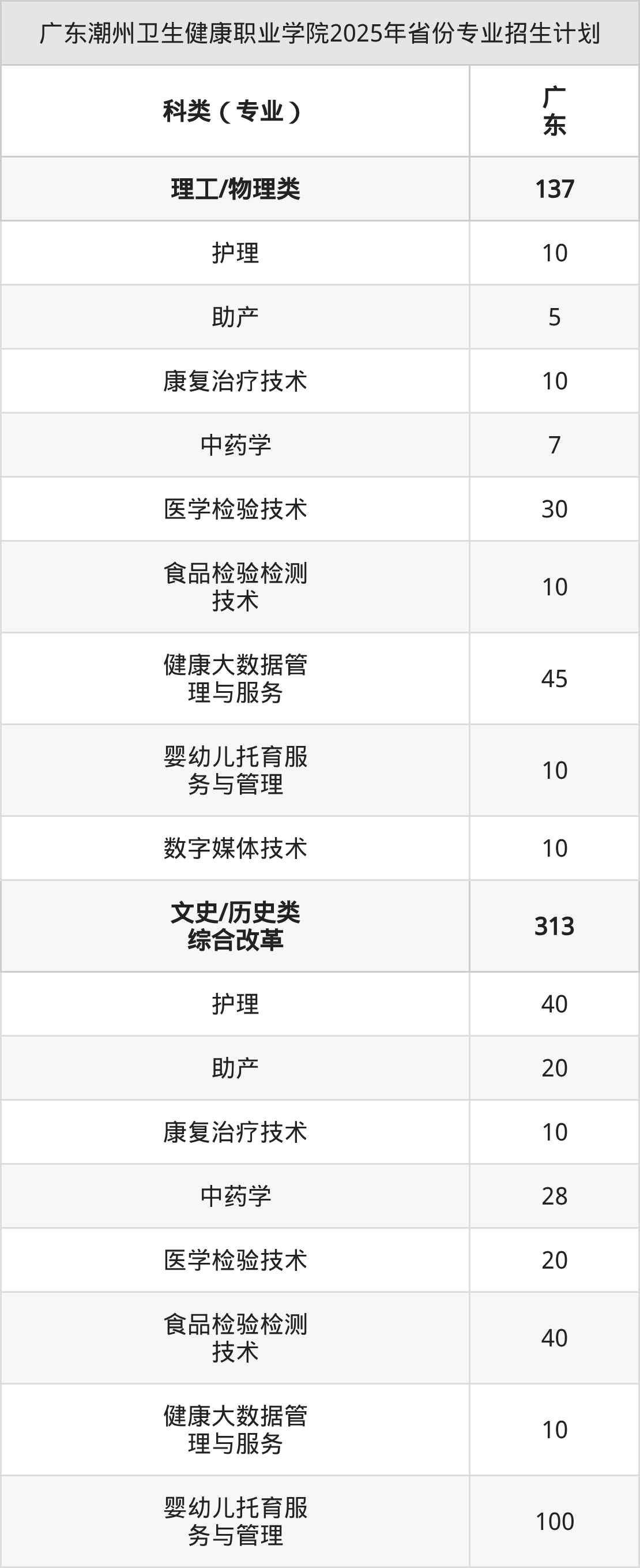 2026年广东潮州卫生健康职业学院专科招生计划待公布,下面附上2025年数据,暂供参考: