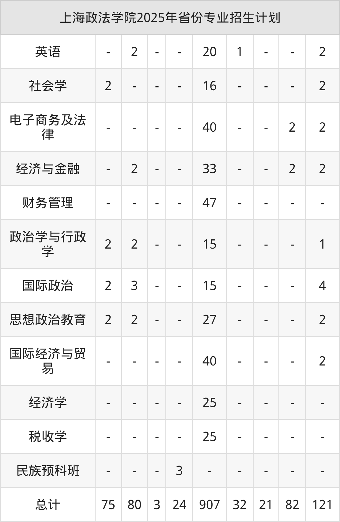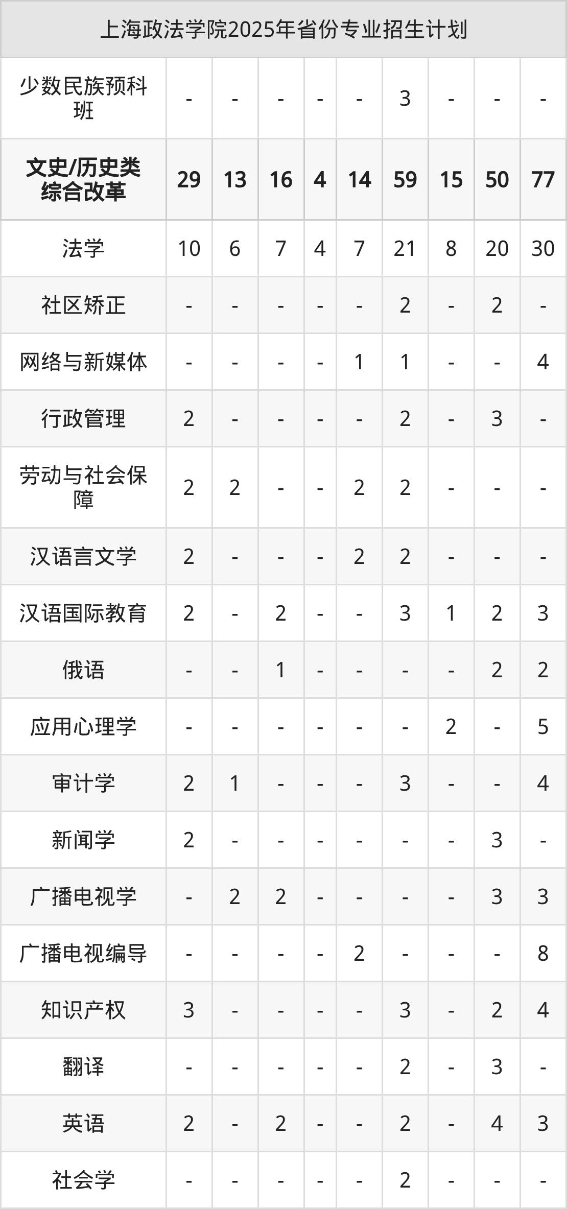 2026年上海政法学院本科招生计划待公布,下面附上2025年数据,暂供参考: