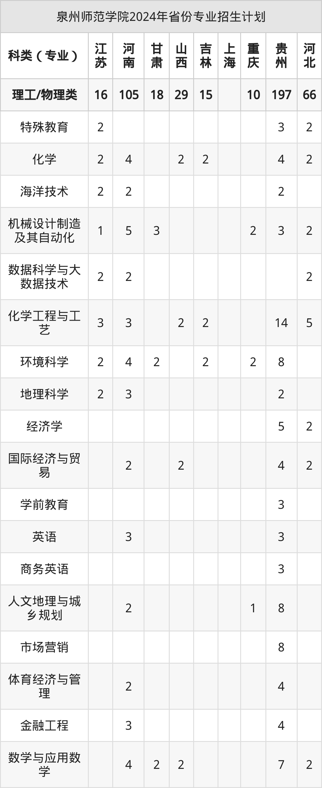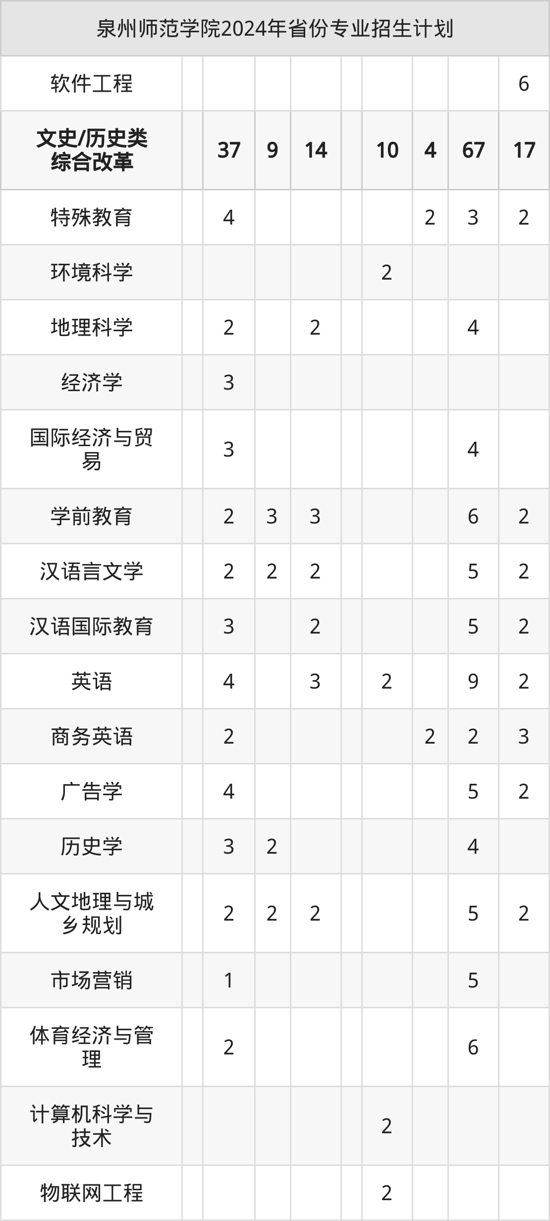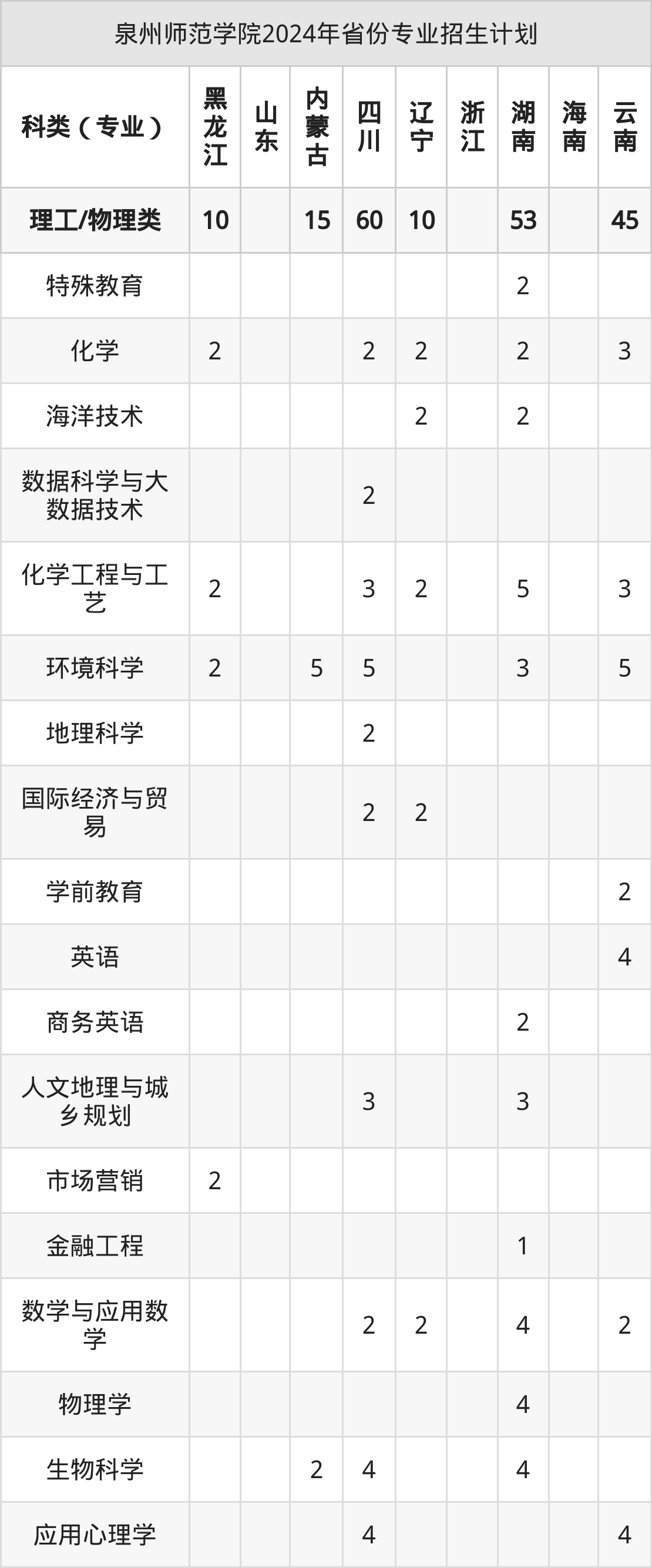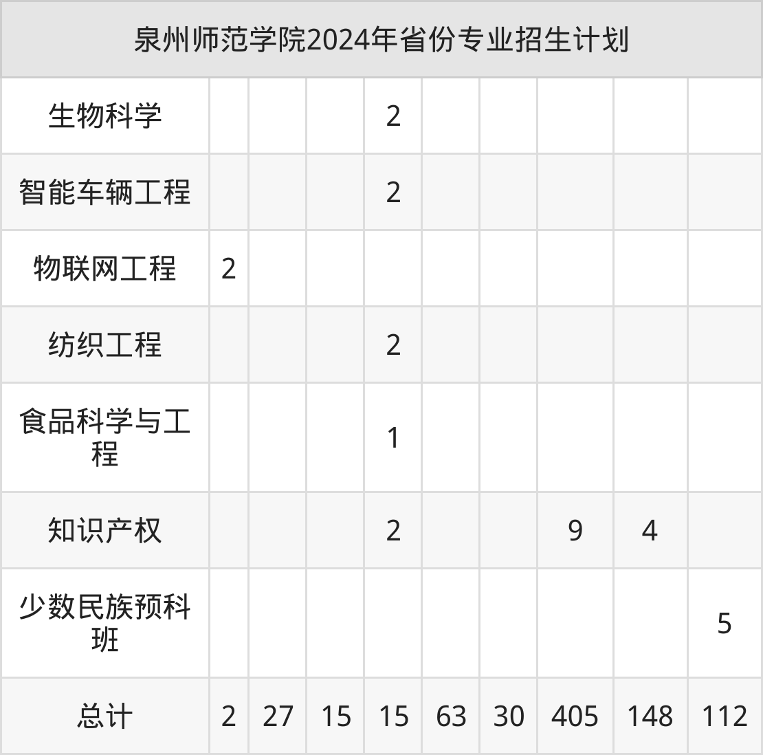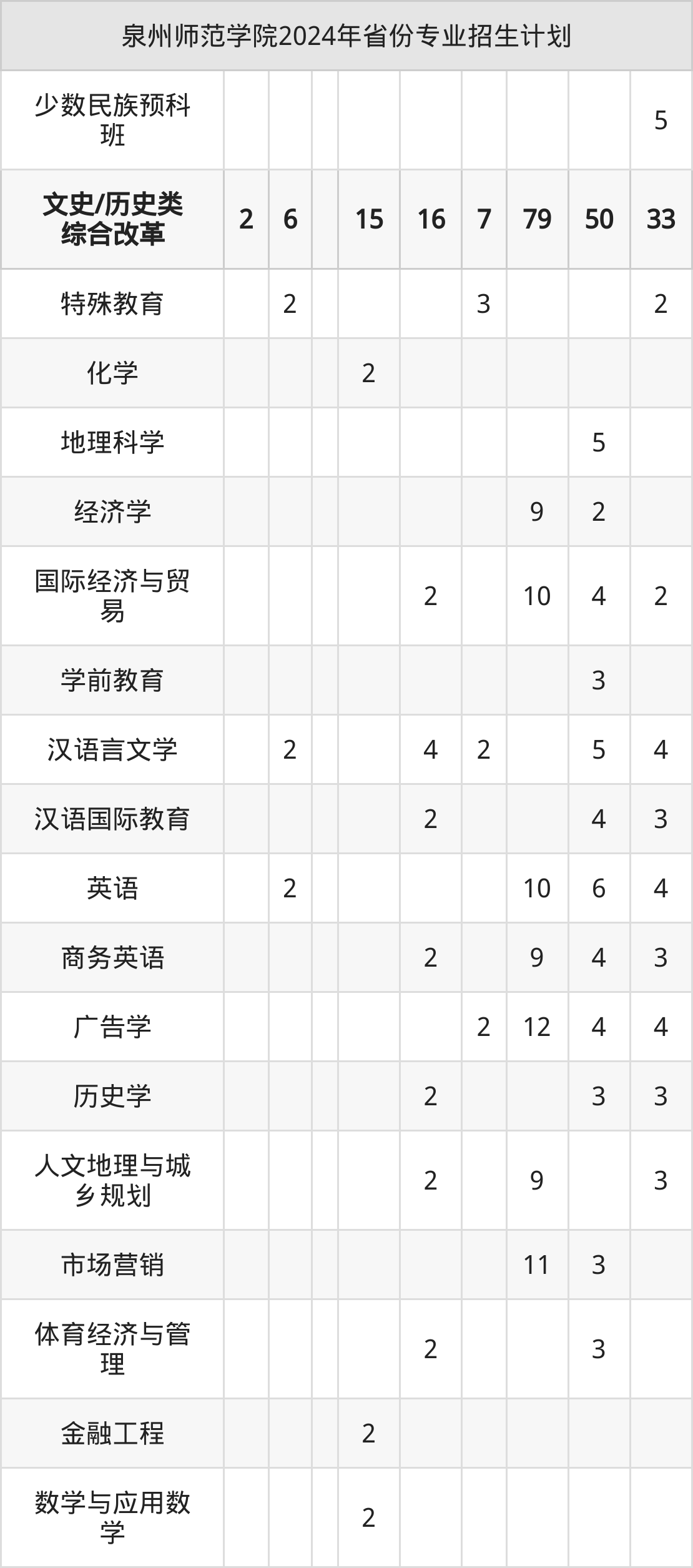 2025年泉州师范学院本科招生计划待公布,下面附上2024年数据,暂供参考: