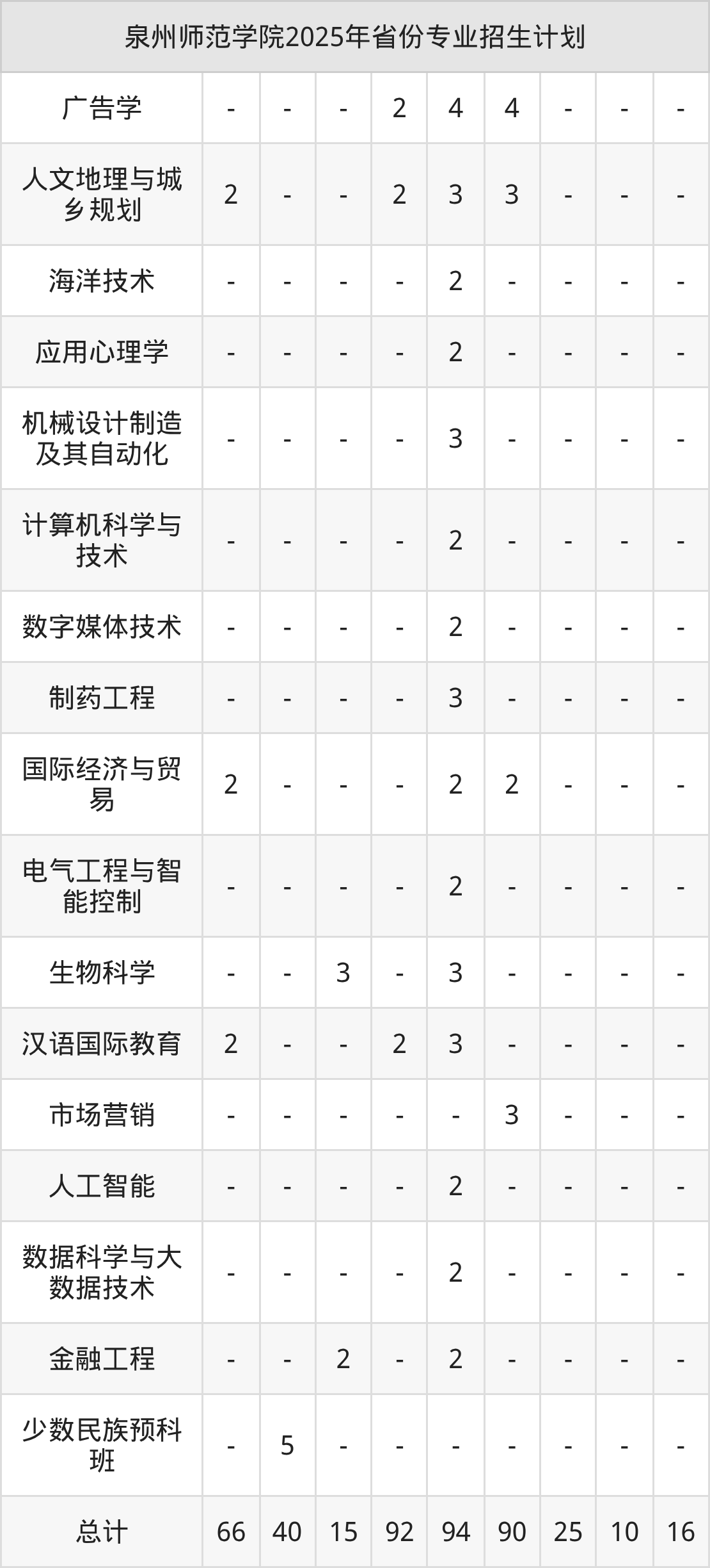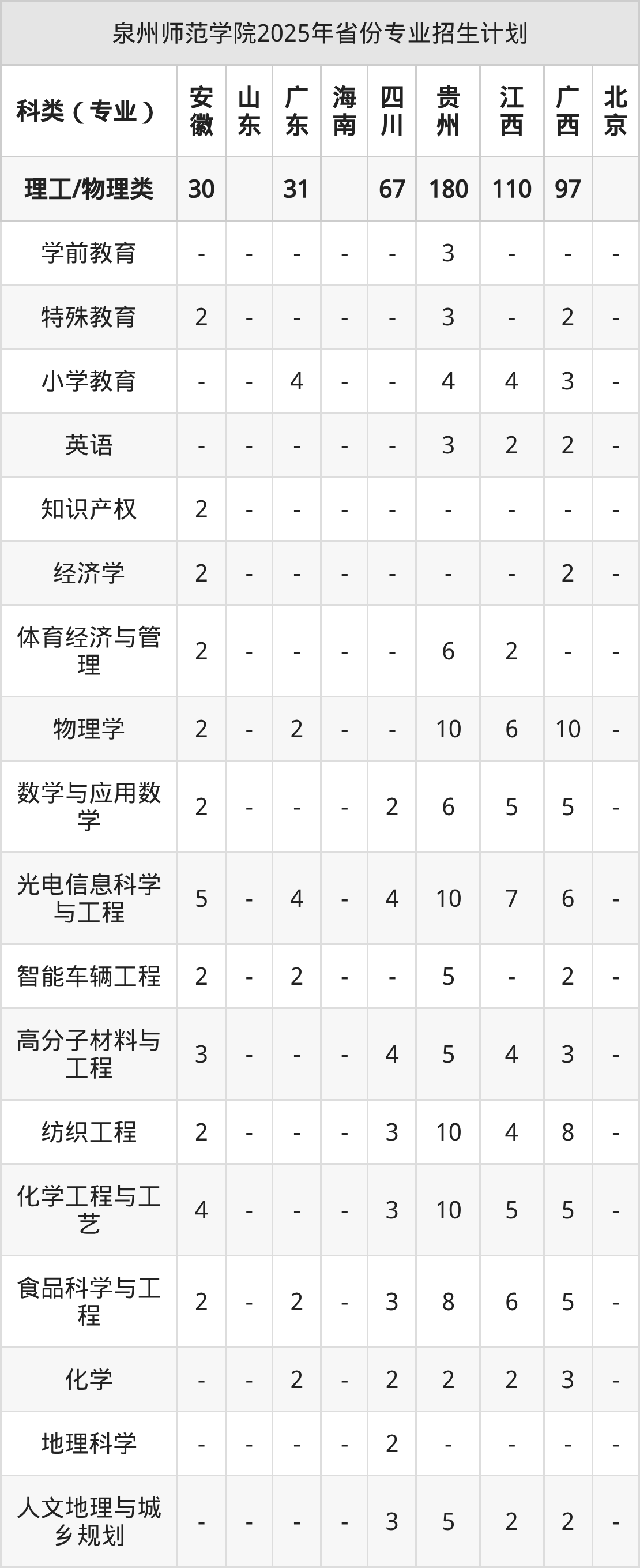 二、泉州师范学院2025年招生计划