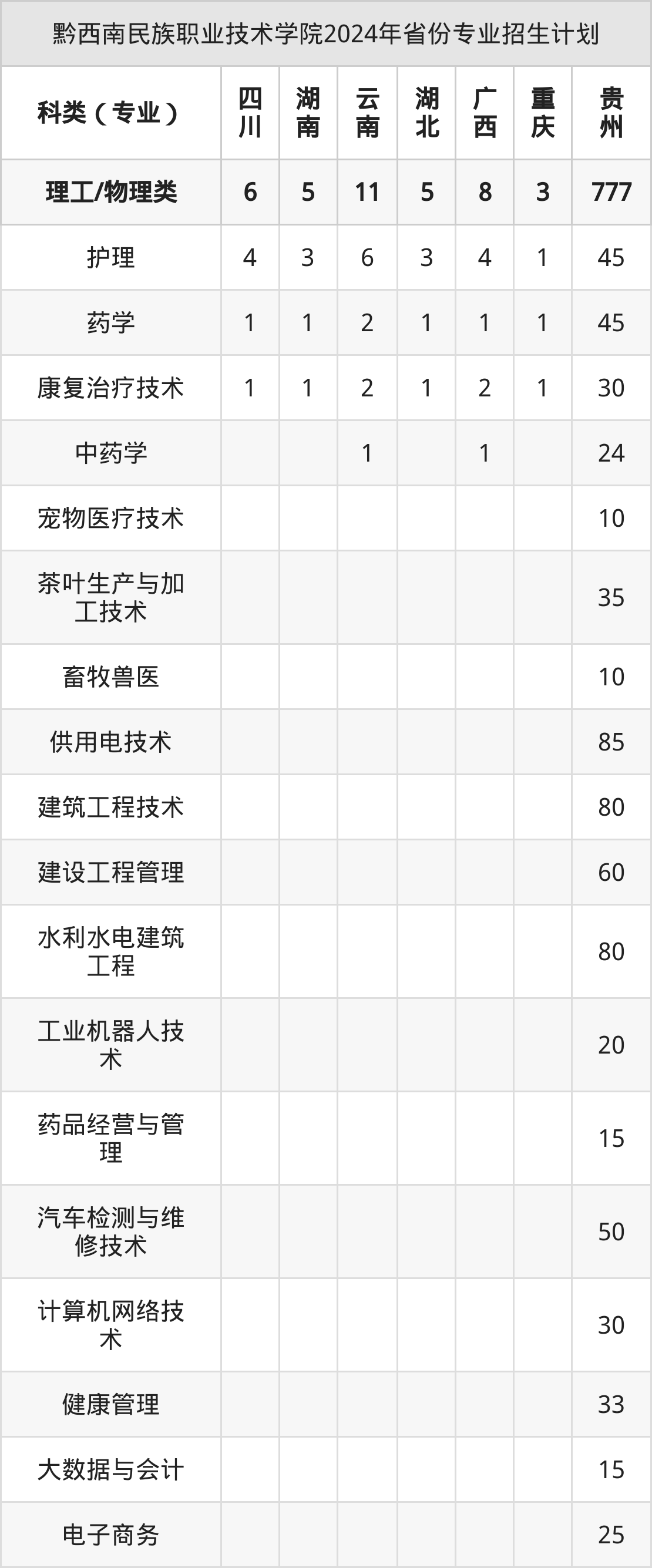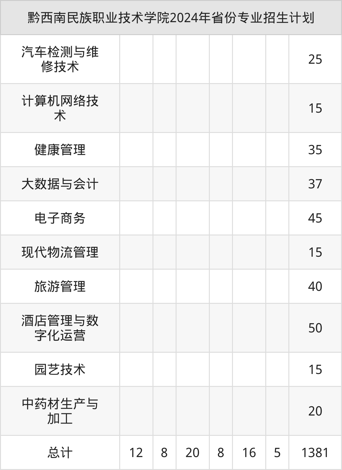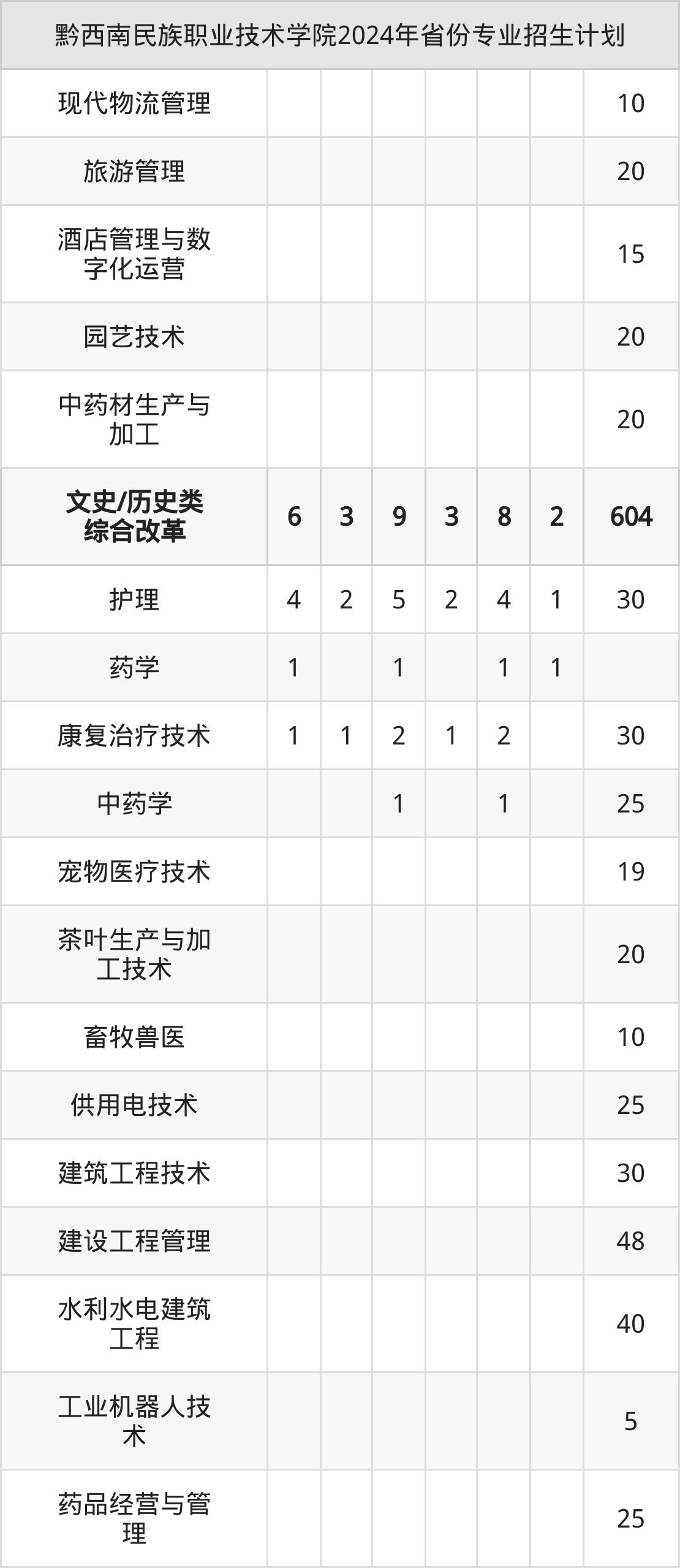2025年黔西南民族职业技术学院专科招生计划待公布,下面附上2024年数据,暂供参考: