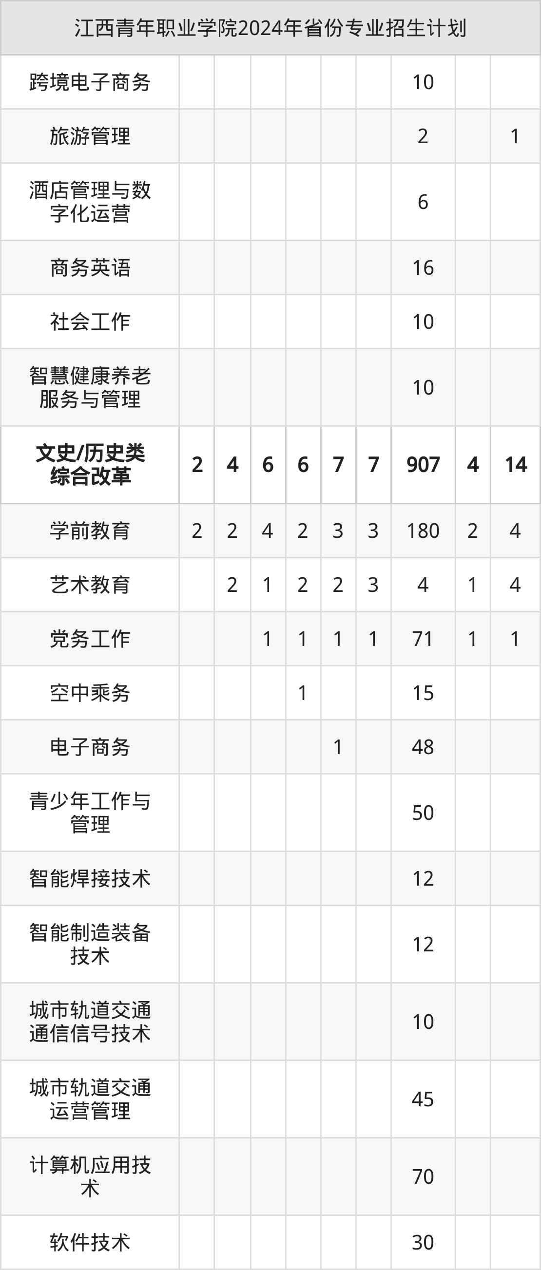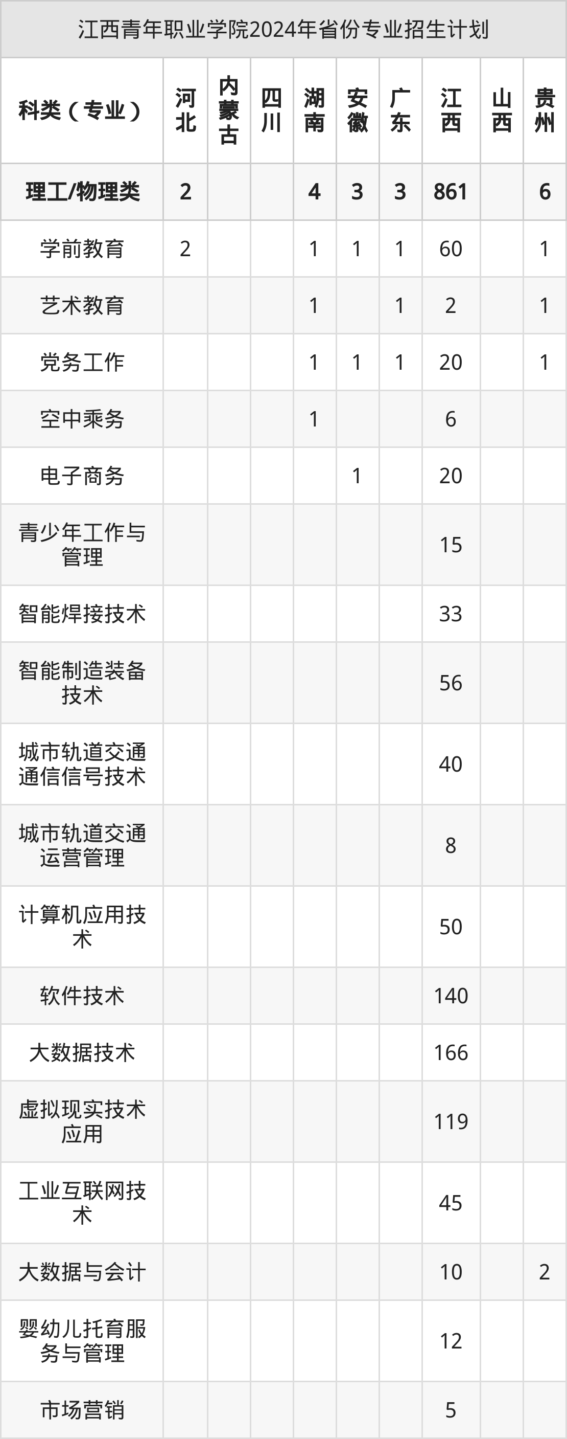 2025年江西青年职业学院专科招生计划待公布,下面附上2024年数据,暂供参考: