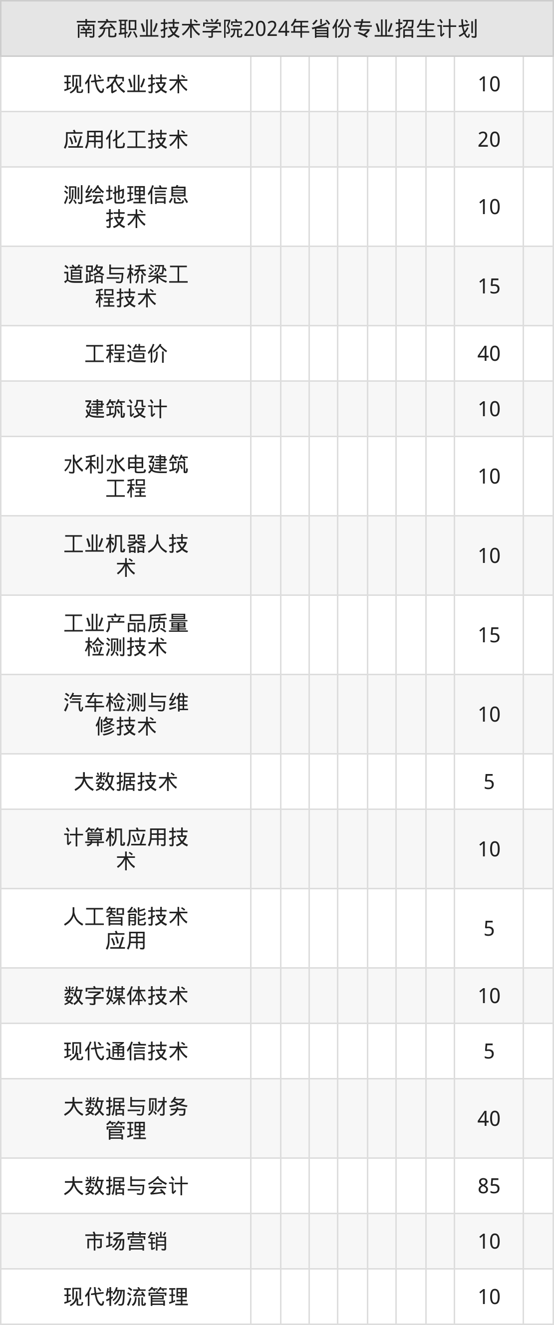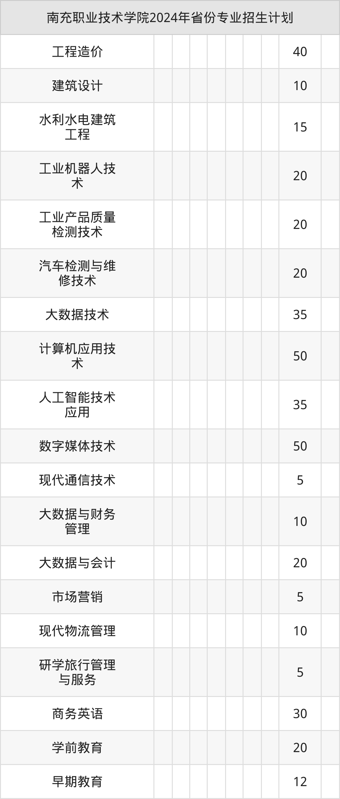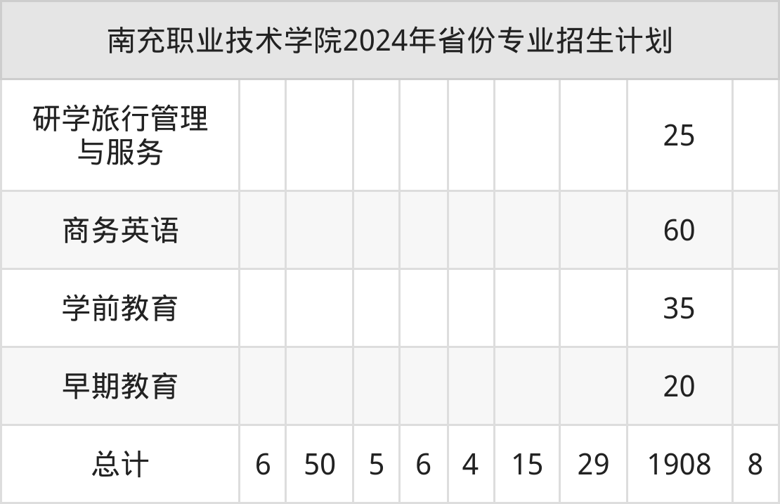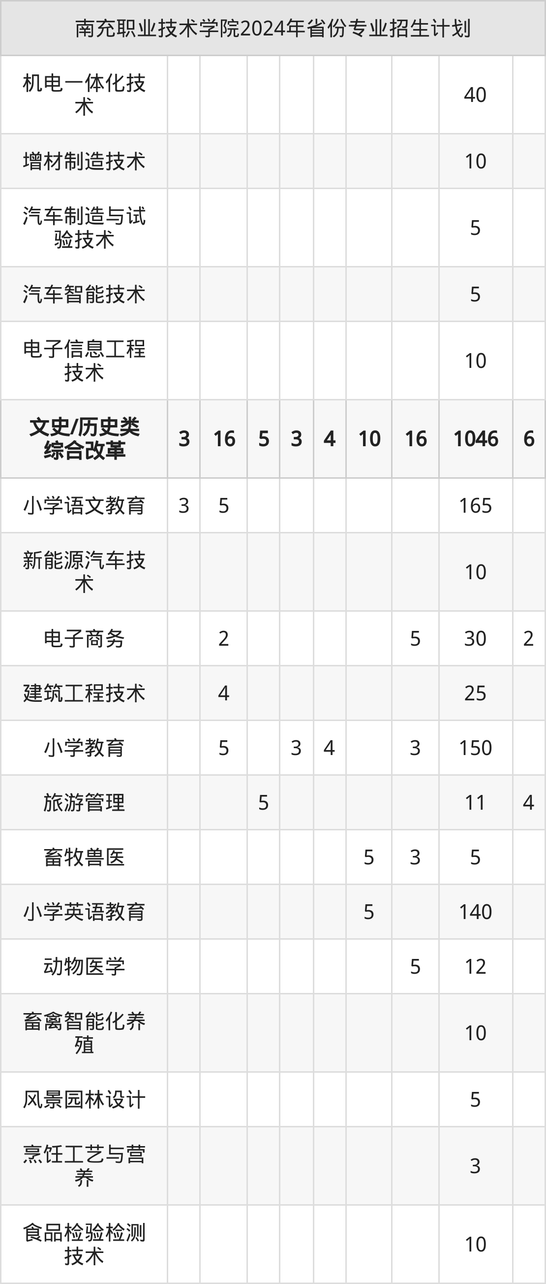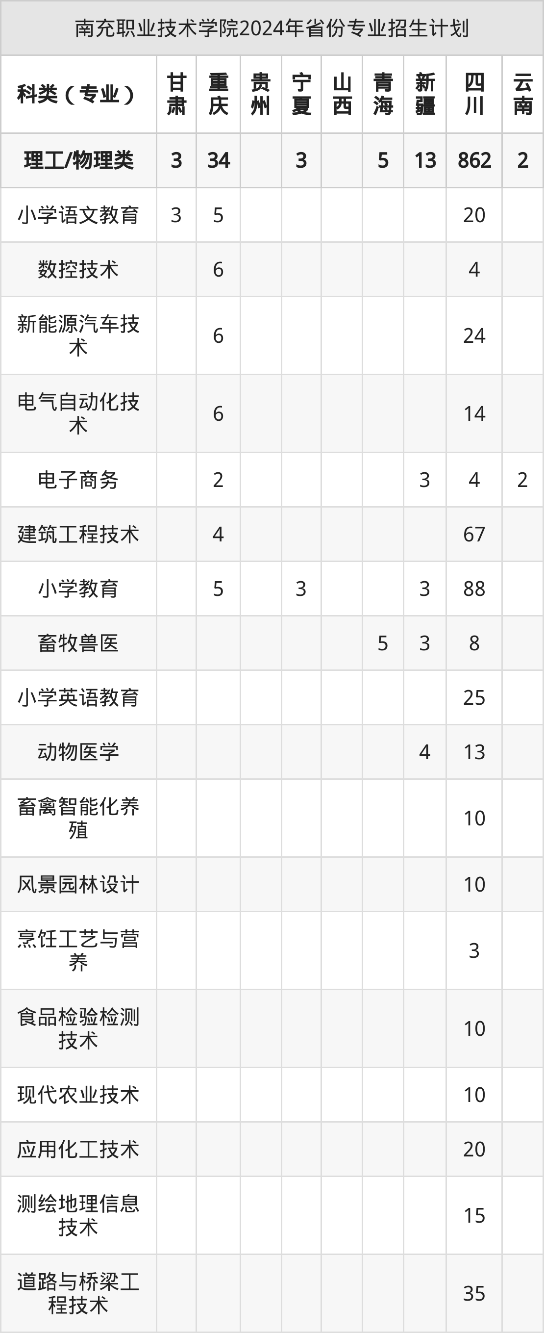 2025年南充职业技术学院专科招生计划待公布,下面附上2024年数据,暂供参考: