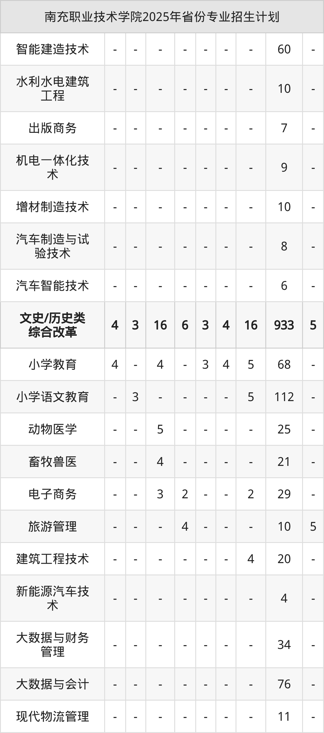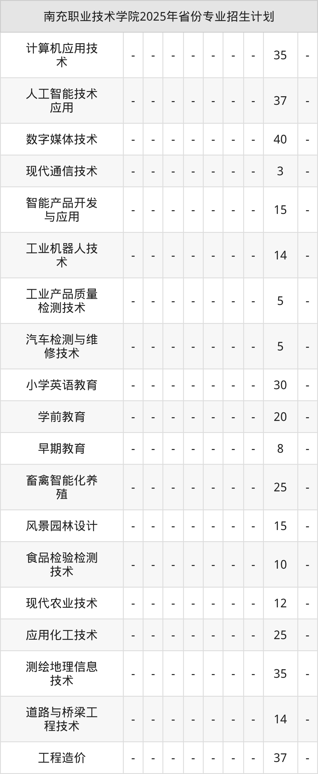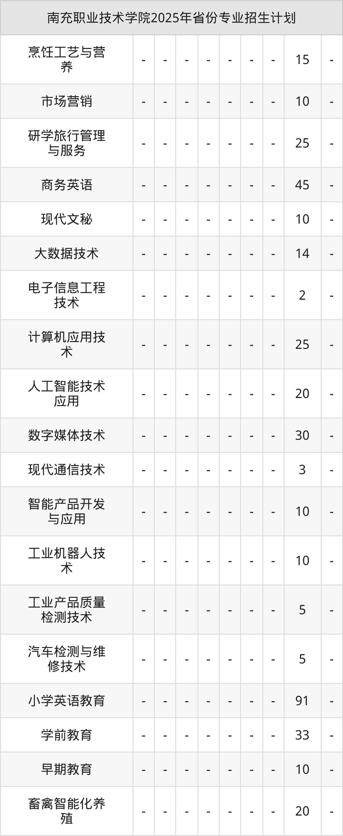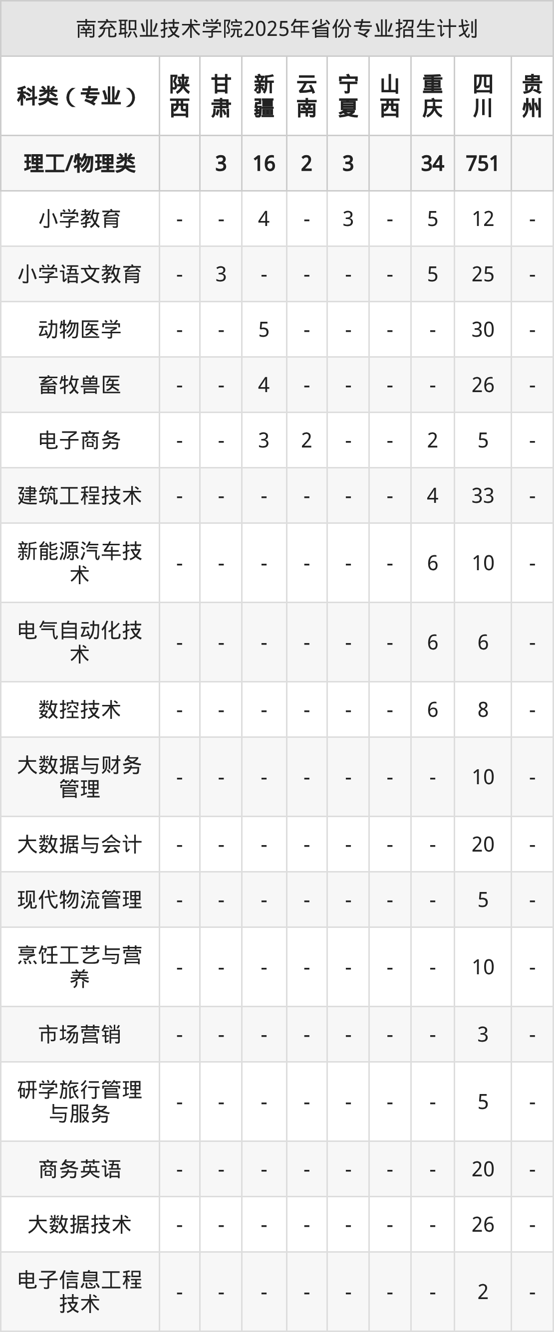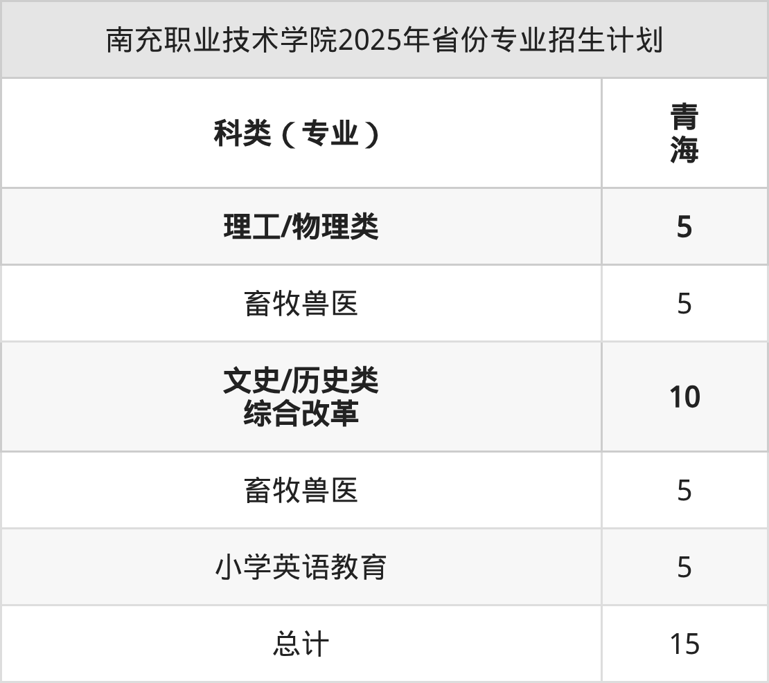 2026年南充职业技术学院专科招生计划待公布,下面附上2025年数据,暂供参考: