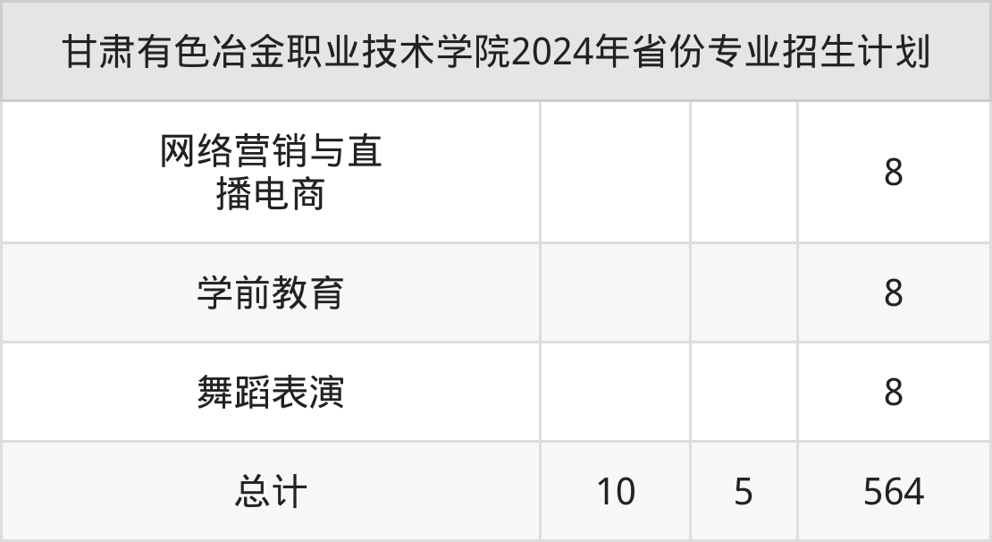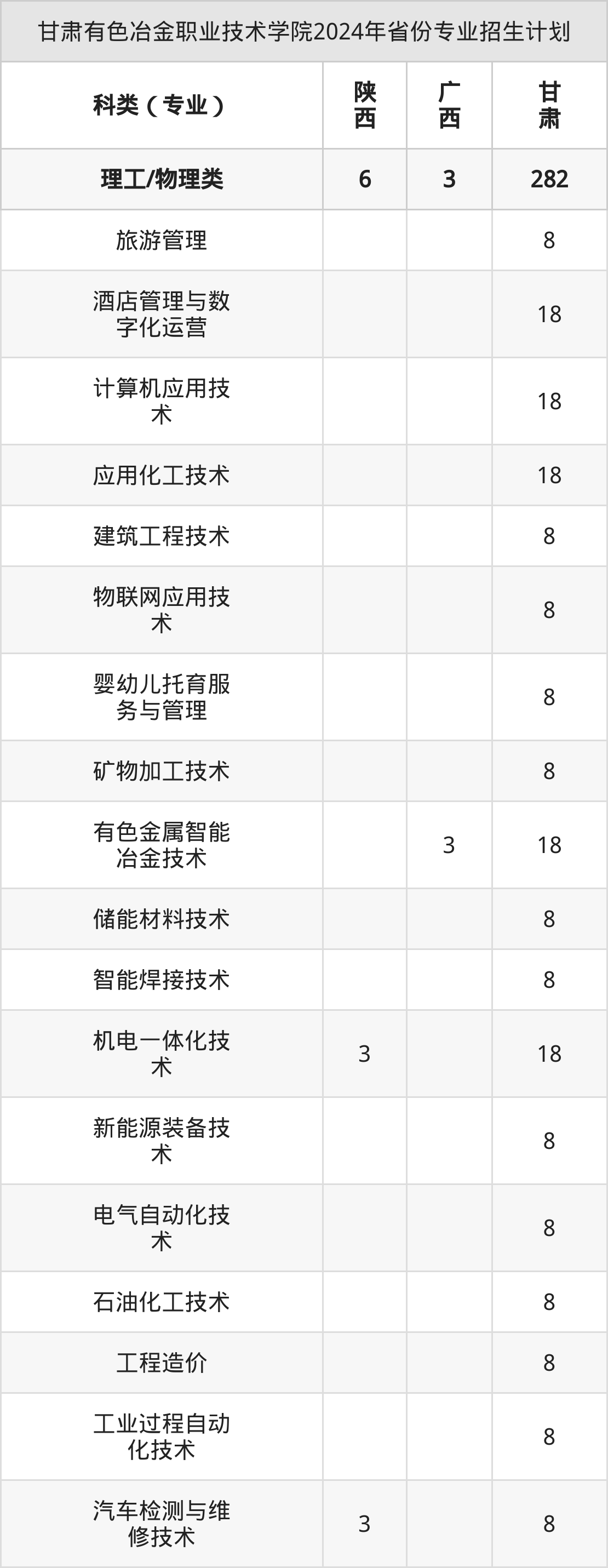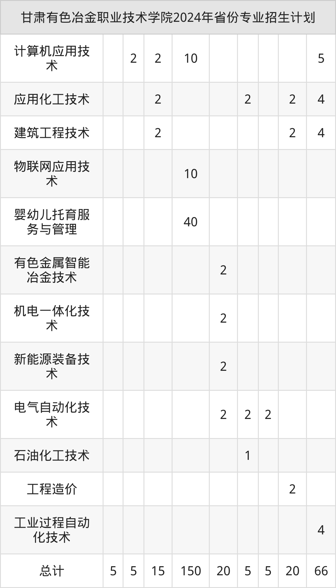2025年甘肃有色冶金职业技术学院专科招生计划待公布,下面附上2024年数据,暂供参考: