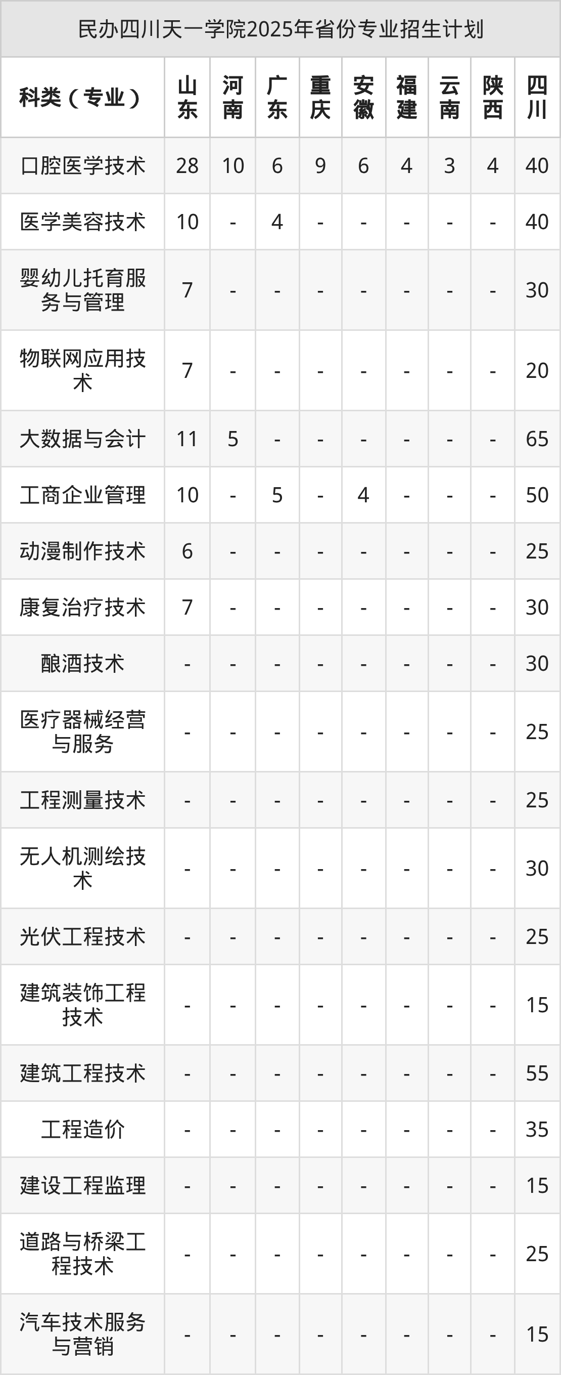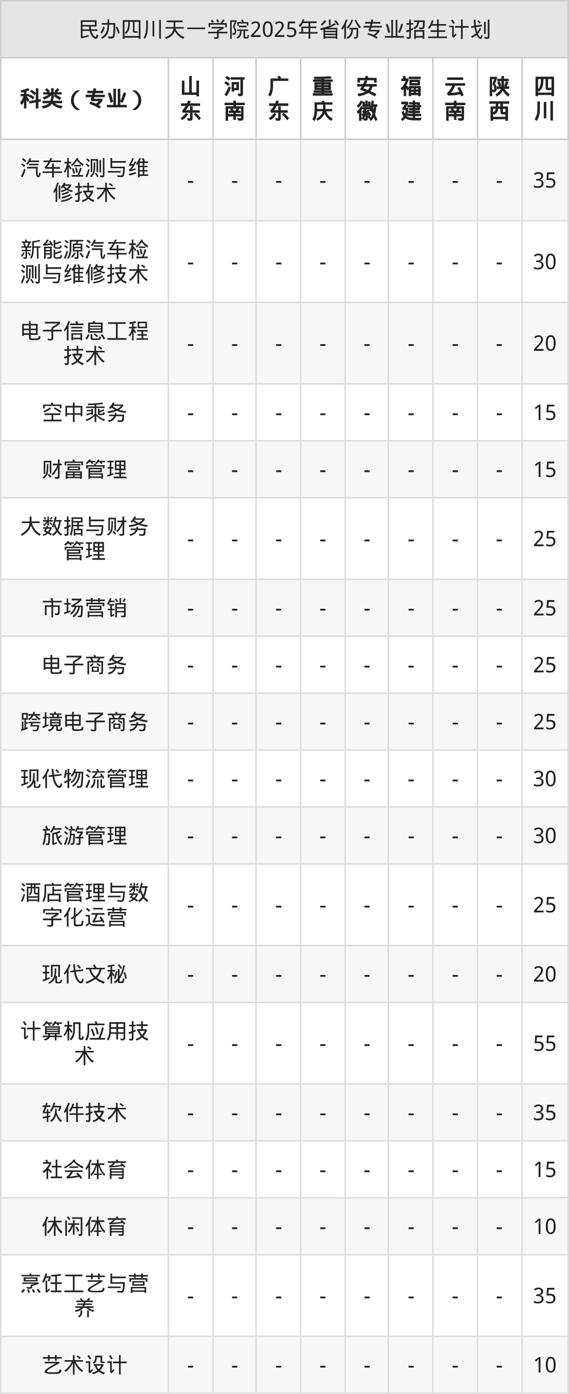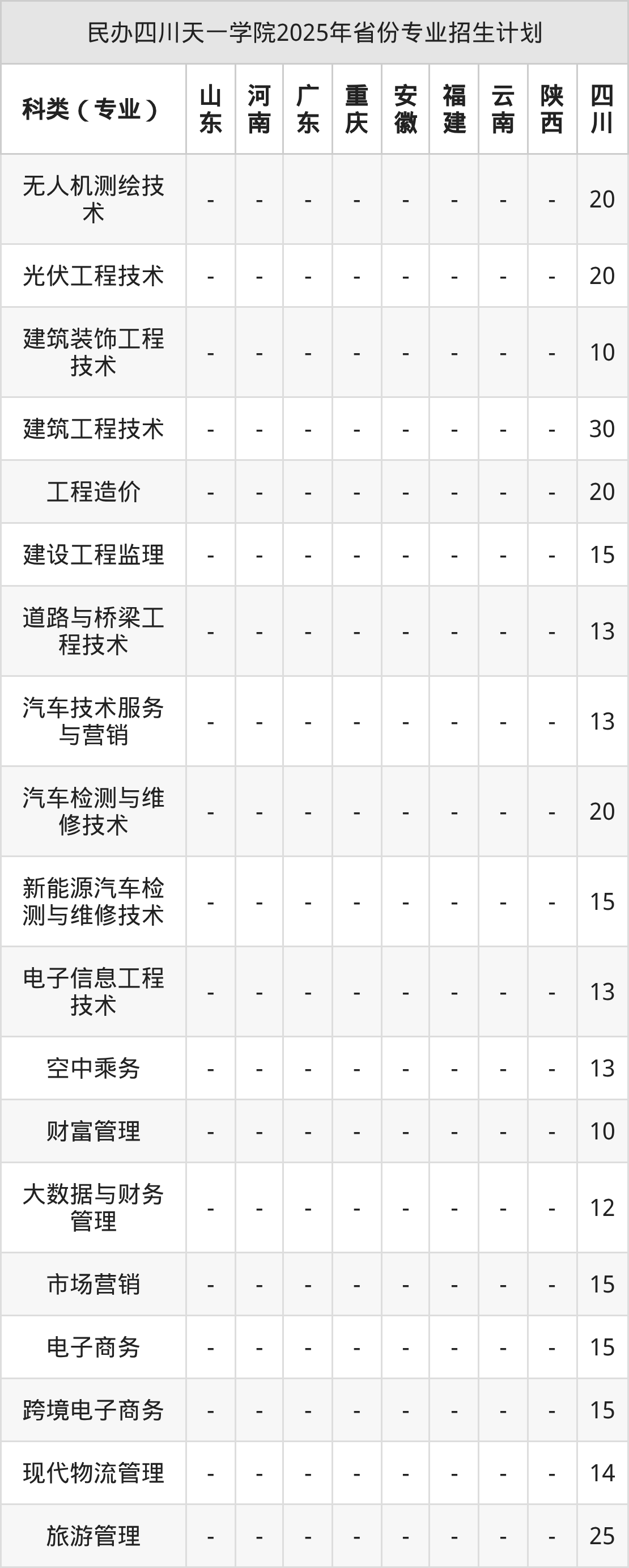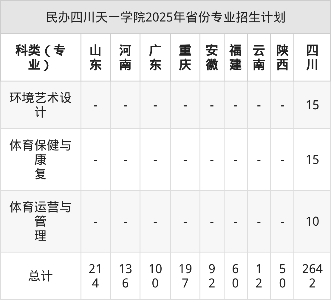 2026年民办四川天一学院专科招生计划待公布,下面附上2025年数据,暂供参考: