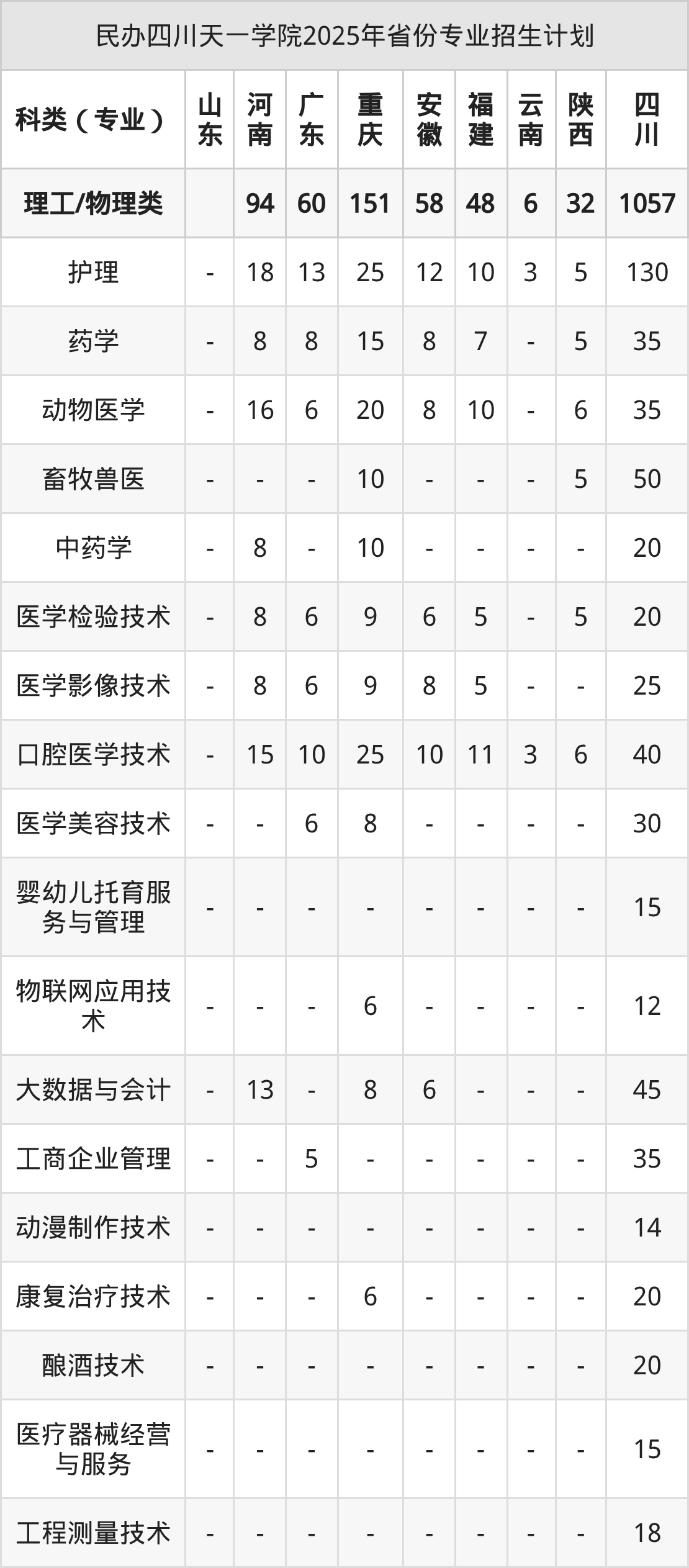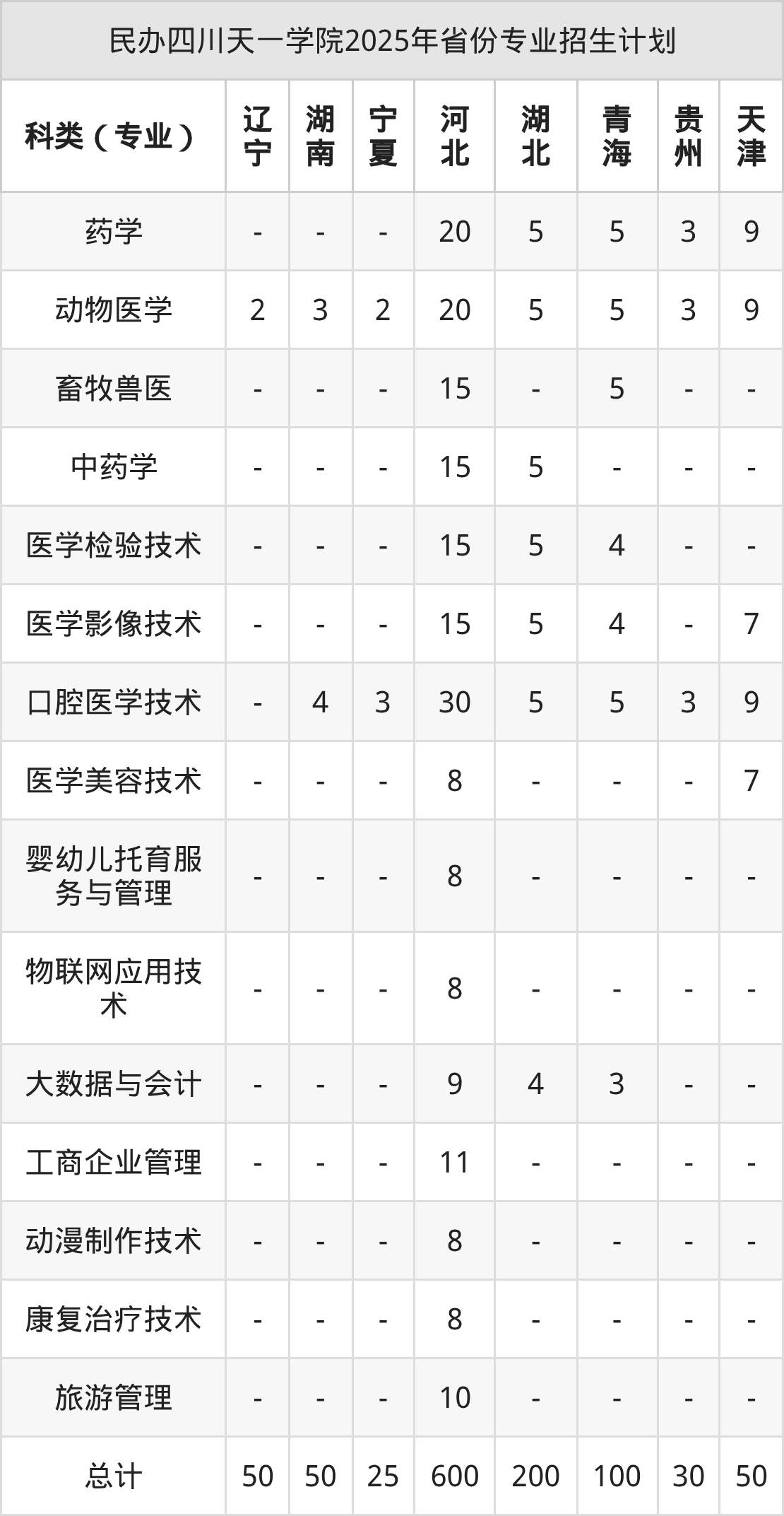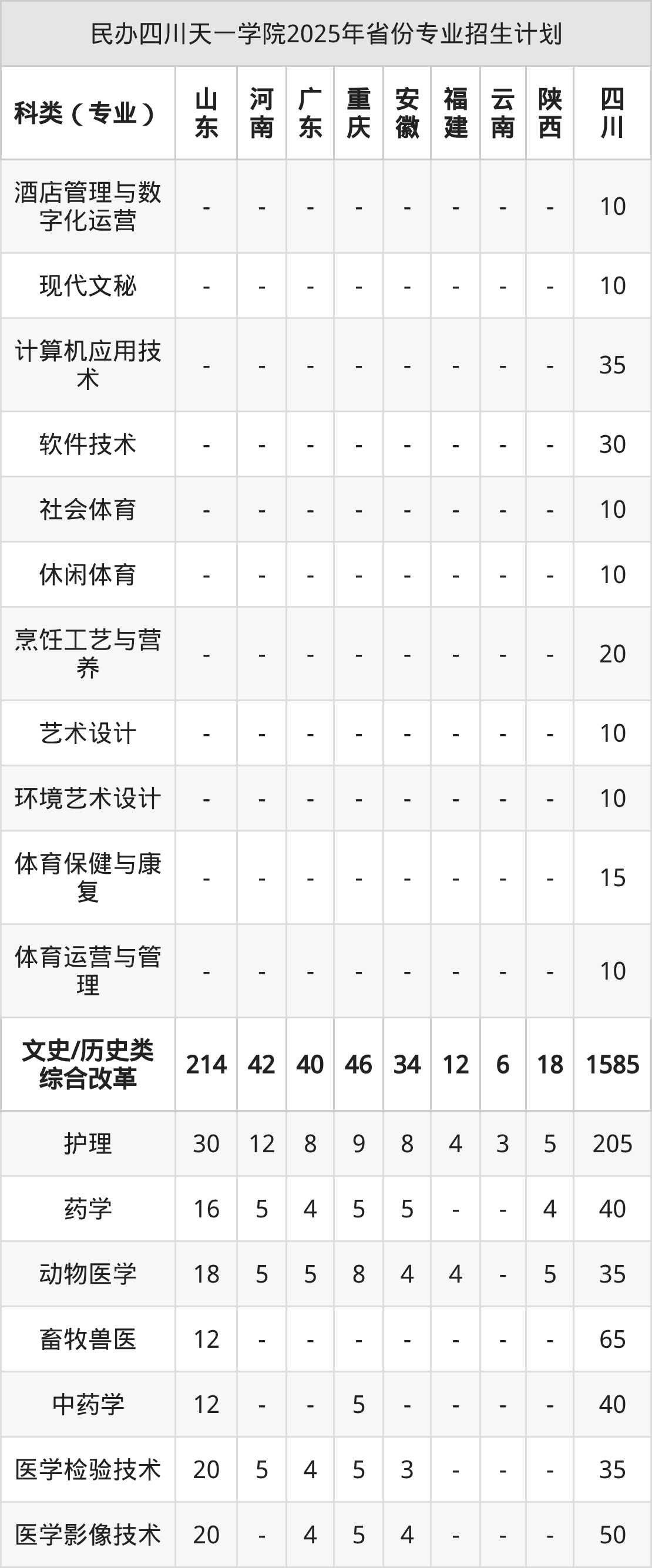 2026年民办四川天一学院专科招生计划待公布,下面附上2025年数据,暂供参考: