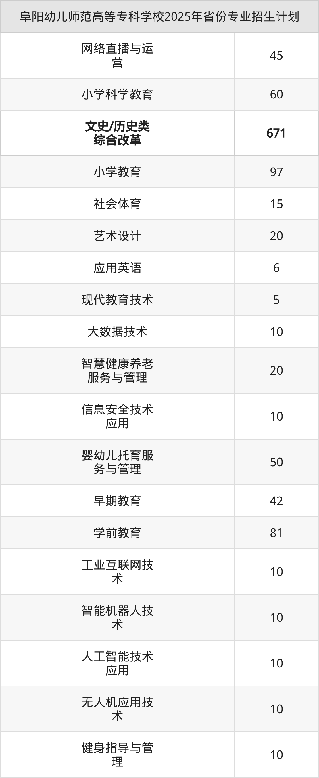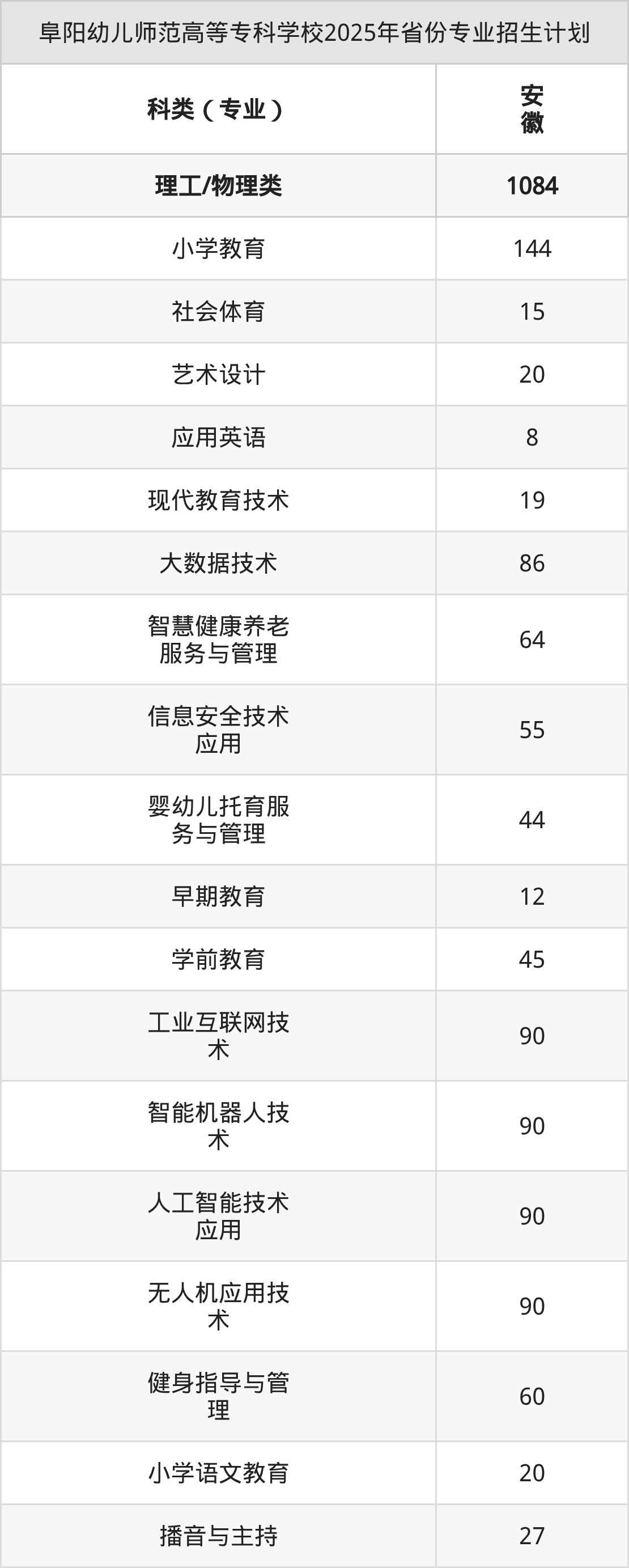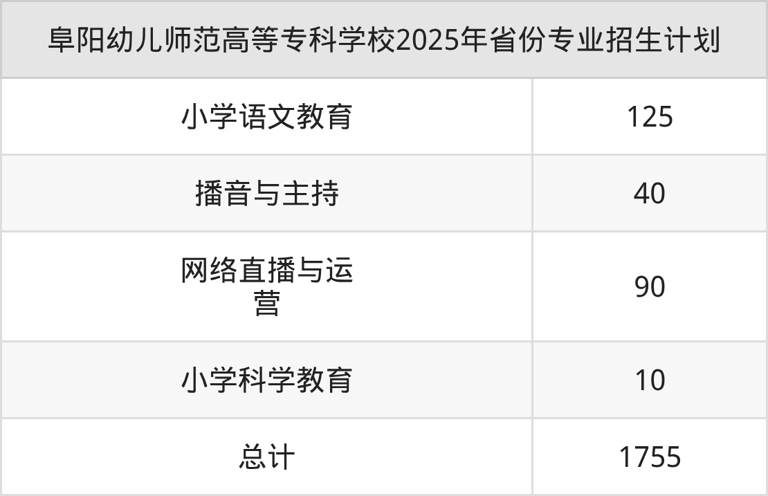 2026年阜阳幼儿师范高等专科学校专科招生计划待公布,下面附上2025年数据,暂供参考: