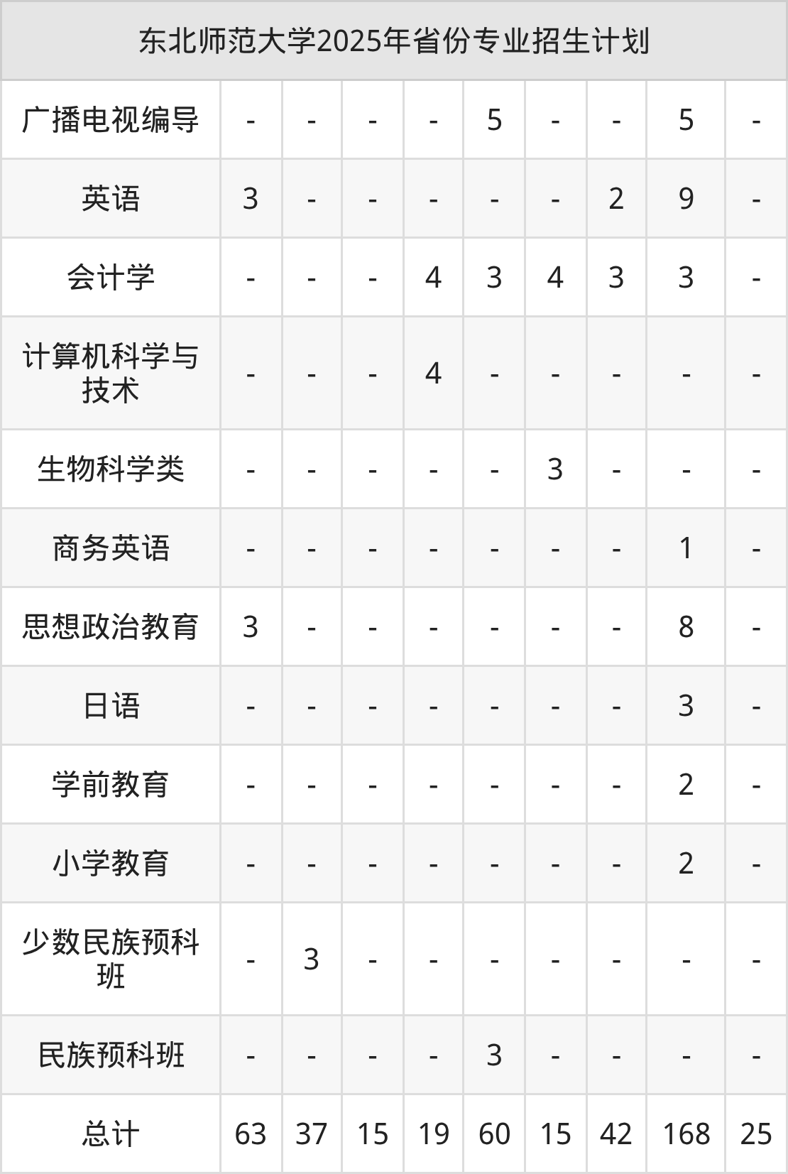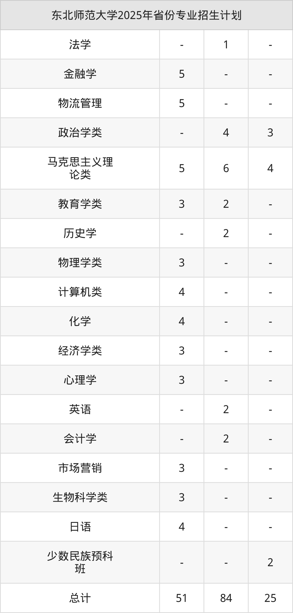 2026年东北师范大学本科招生计划待公布,下面附上2025年数据,暂供参考: