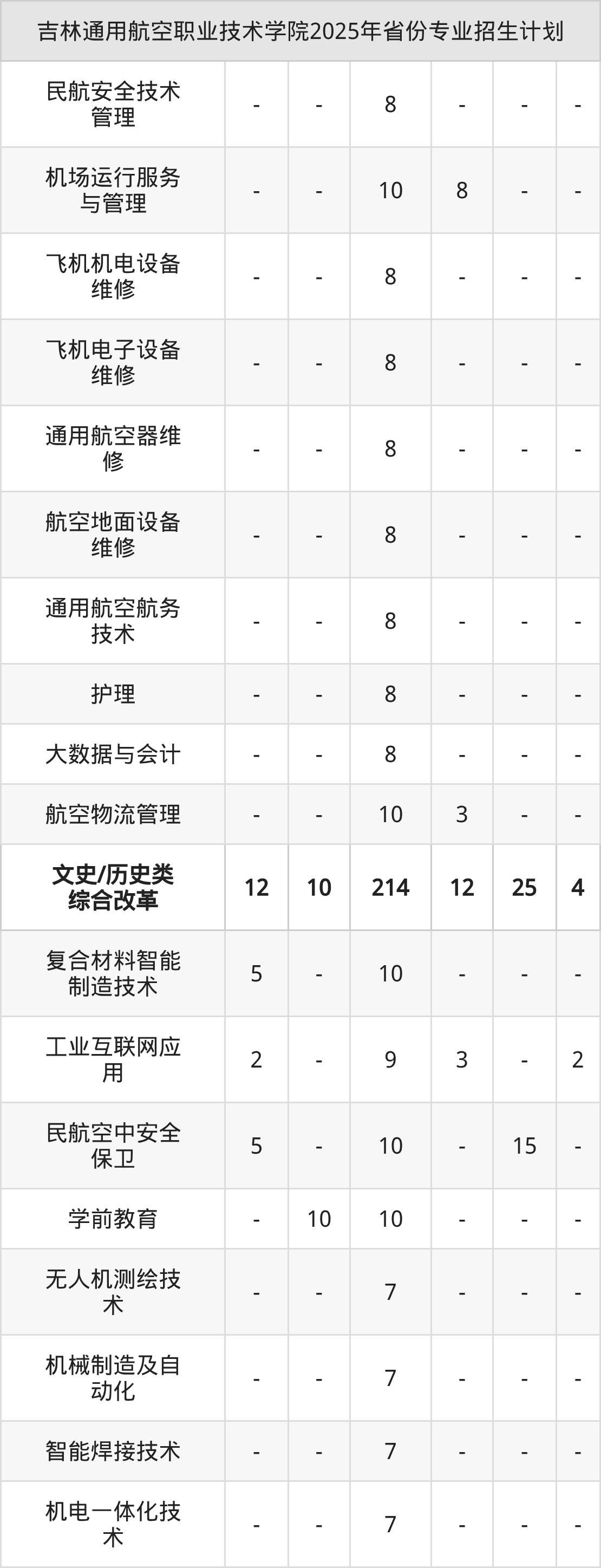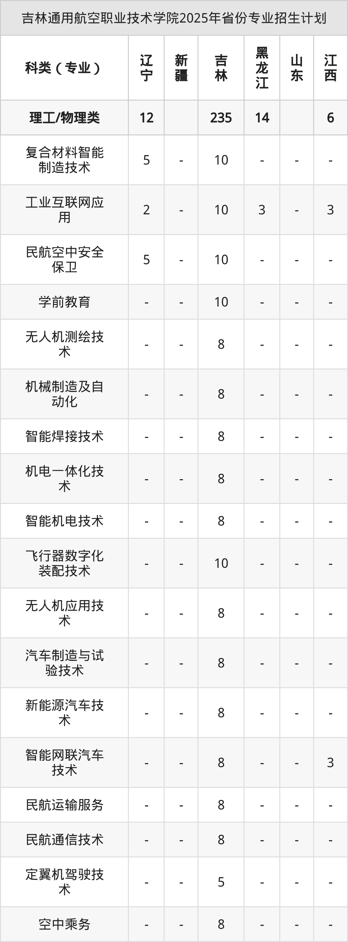 2026年吉林通用航空职业技术学院专科招生计划待公布,下面附上2025年数据,暂供参考: