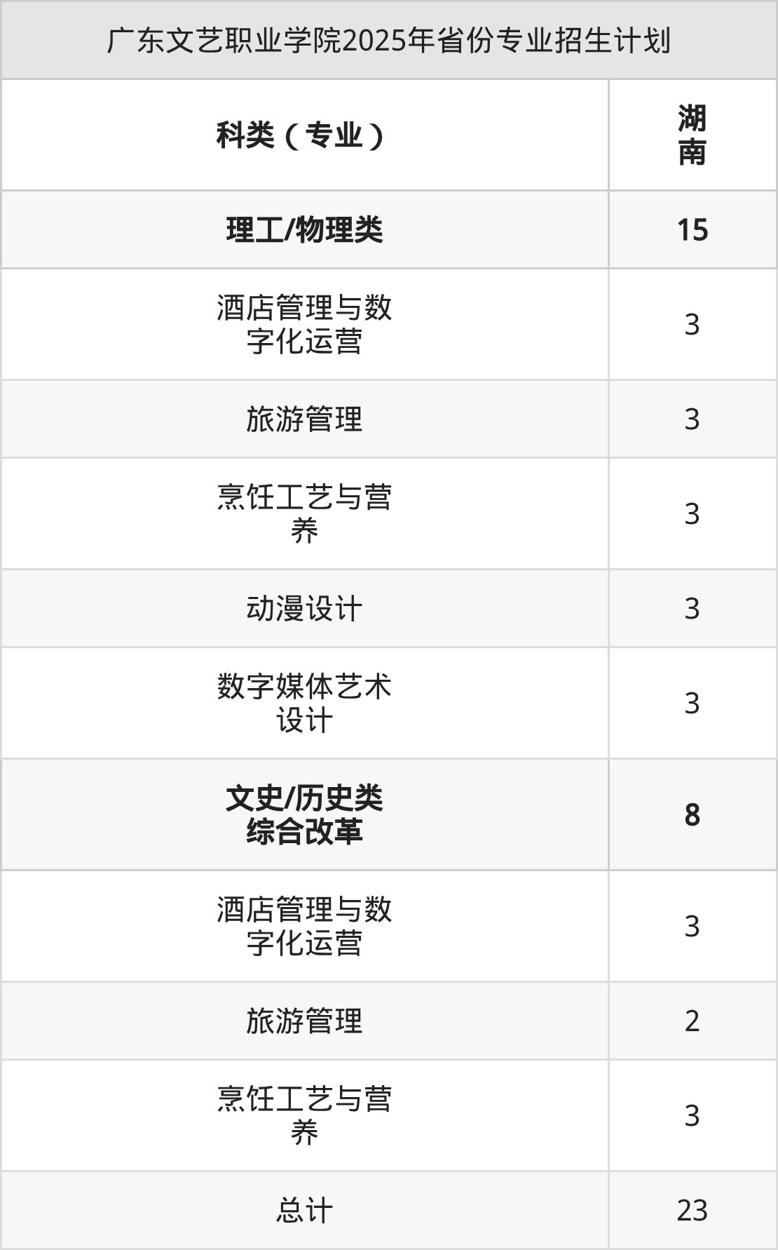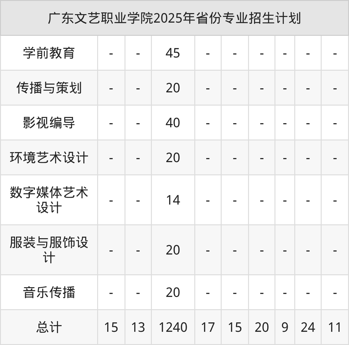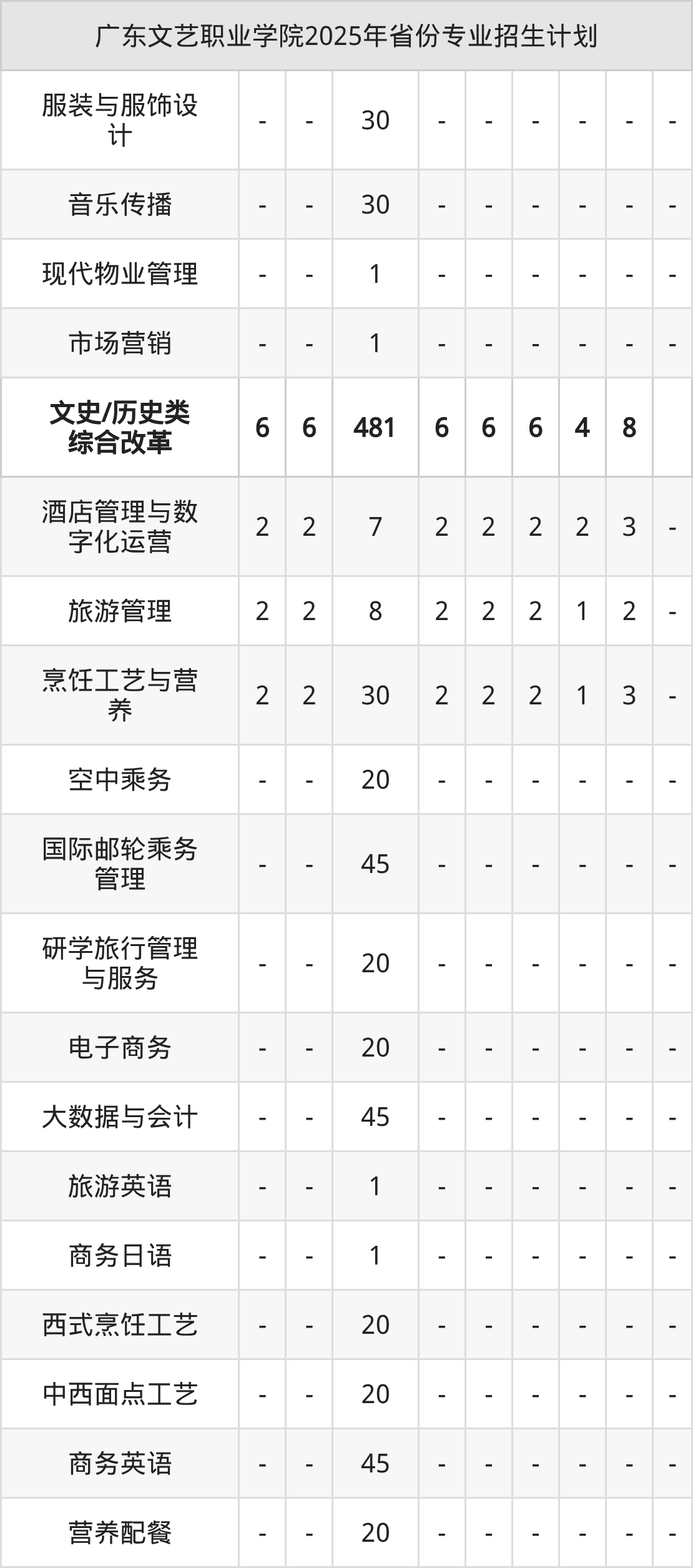 2026年广东文艺职业学院专科招生计划待公布,下面附上2025年数据,暂供参考: