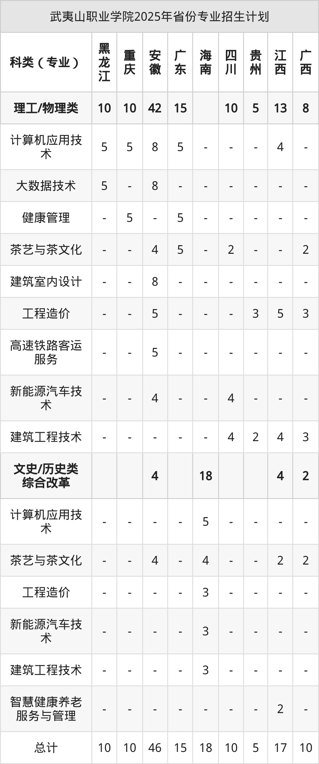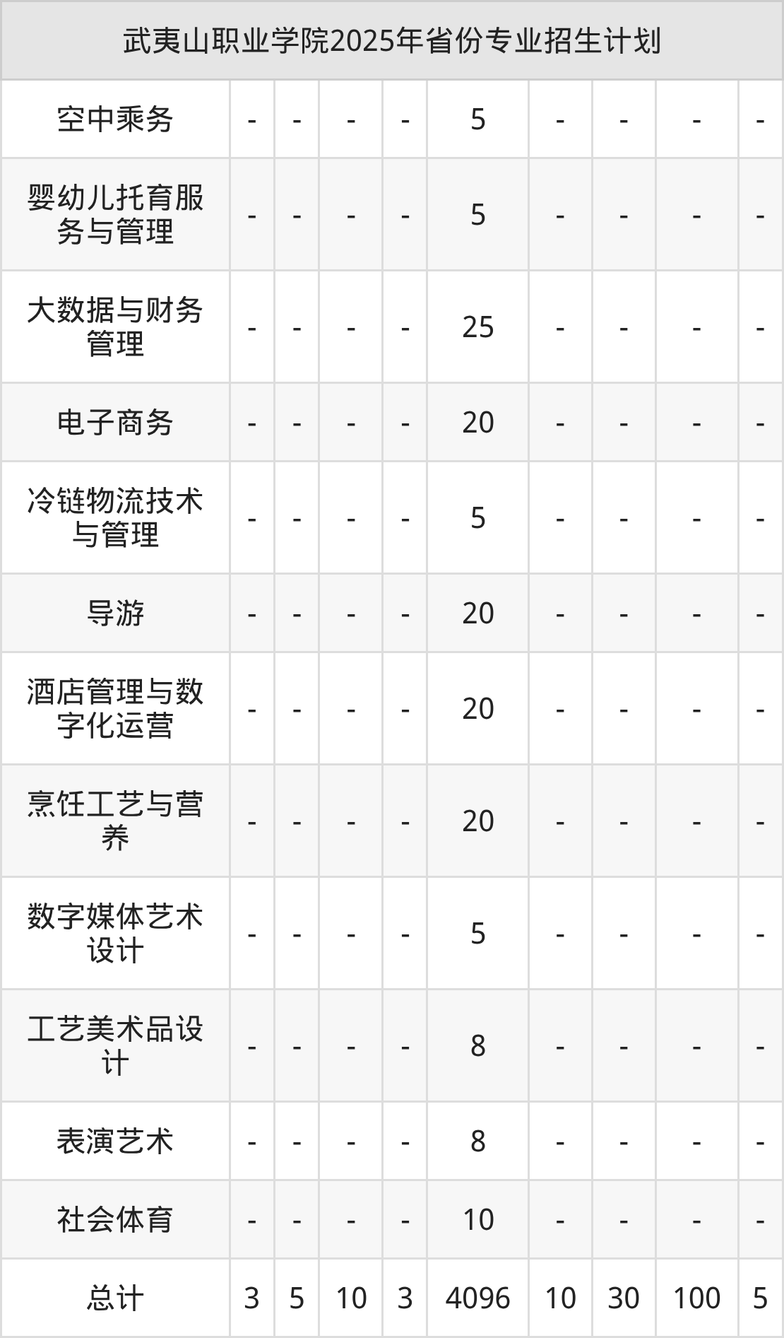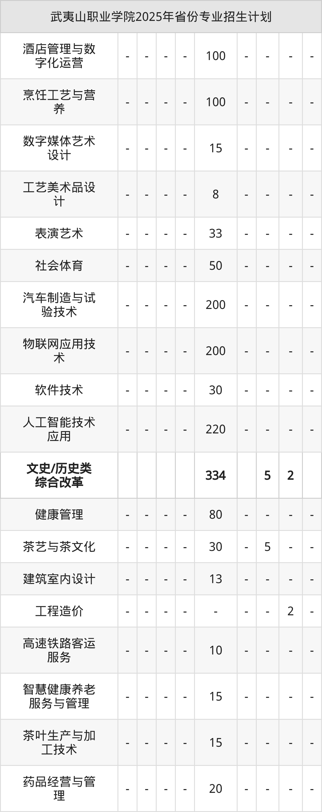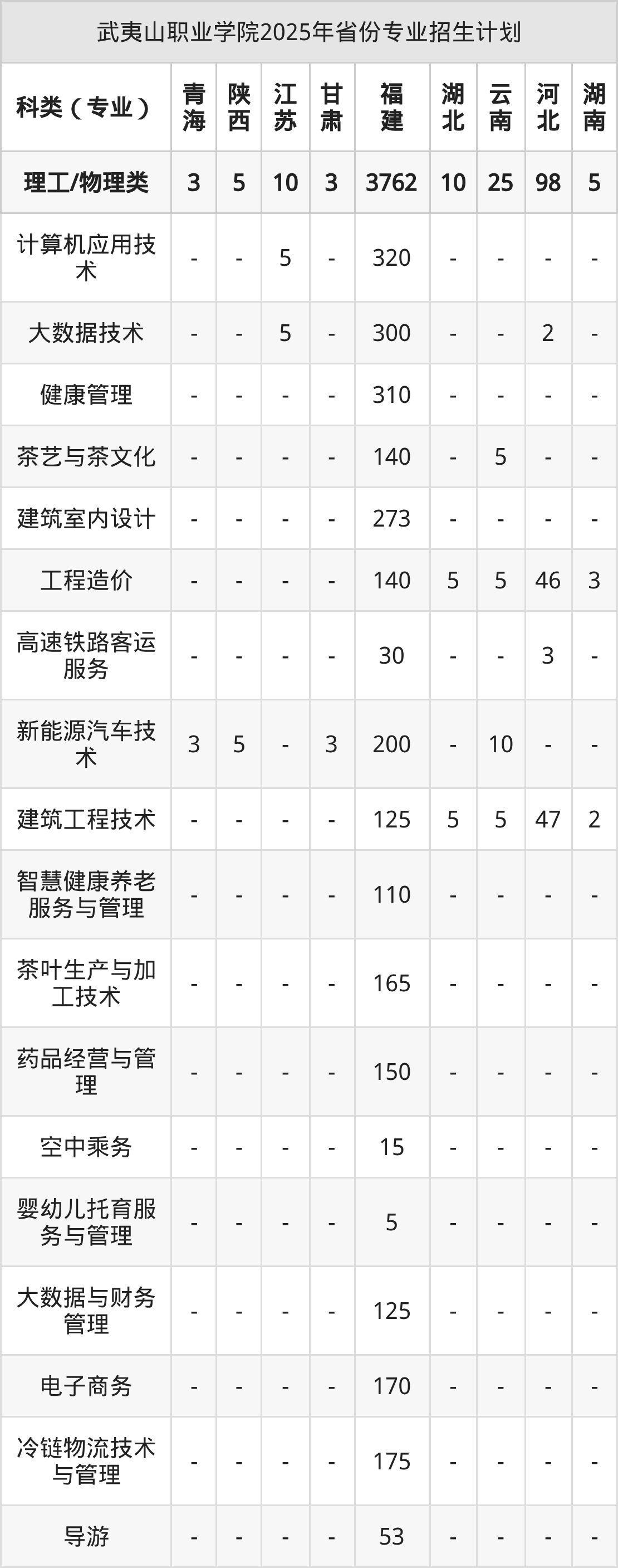 2026年武夷山职业学院专科招生计划待公布,下面附上2025年数据,暂供参考: