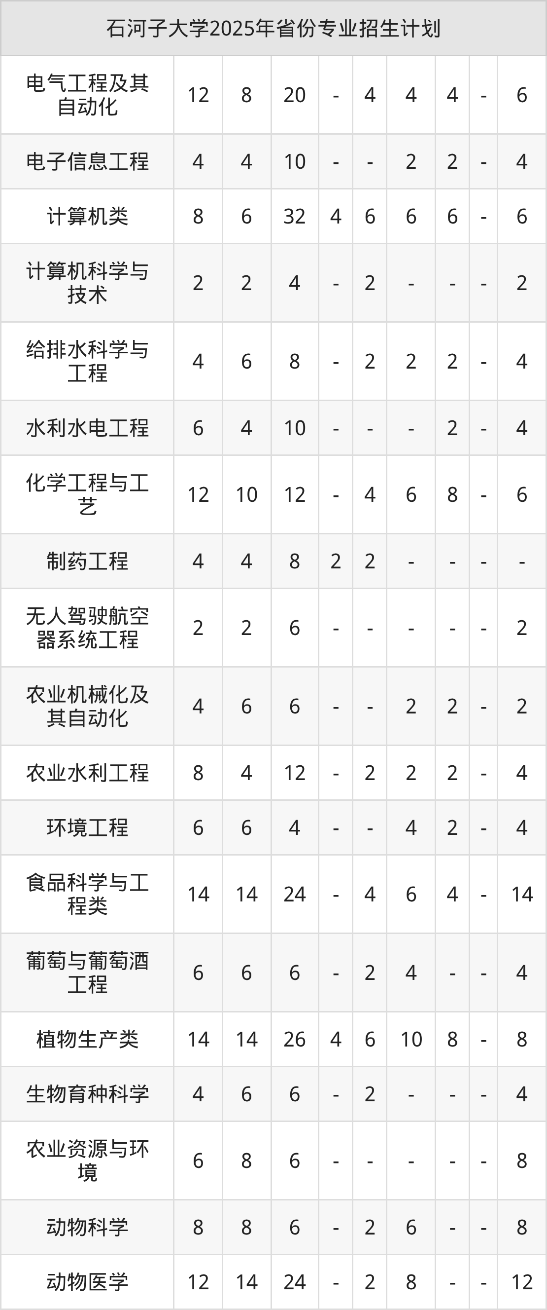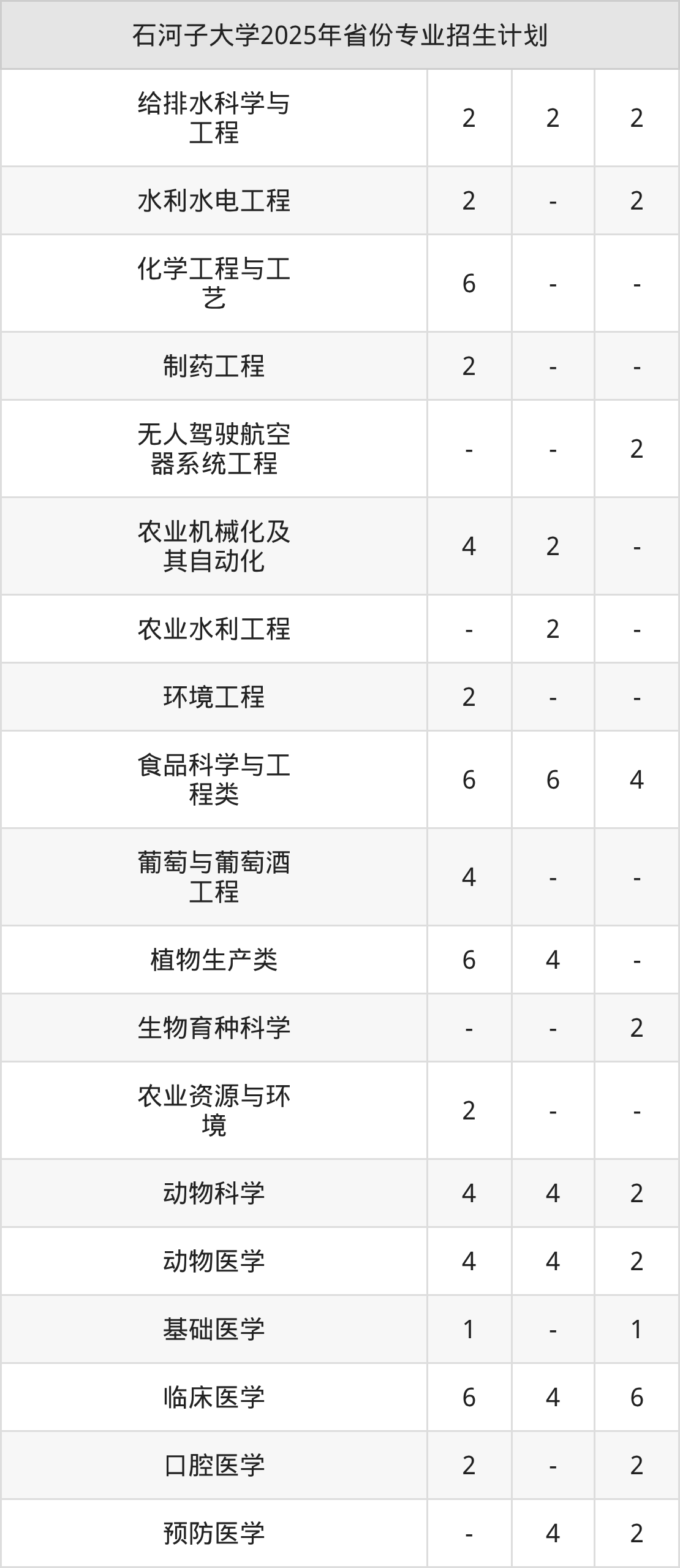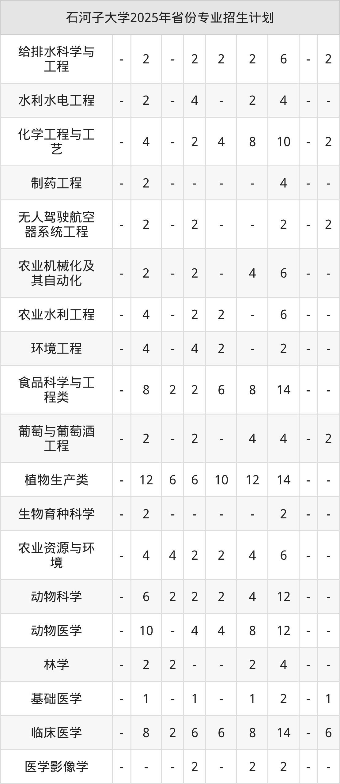 2026年石河子大学本科招生计划待公布,下面附上2025年数据,暂供参考: