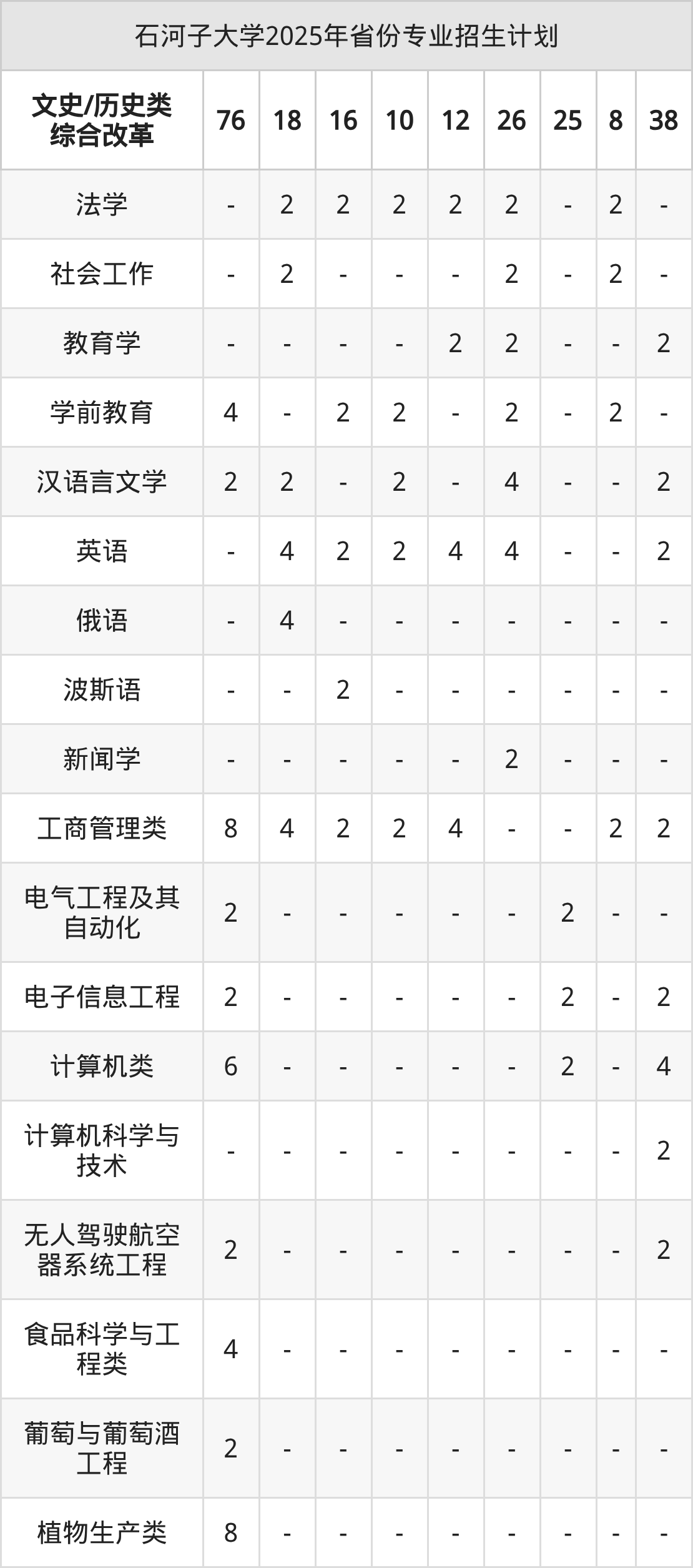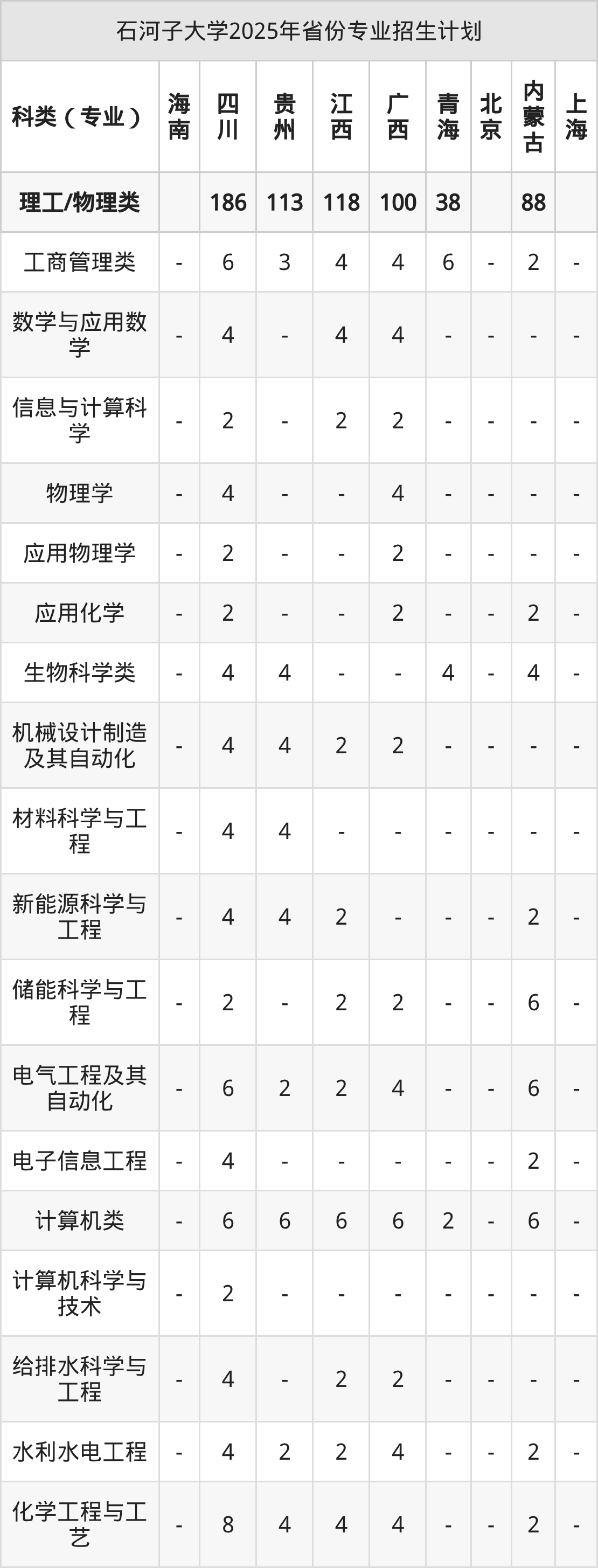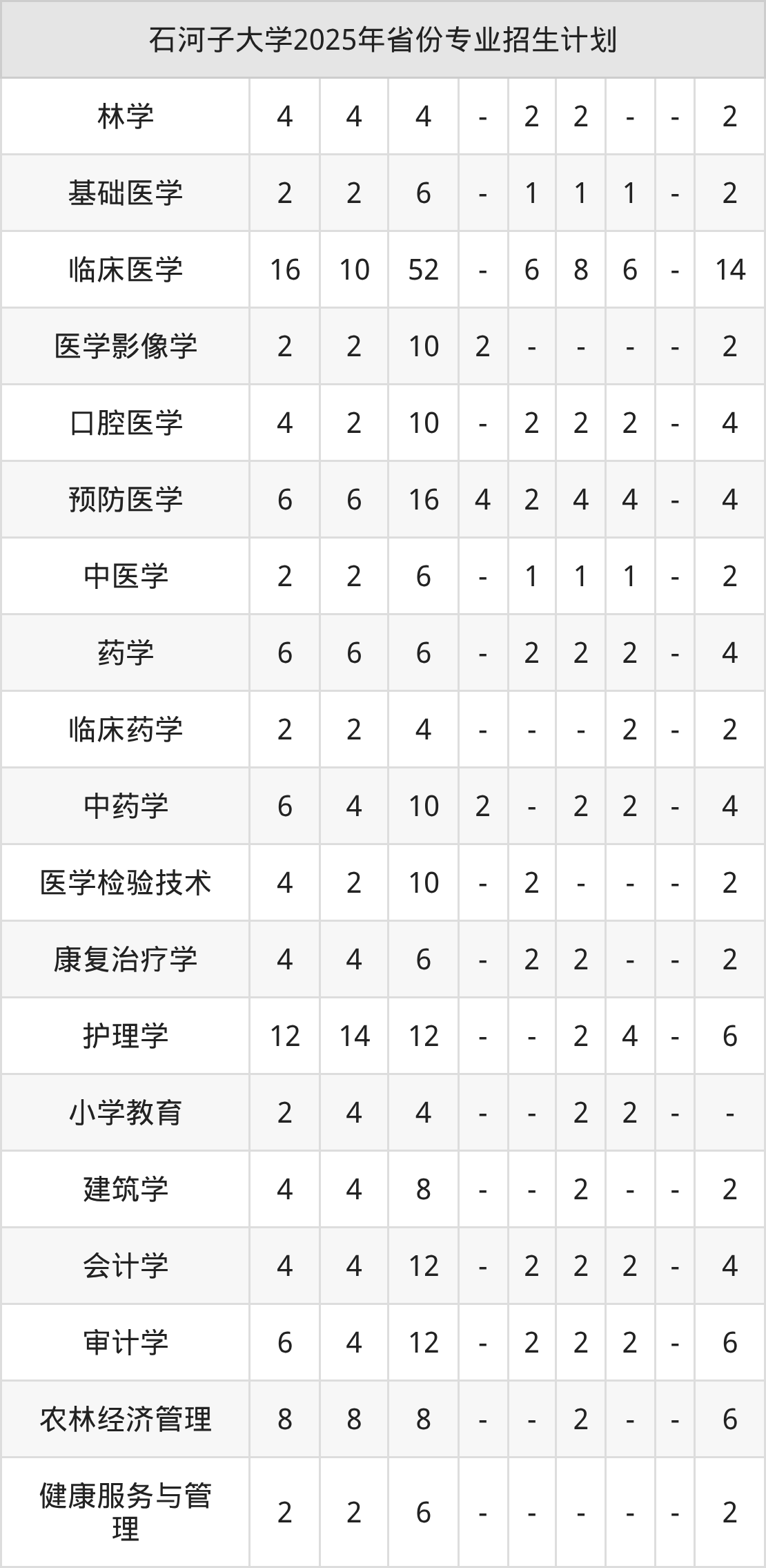 2026年石河子大学本科招生计划待公布,下面附上2025年数据,暂供参考: