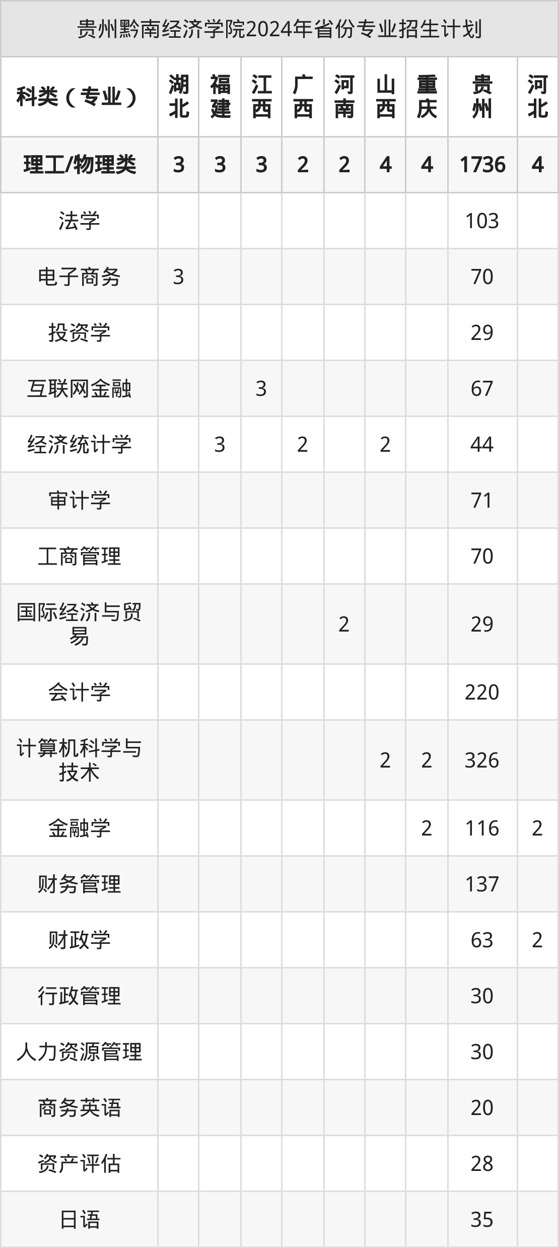 2025年贵州黔南经济学院本科招生计划待公布,下面附上2024年数据,暂供参考: