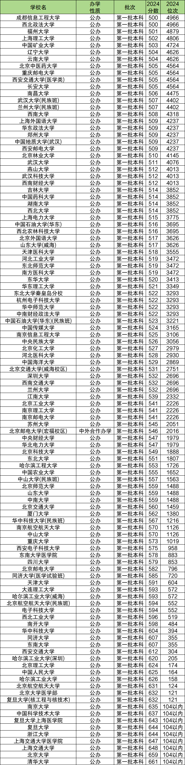 1-5000名中最低位次对应的大学有成都信息工程大学和西北政法大学,最低录取位次为4966位,位次对应分数为500分。