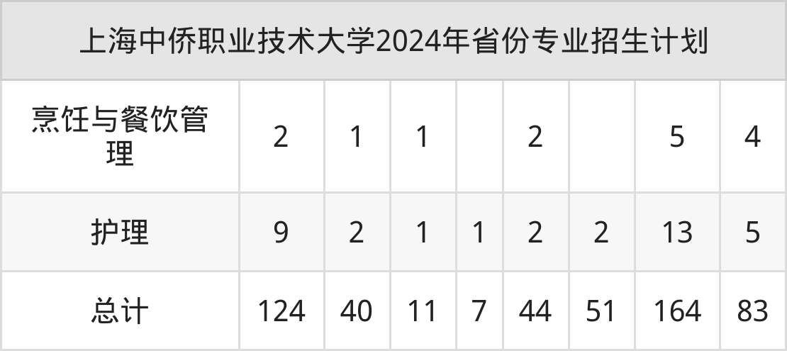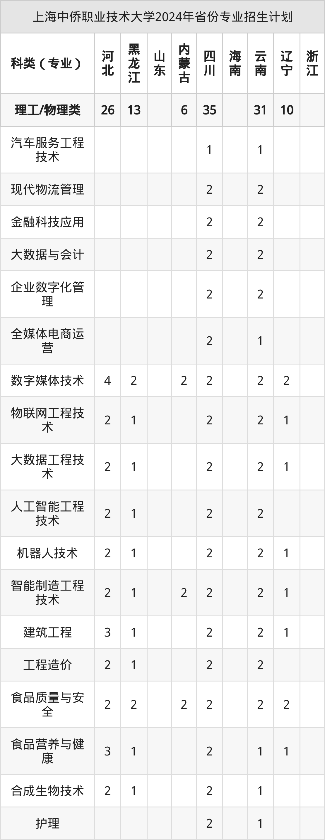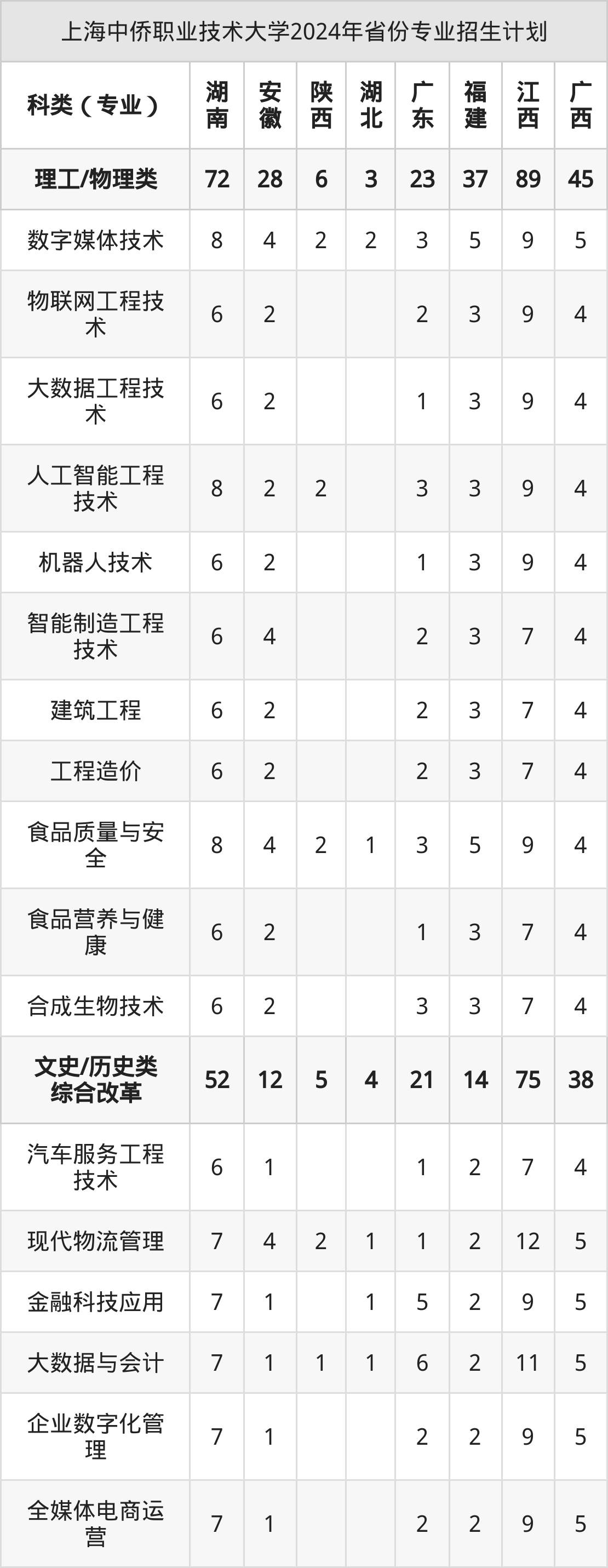 2025年上海中侨职业技术大学本科招生计划待公布,下面附上2024年数据,暂供参考: