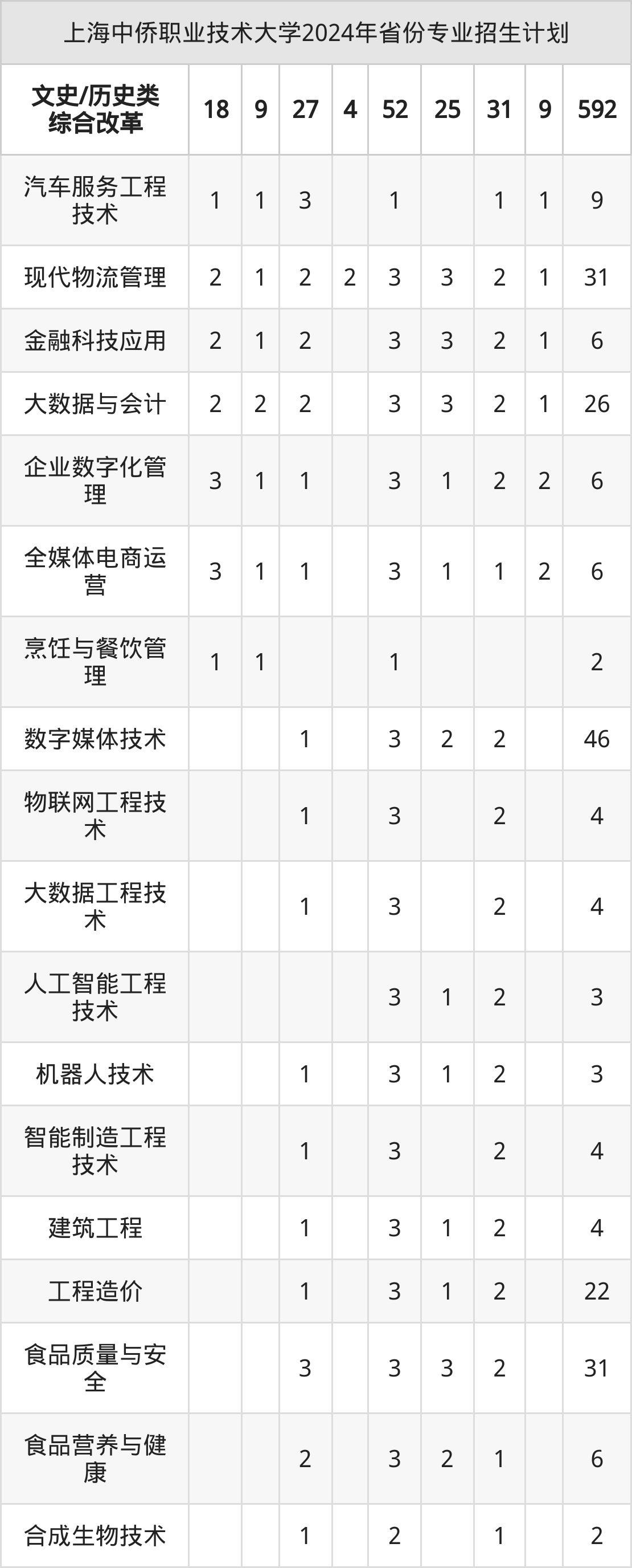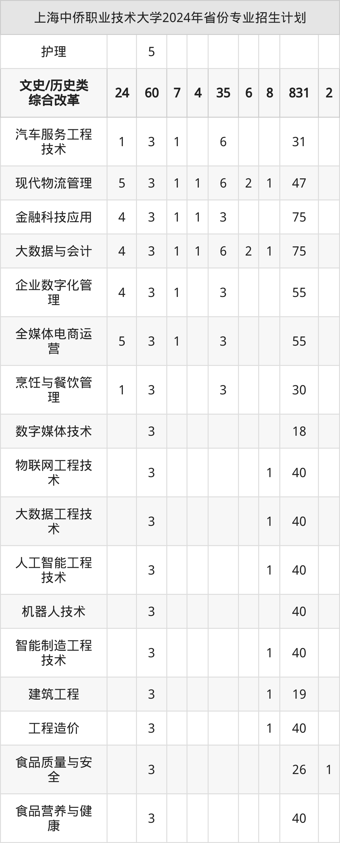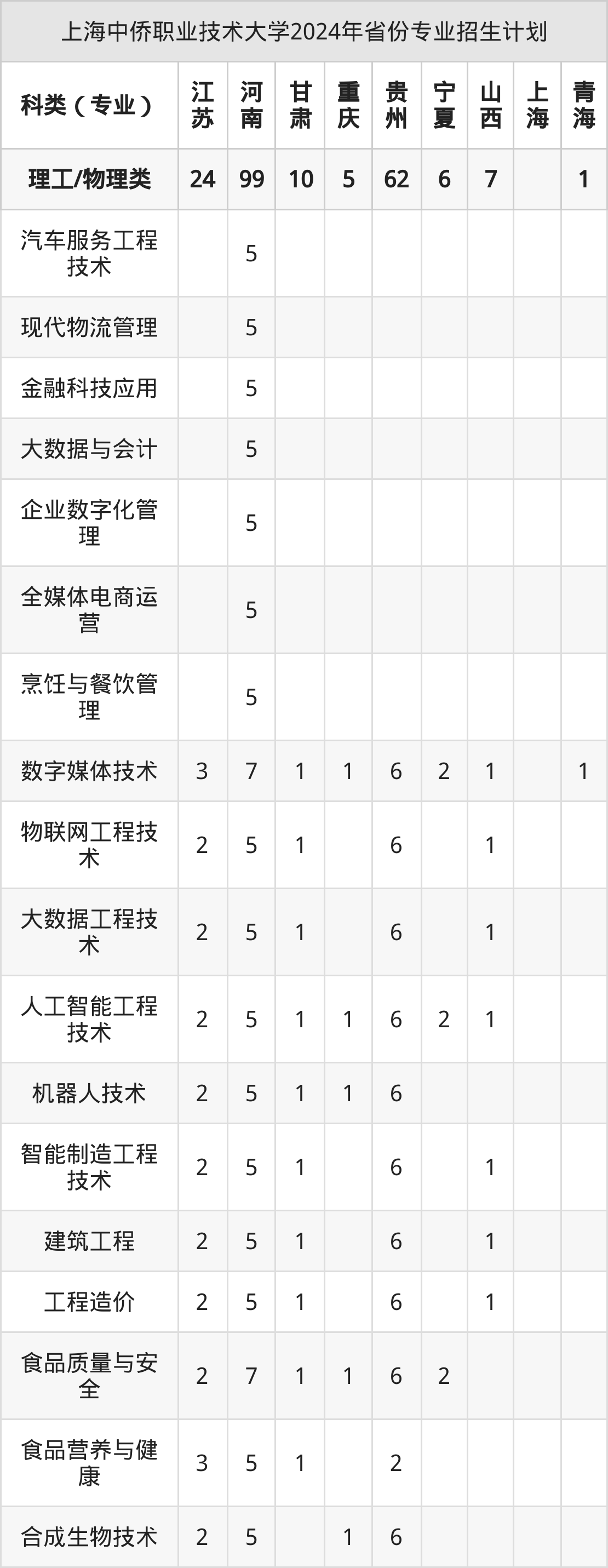 2025年上海中侨职业技术大学本科招生计划待公布,下面附上2024年数据,暂供参考:
