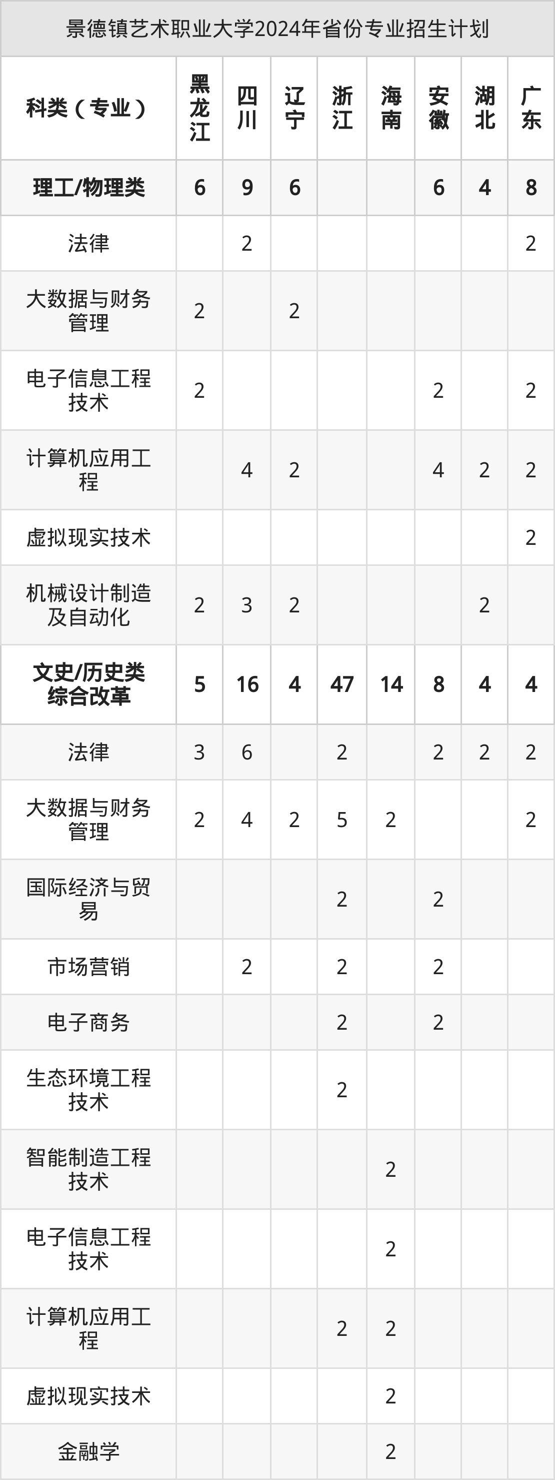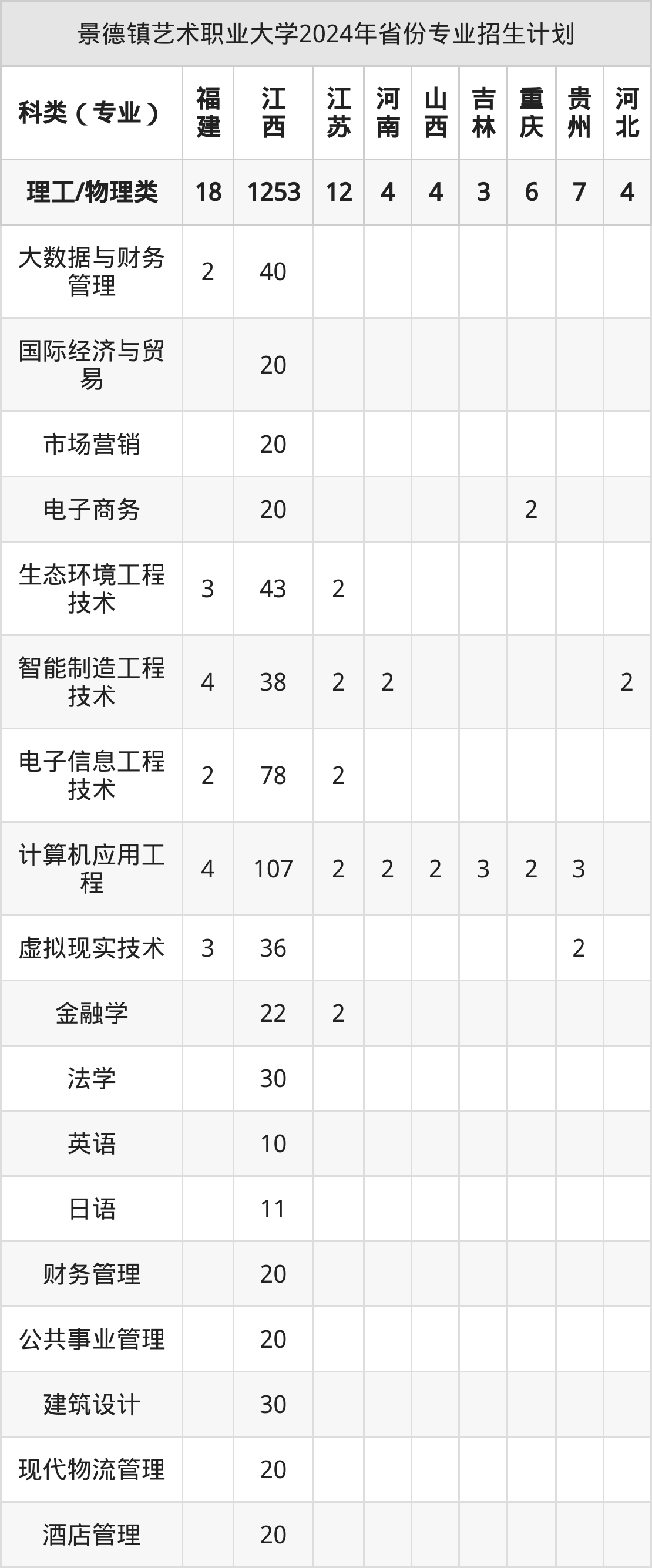 2025年景德镇艺术职业大学本科招生计划待公布,下面附上2024年数据,暂供参考: