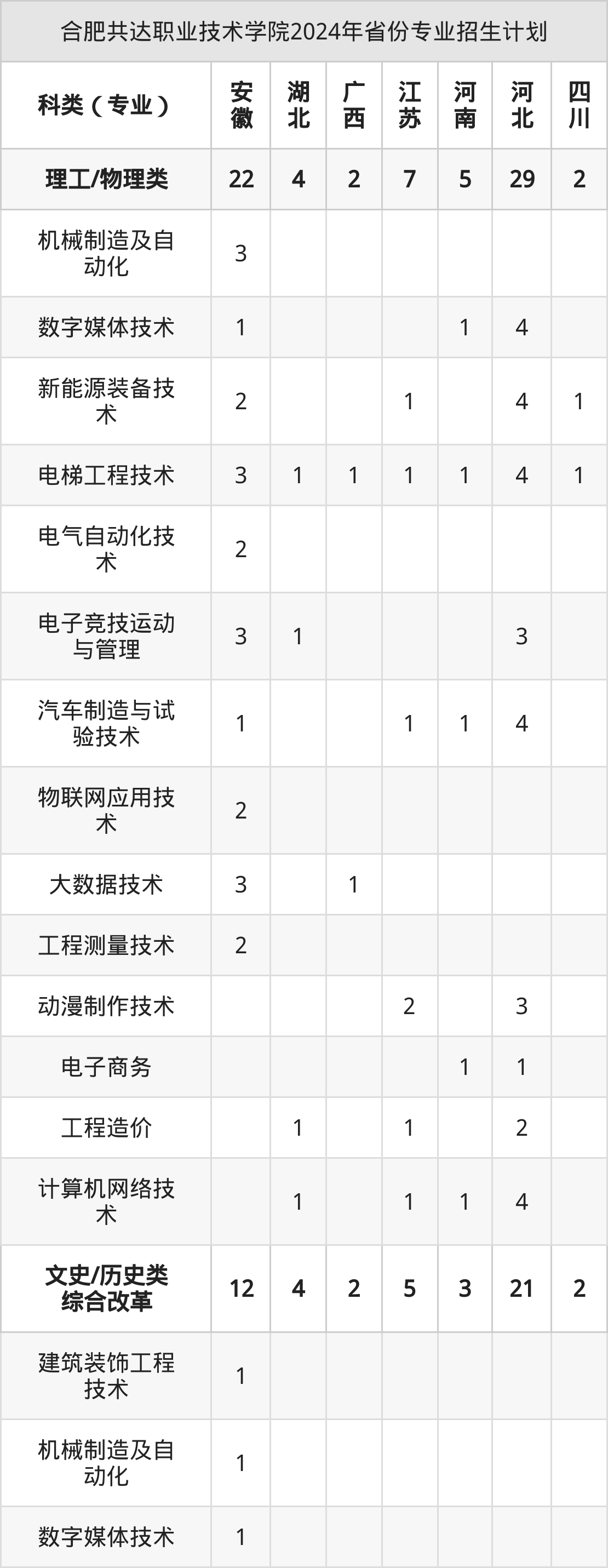 2025年合肥共达职业技术学院专科招生计划待公布,下面附上2024年数据,暂供参考: