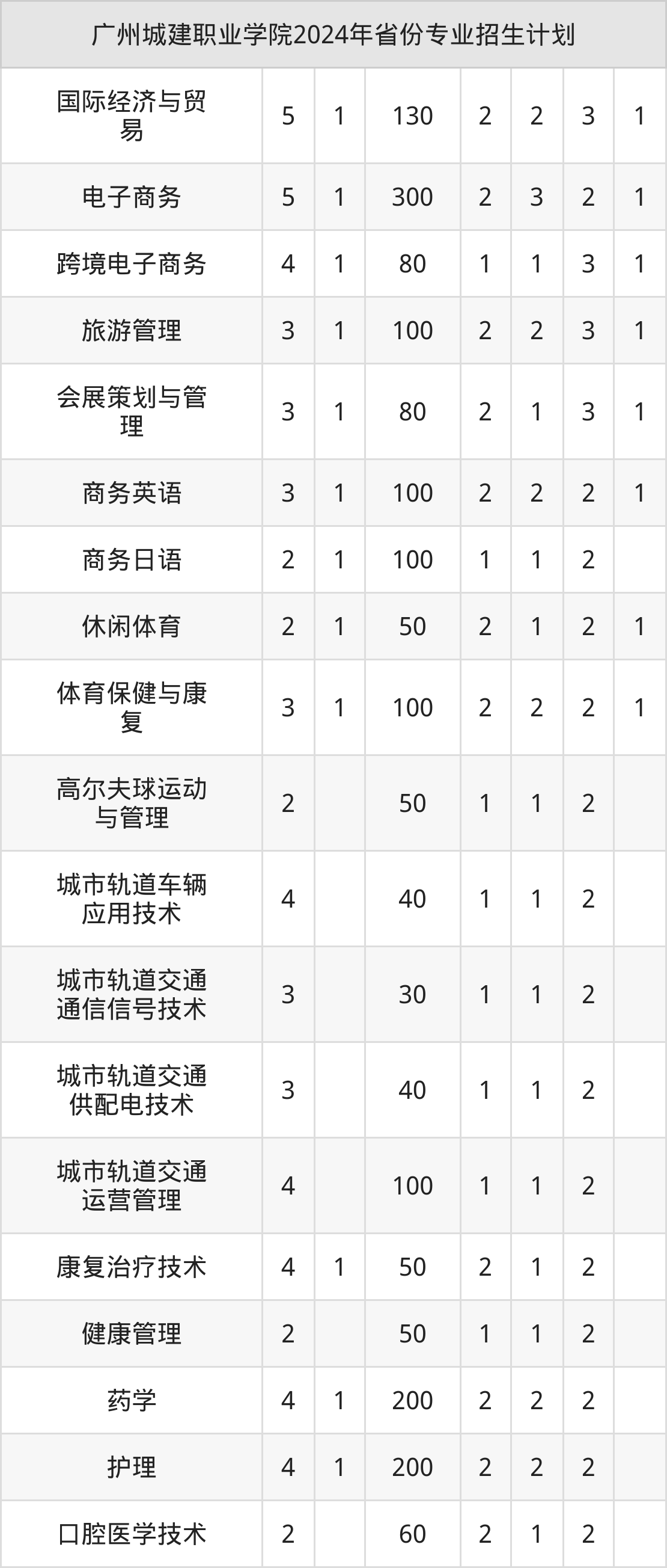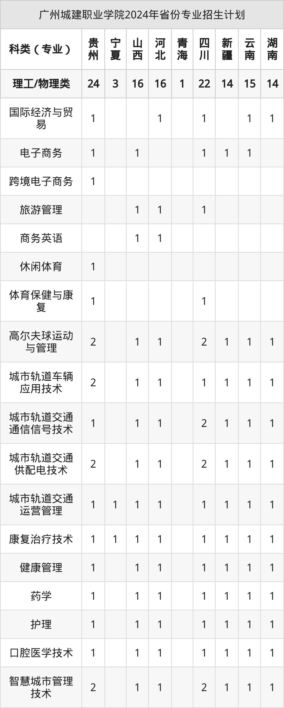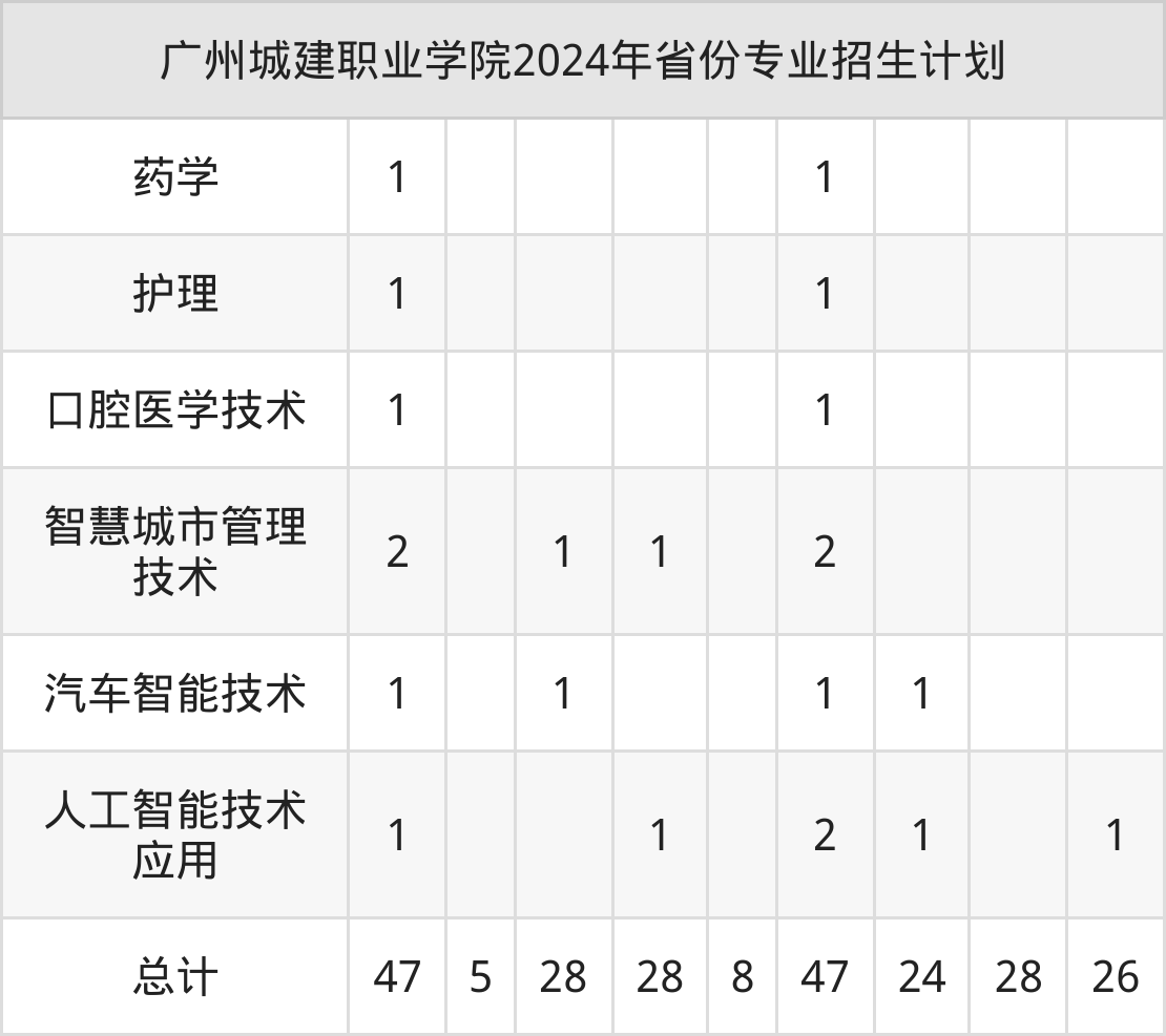 2025年广州城建职业学院专科招生计划待公布,下面附上2024年数据,暂供参考:
