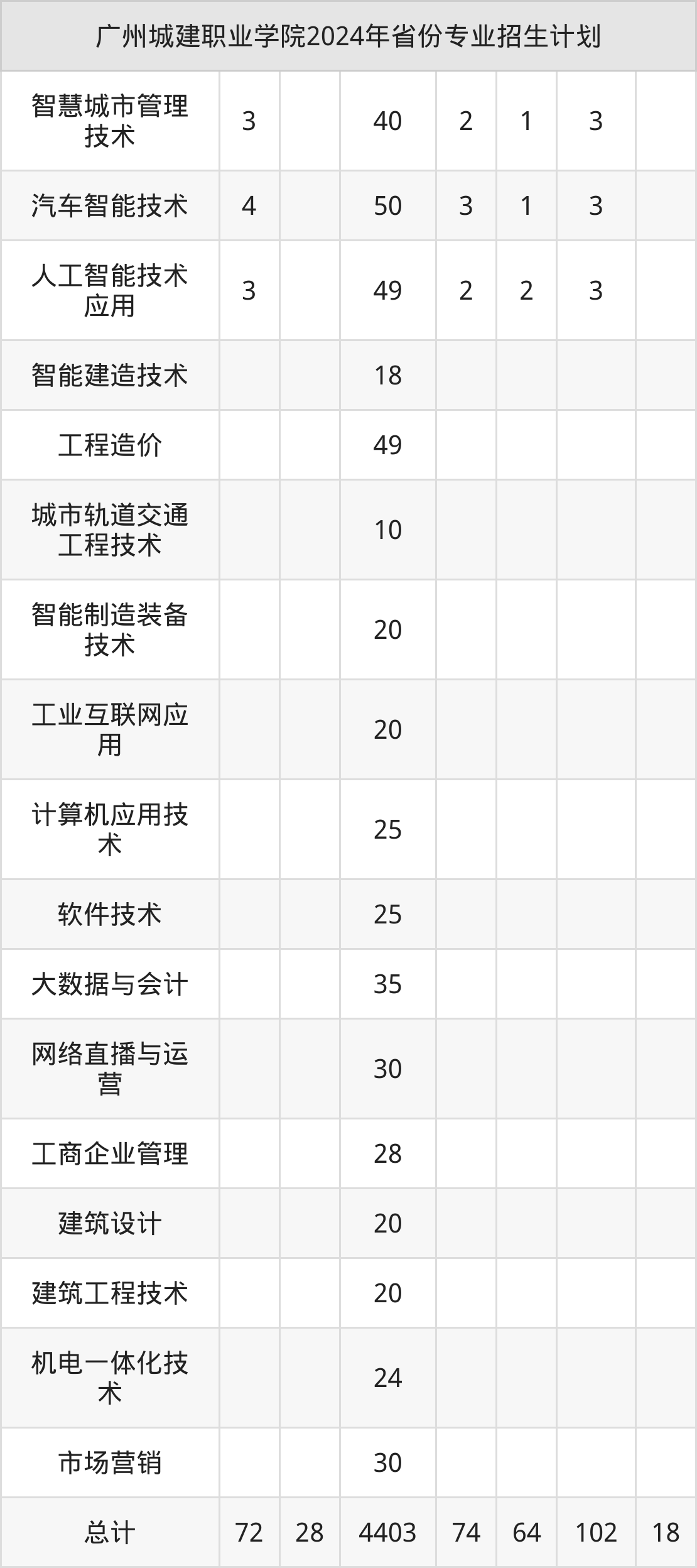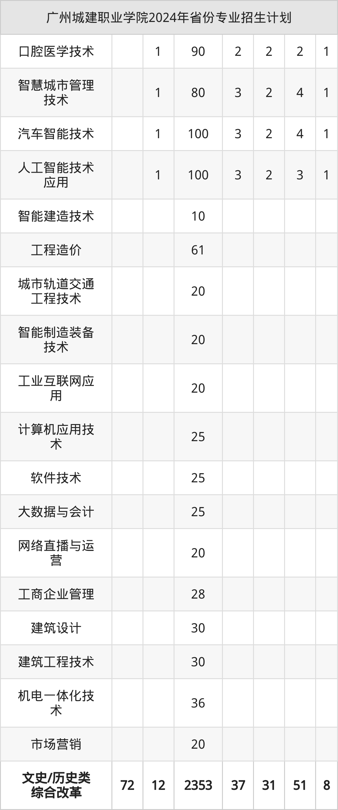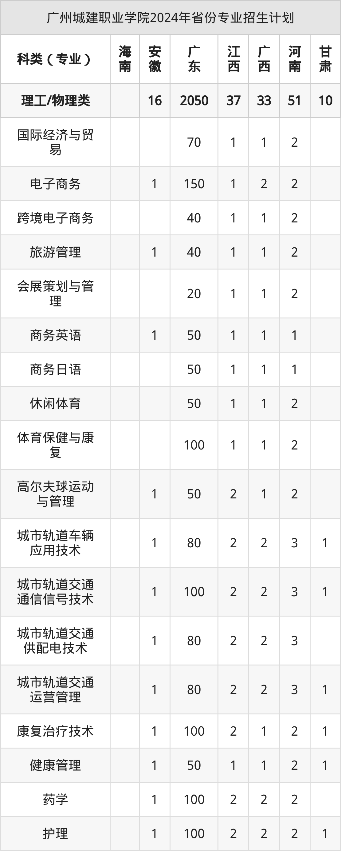 2025年广州城建职业学院专科招生计划待公布,下面附上2024年数据,暂供参考: