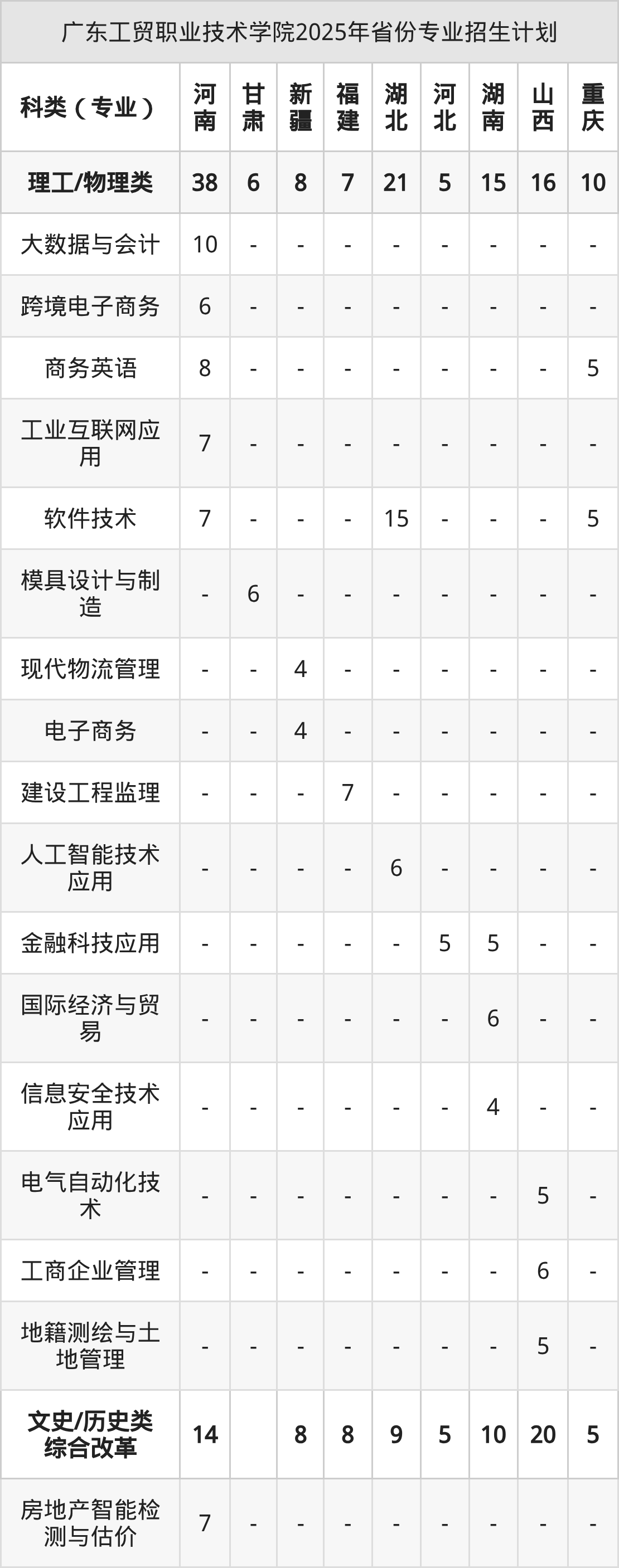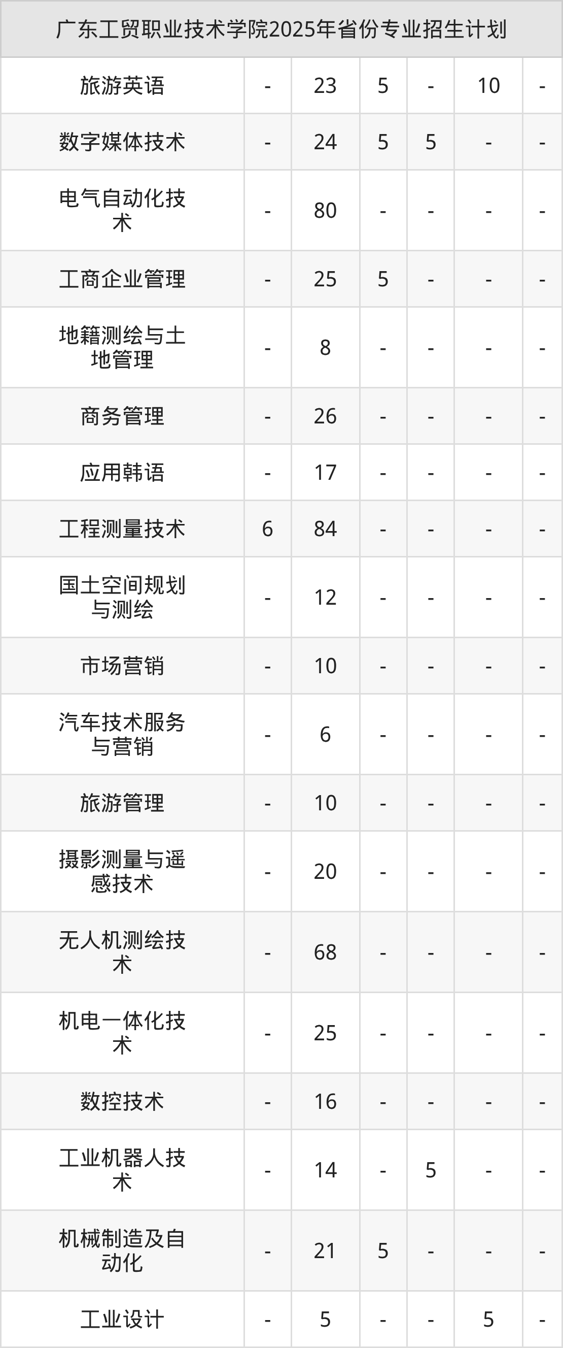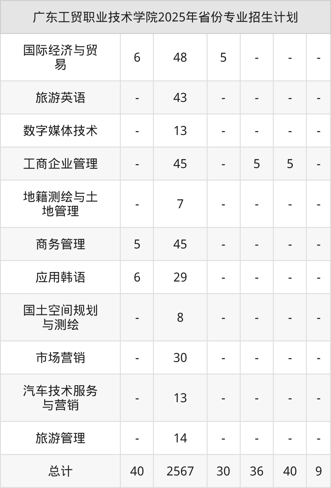2026年广东工贸职业技术学院专科招生计划待公布,下面附上2025年数据,暂供参考: