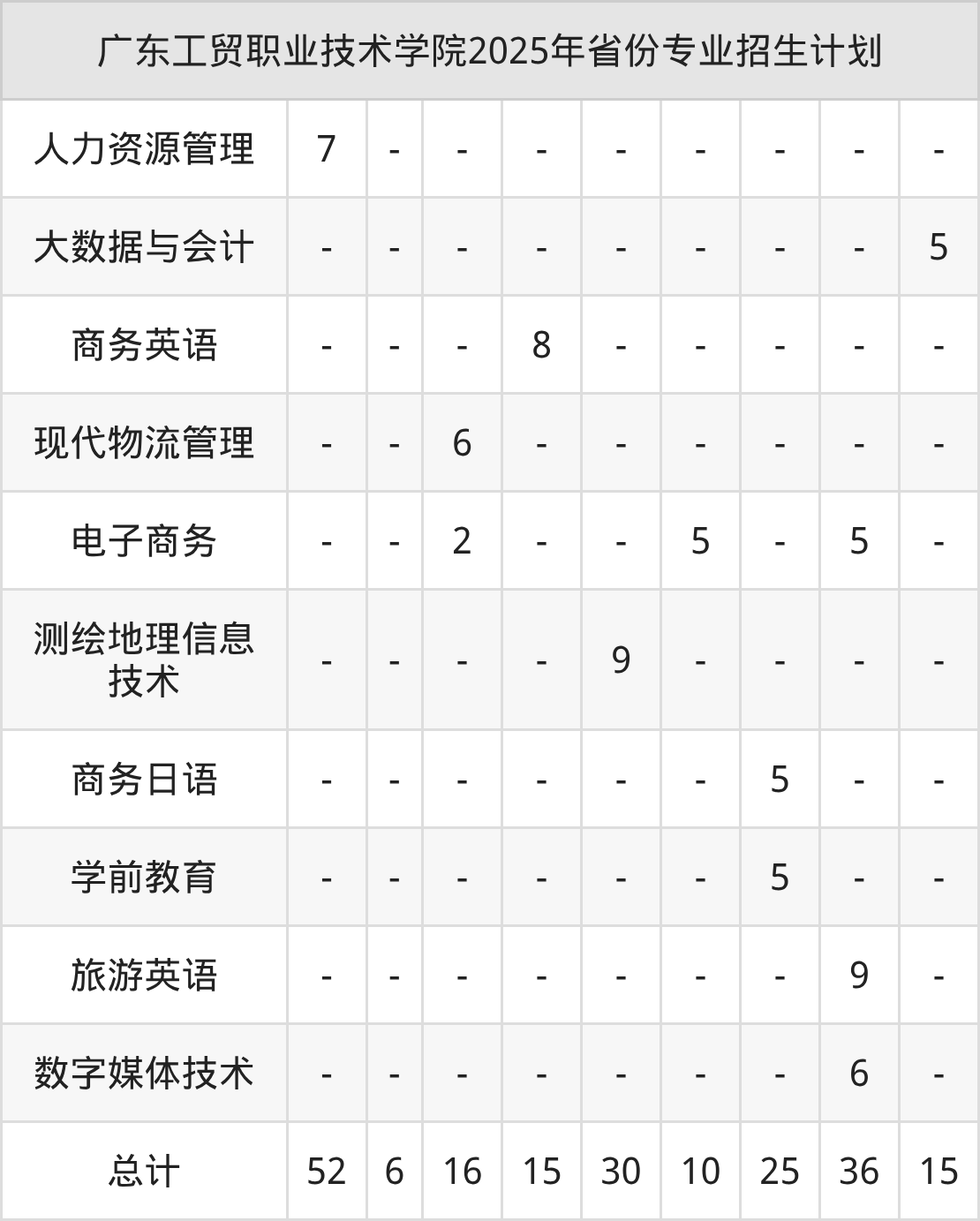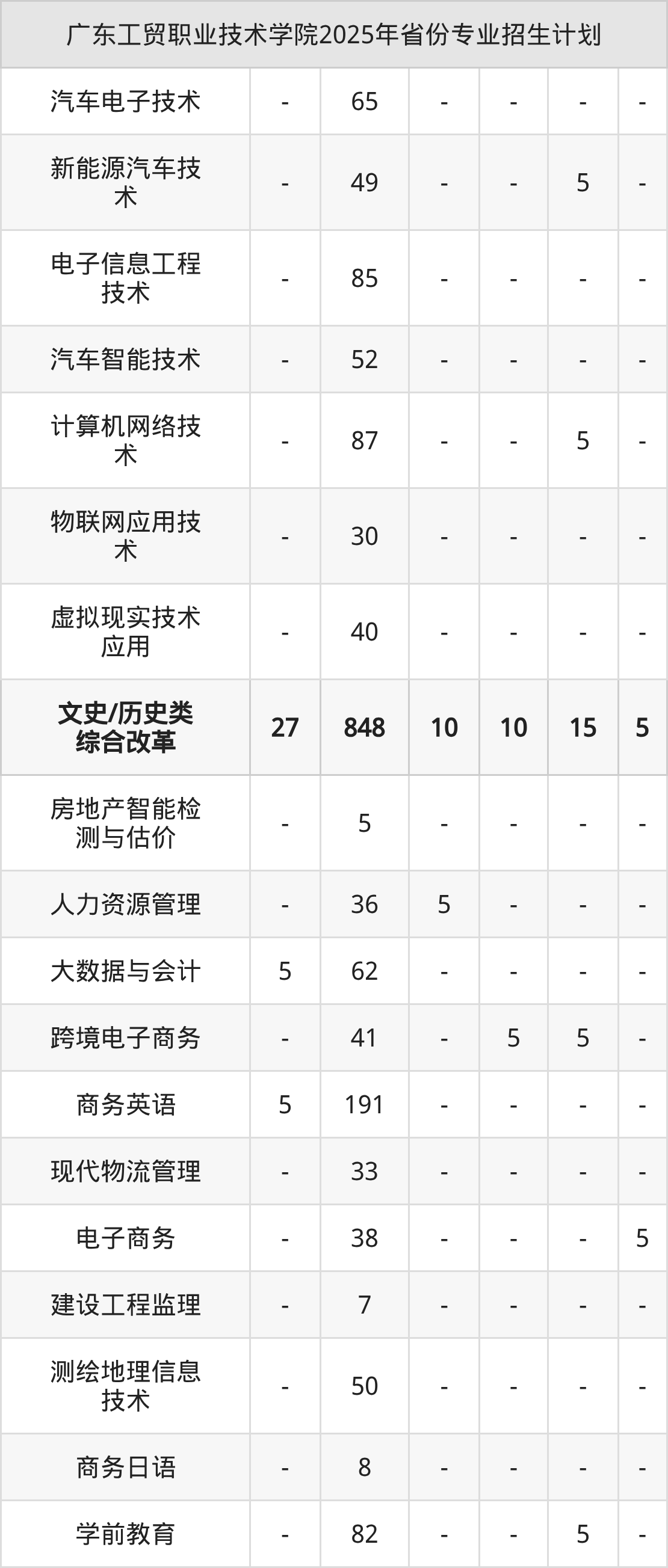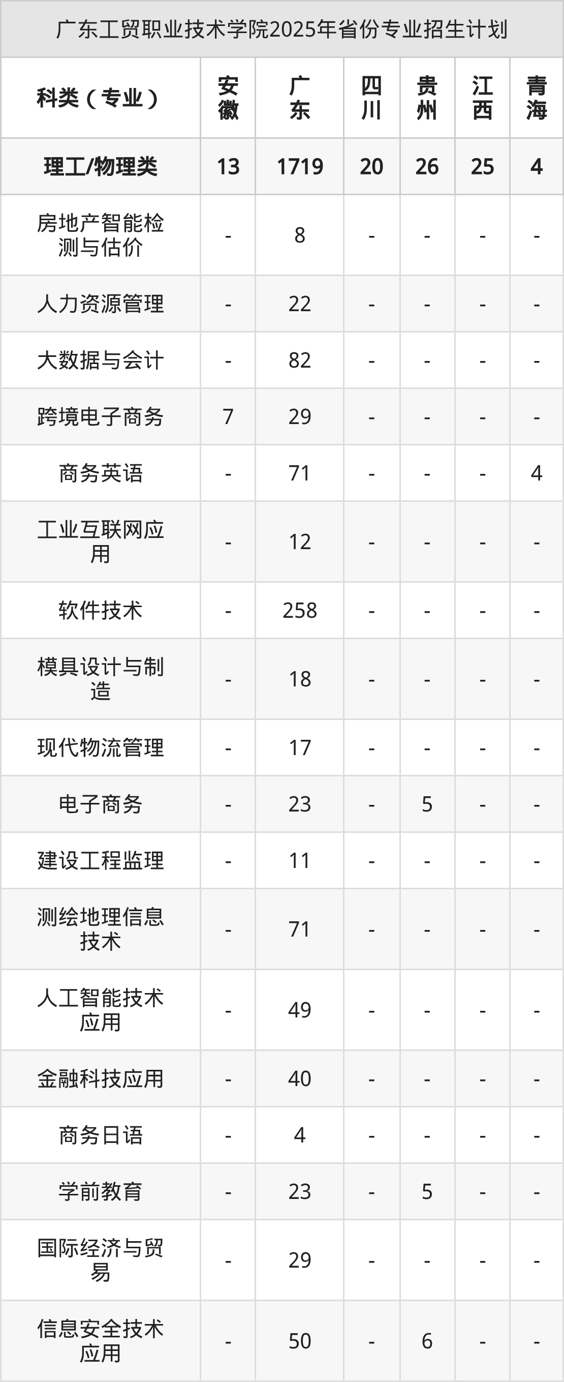 2026年广东工贸职业技术学院专科招生计划待公布,下面附上2025年数据,暂供参考: