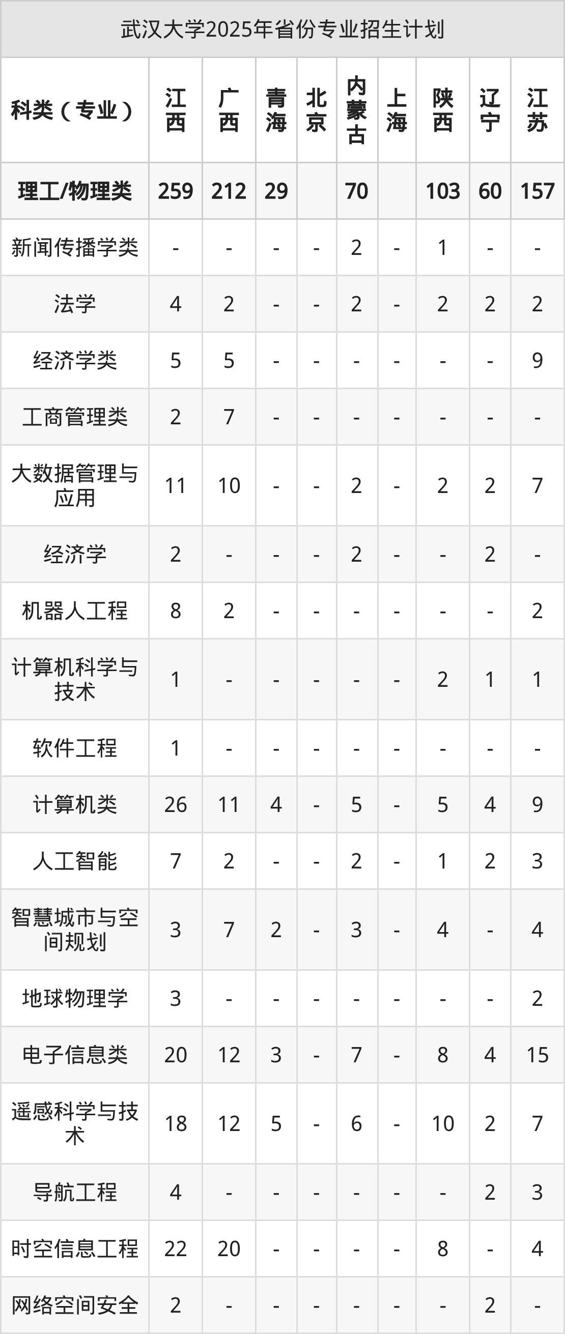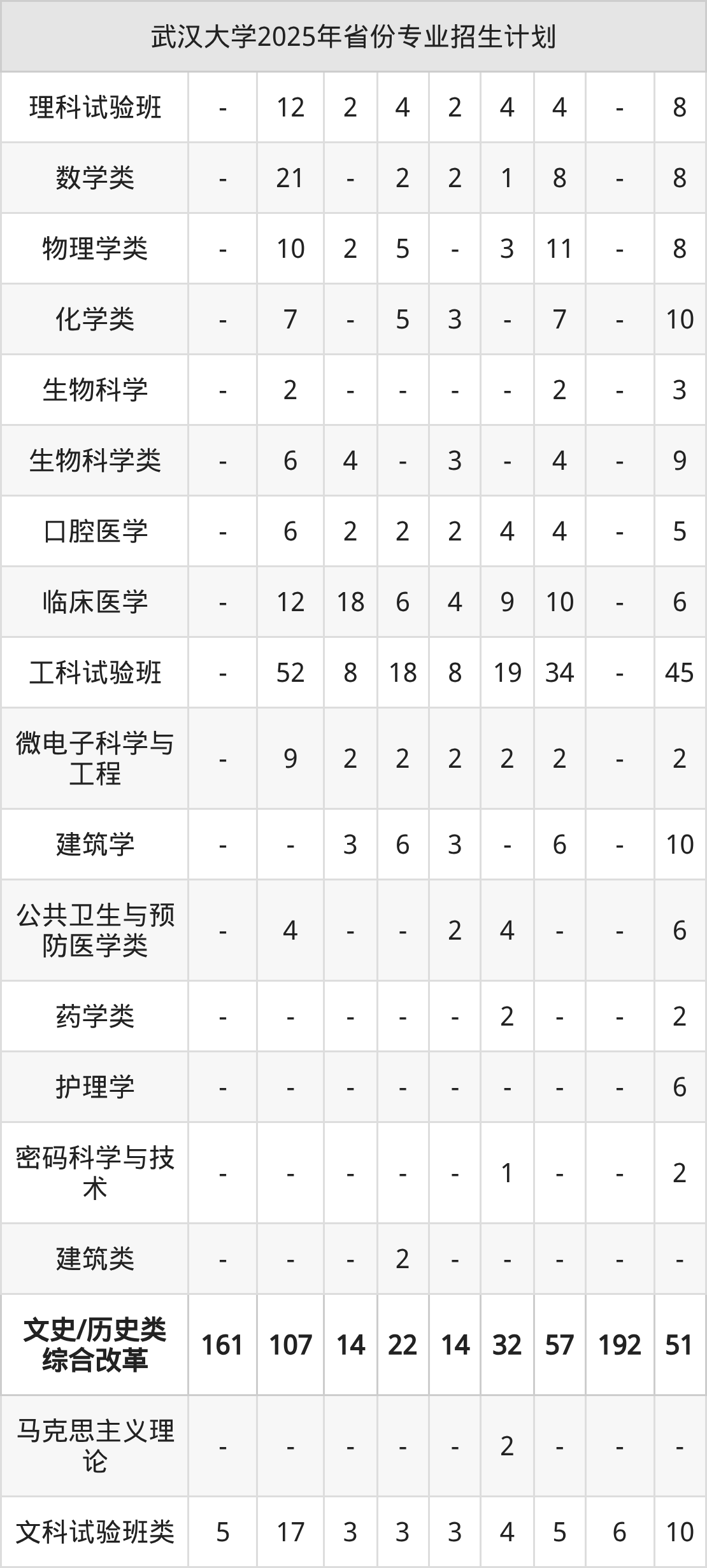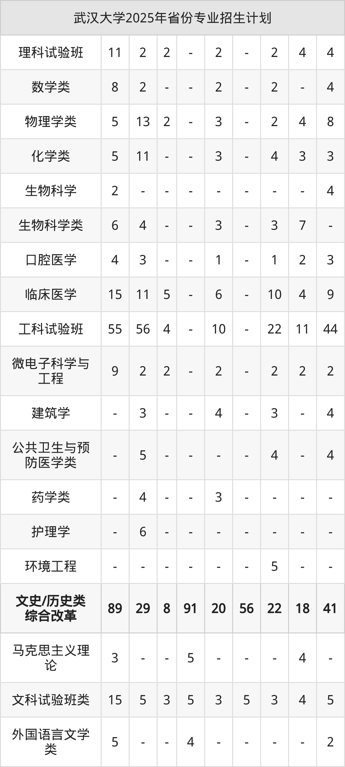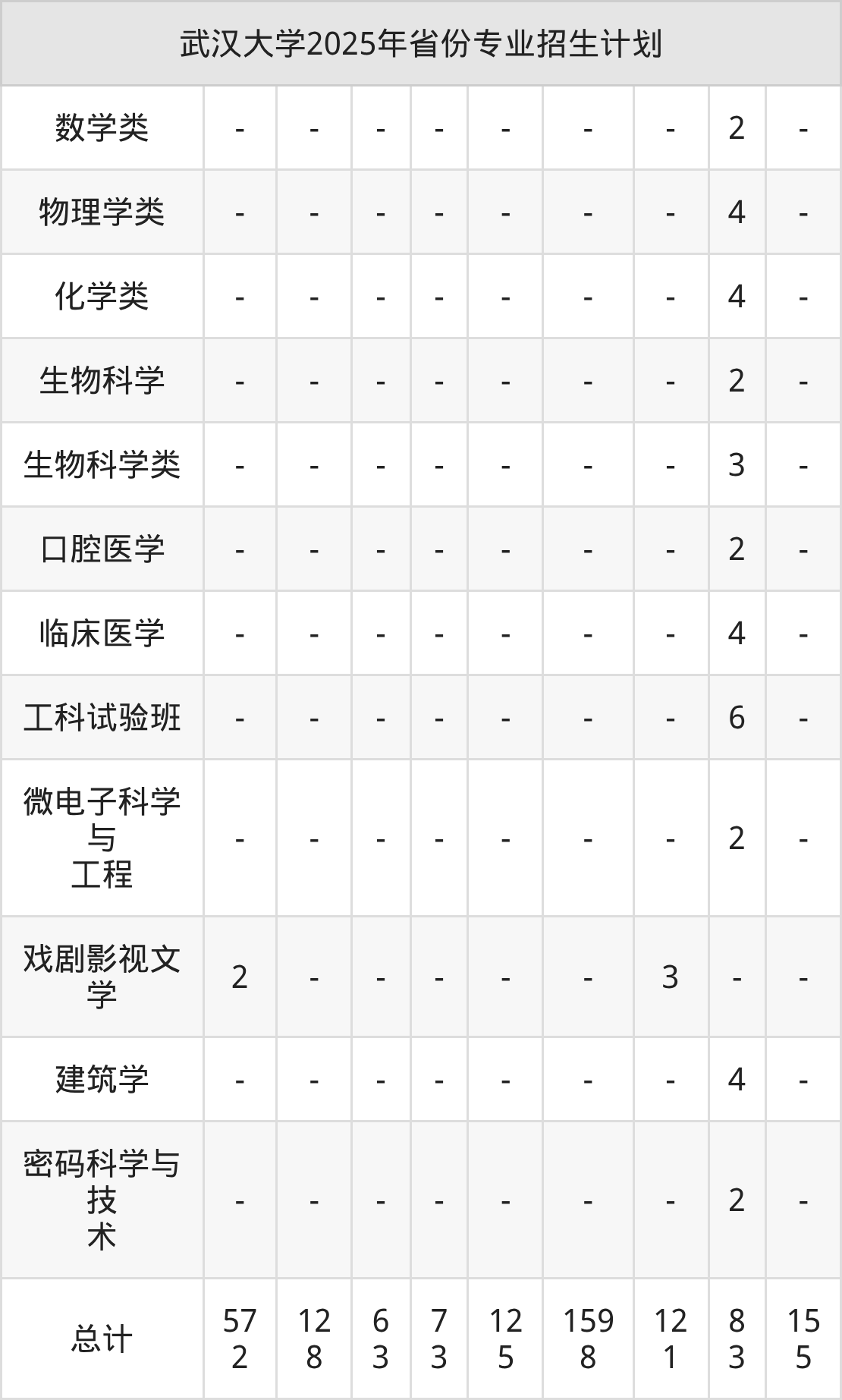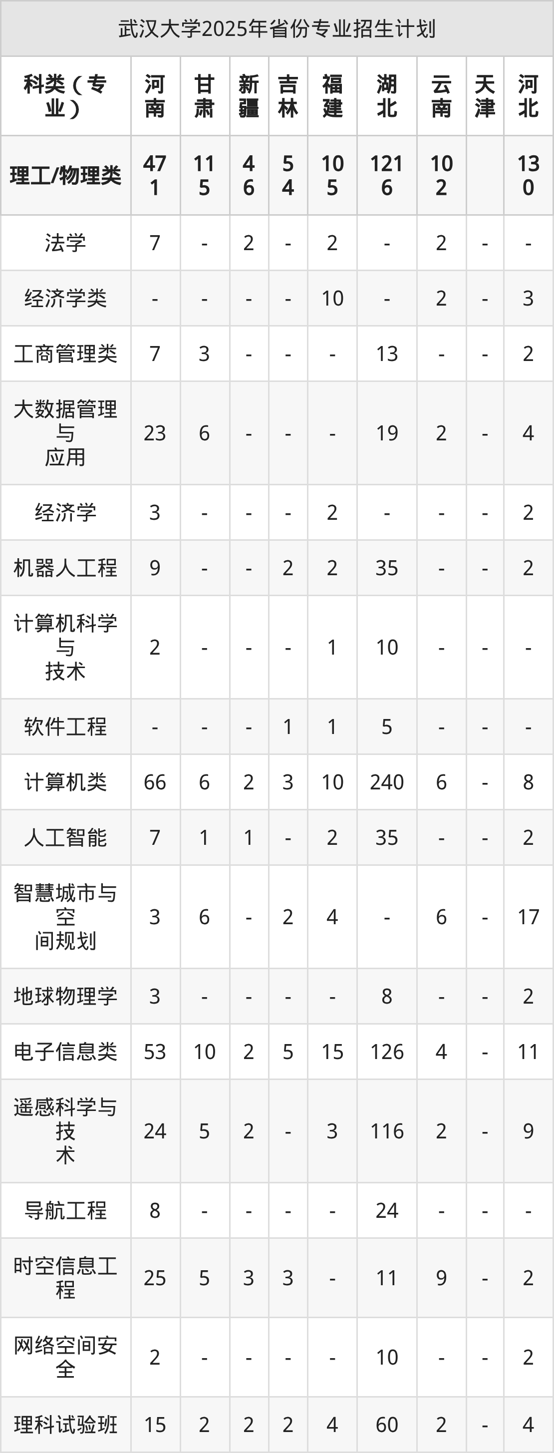 2026年武汉大学本科招生计划待公布,下面附上2025年数据,暂供参考: