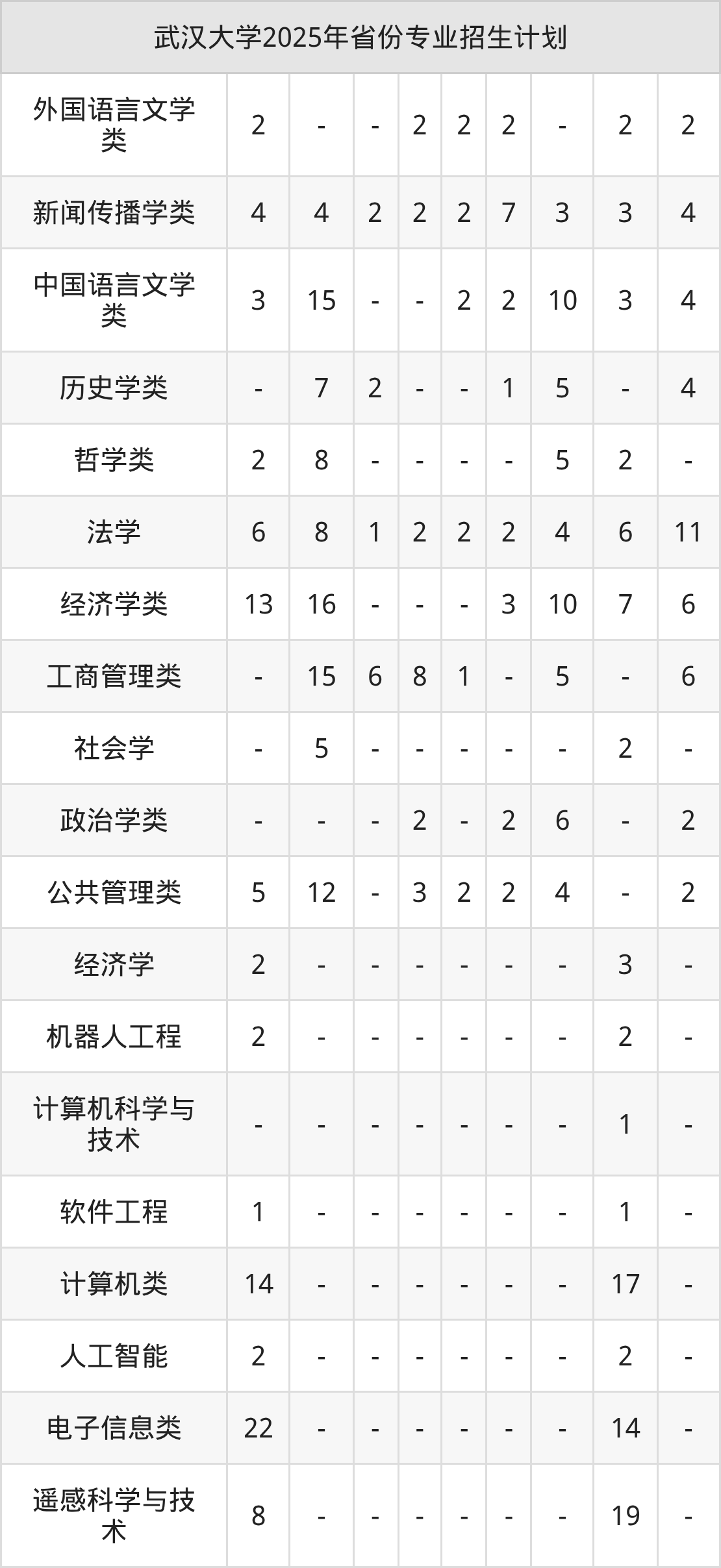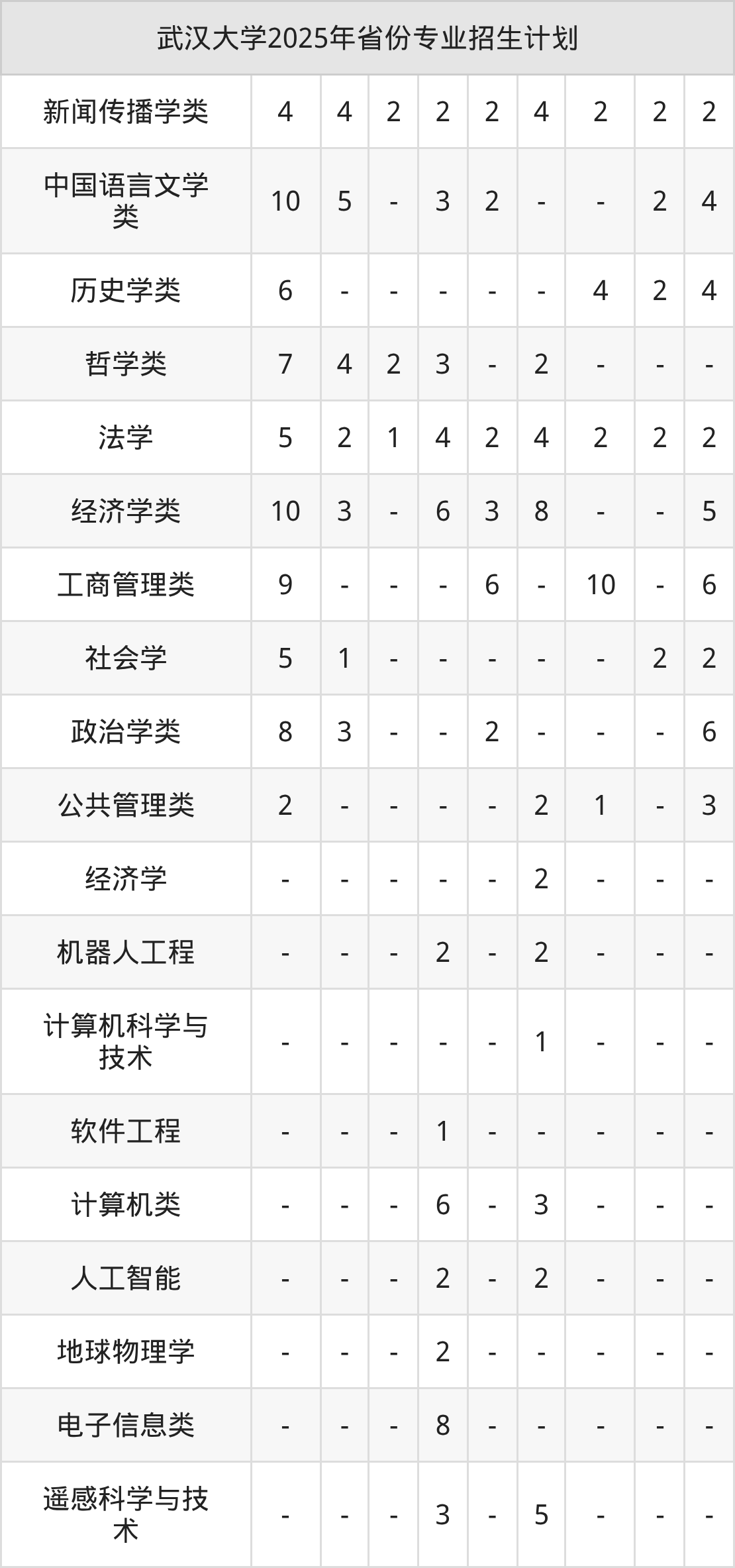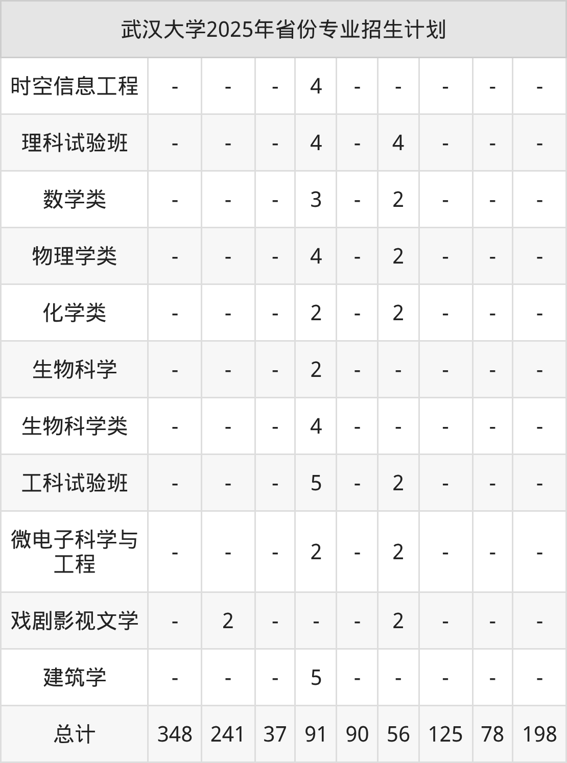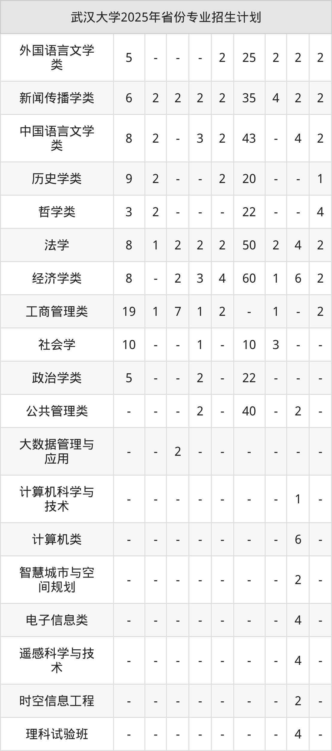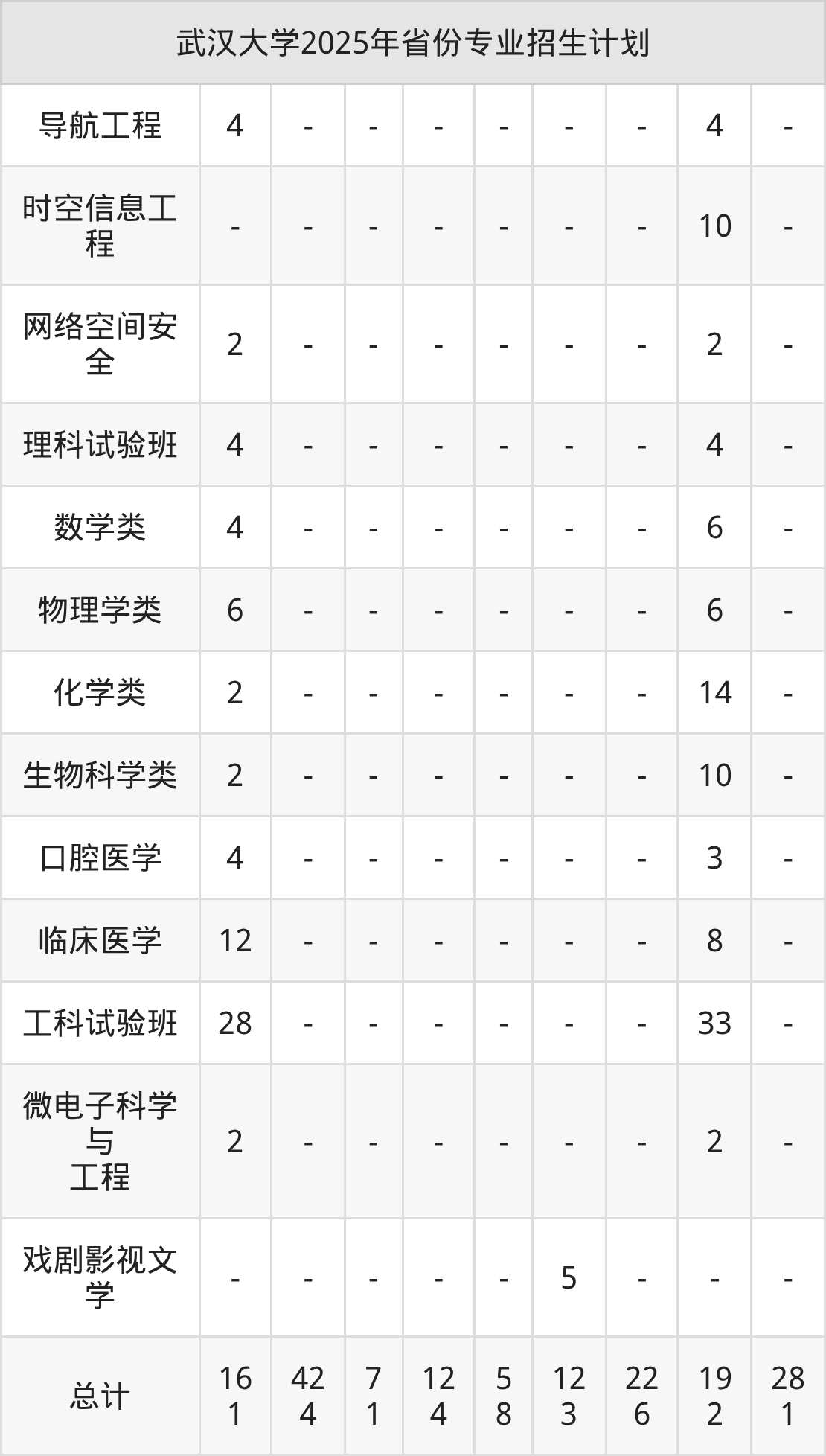 2026年武汉大学本科招生计划待公布,下面附上2025年数据,暂供参考: