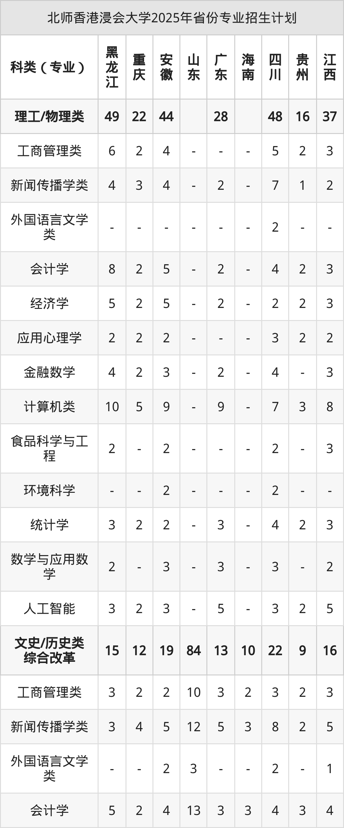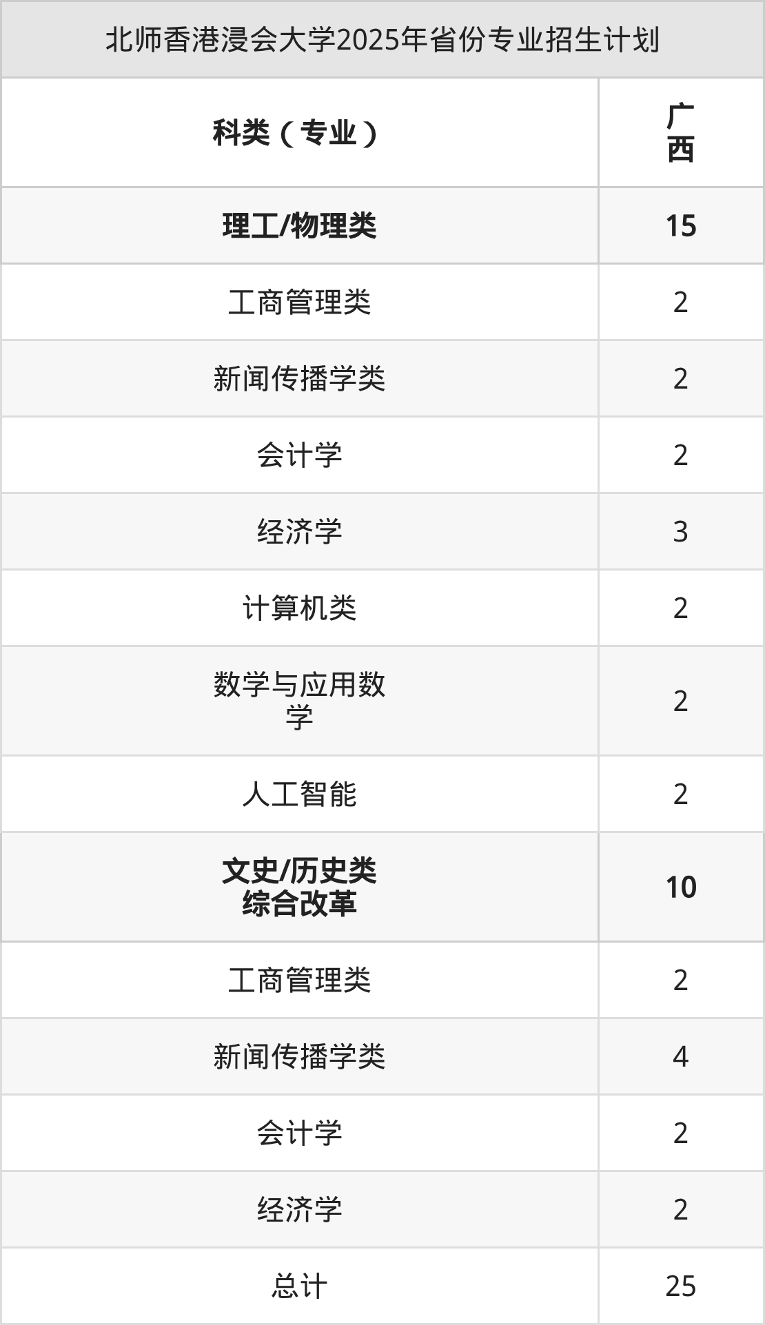 2026年北师香港浸会大学本科招生计划待公布,下面附上2025年数据,暂供参考: