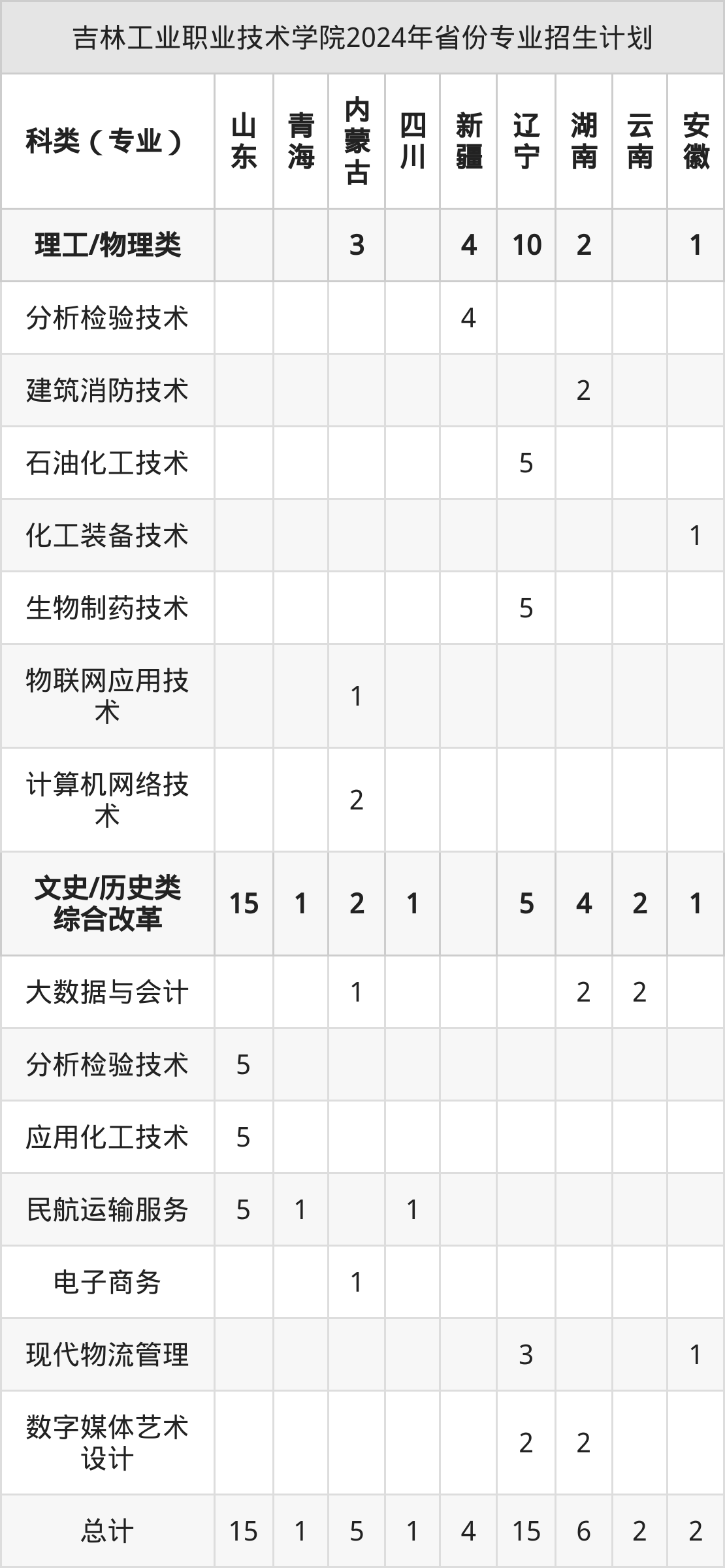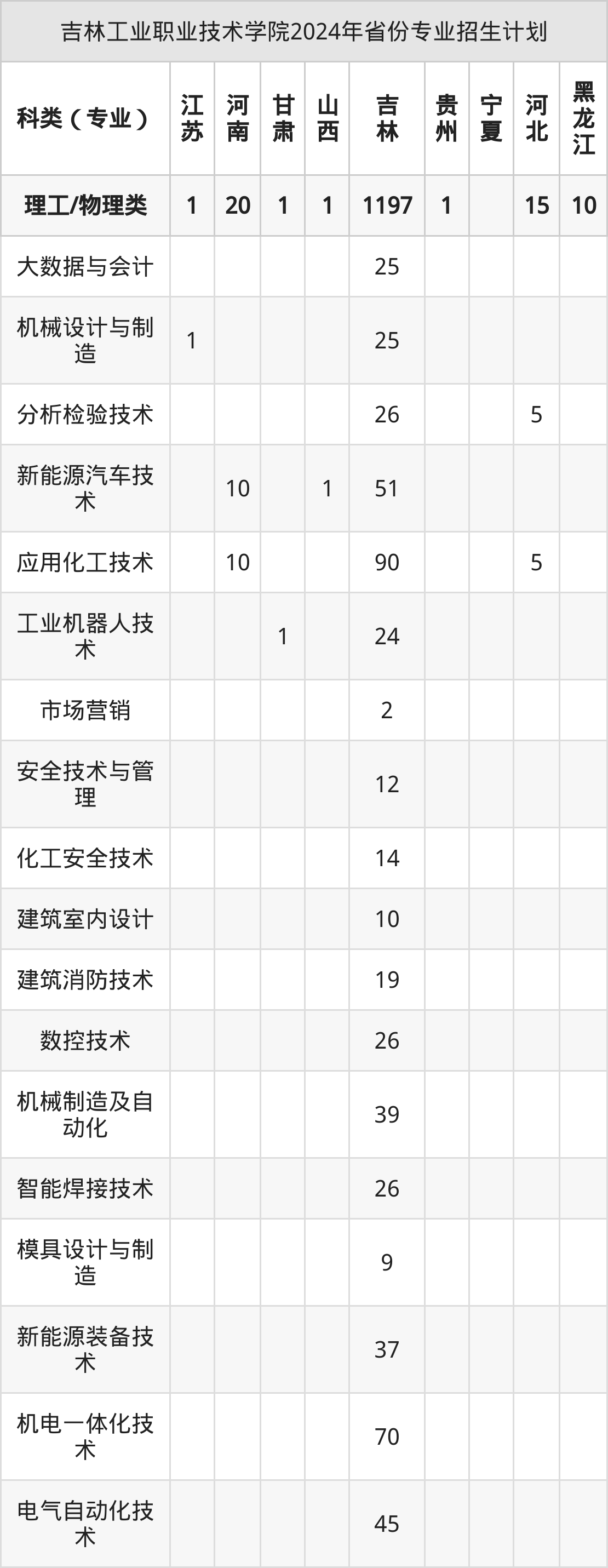 2025年吉林工业职业技术学院专科招生计划待公布,下面附上2024年数据,暂供参考: