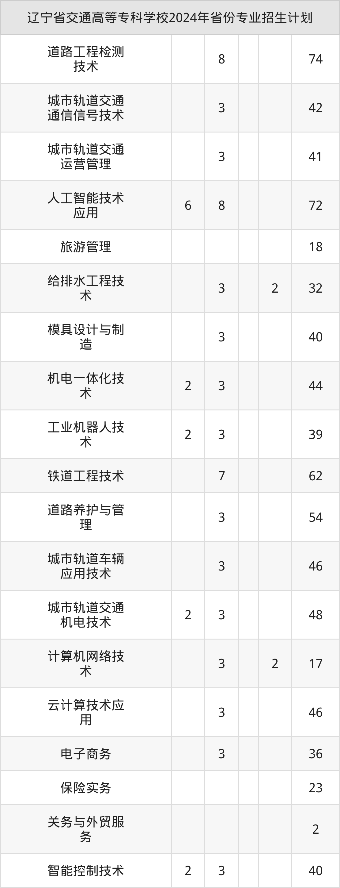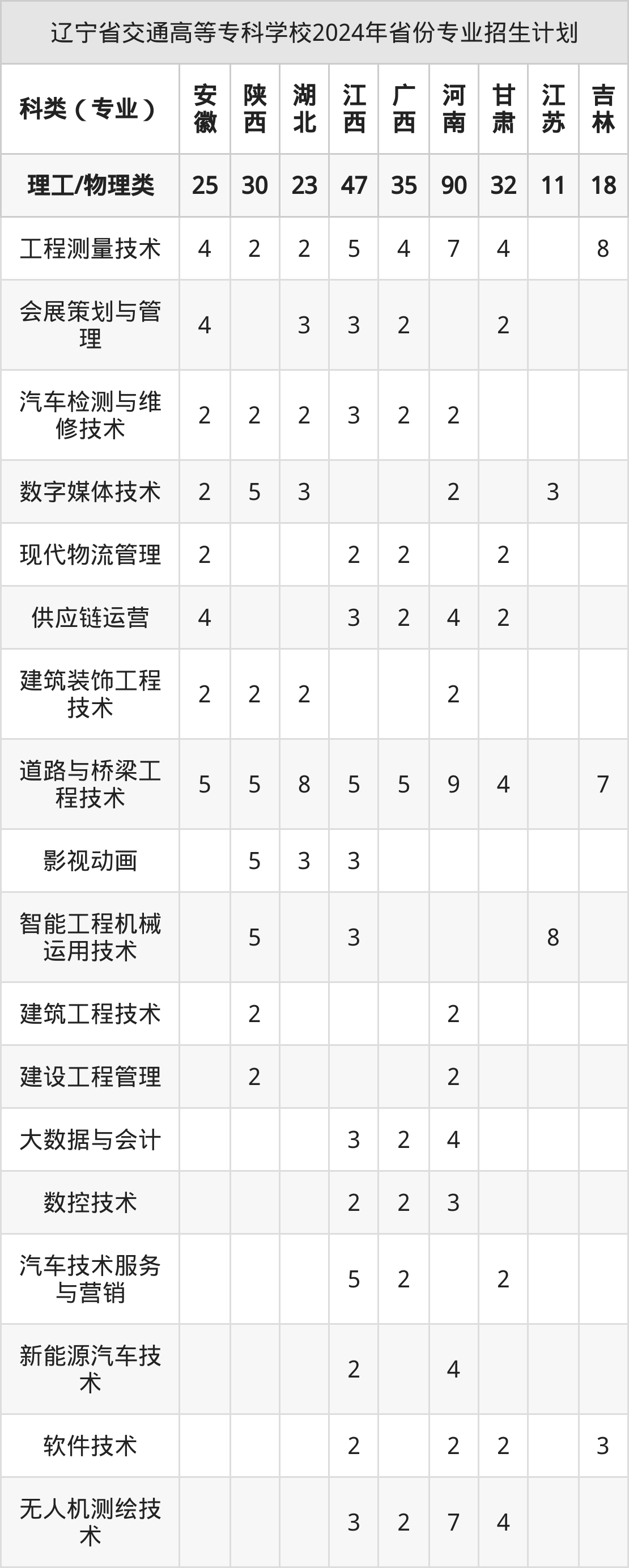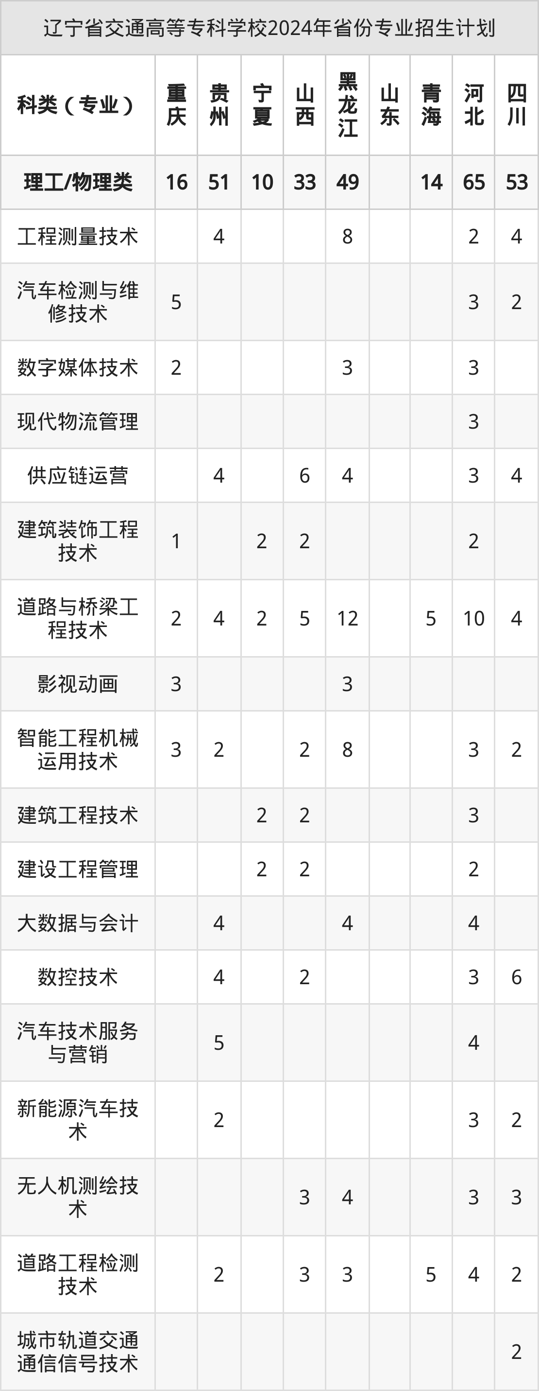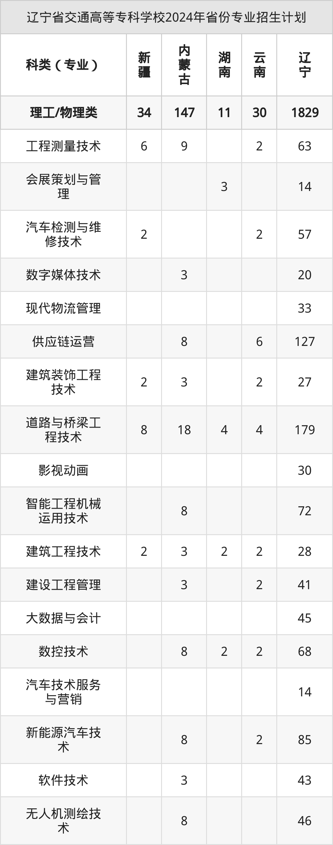 2025年辽宁省交通高等专科学校专科招生计划待公布,下面附上2024年数据,暂供参考: