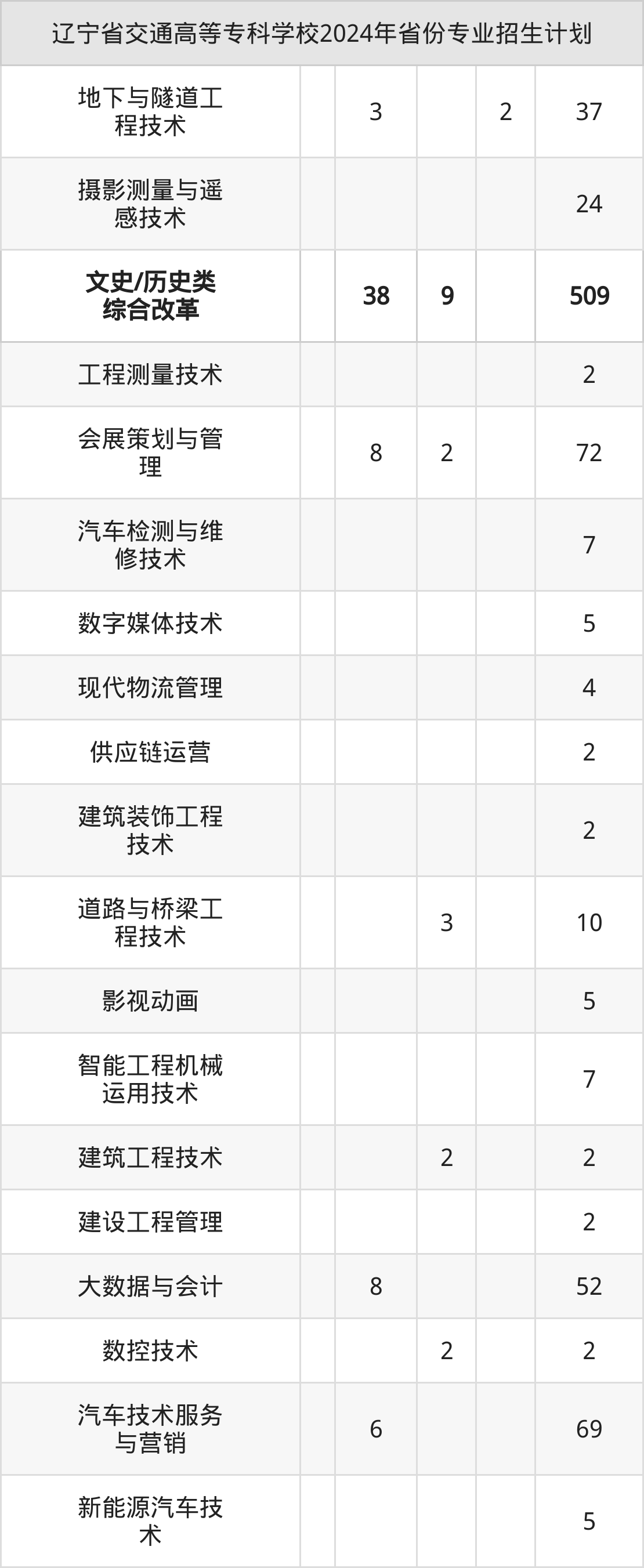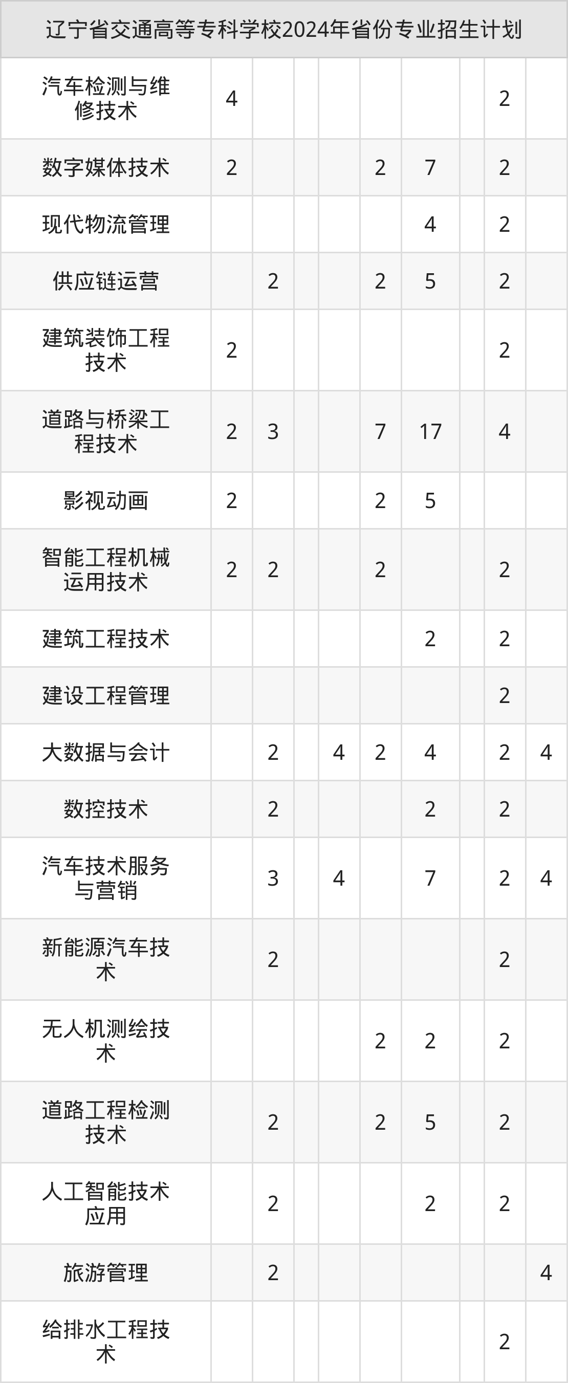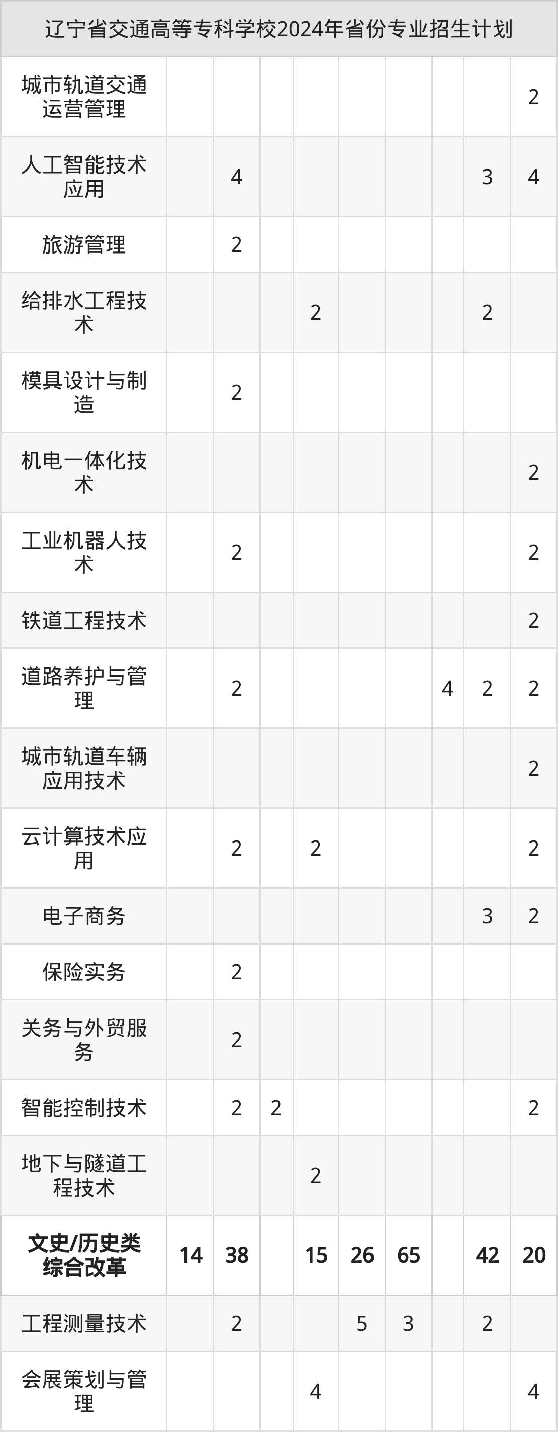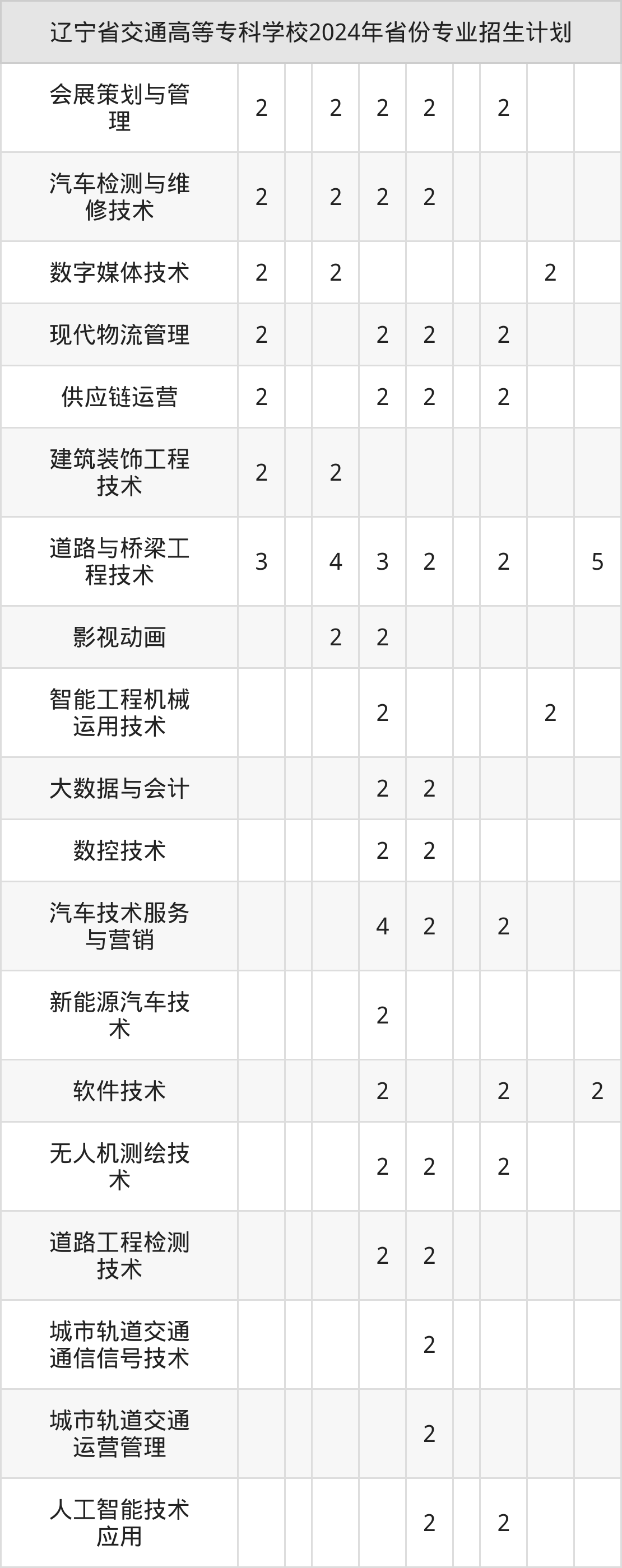 2025年辽宁省交通高等专科学校专科招生计划待公布,下面附上2024年数据,暂供参考: