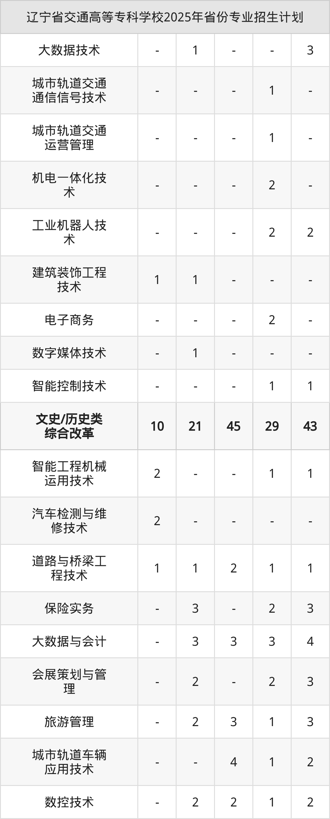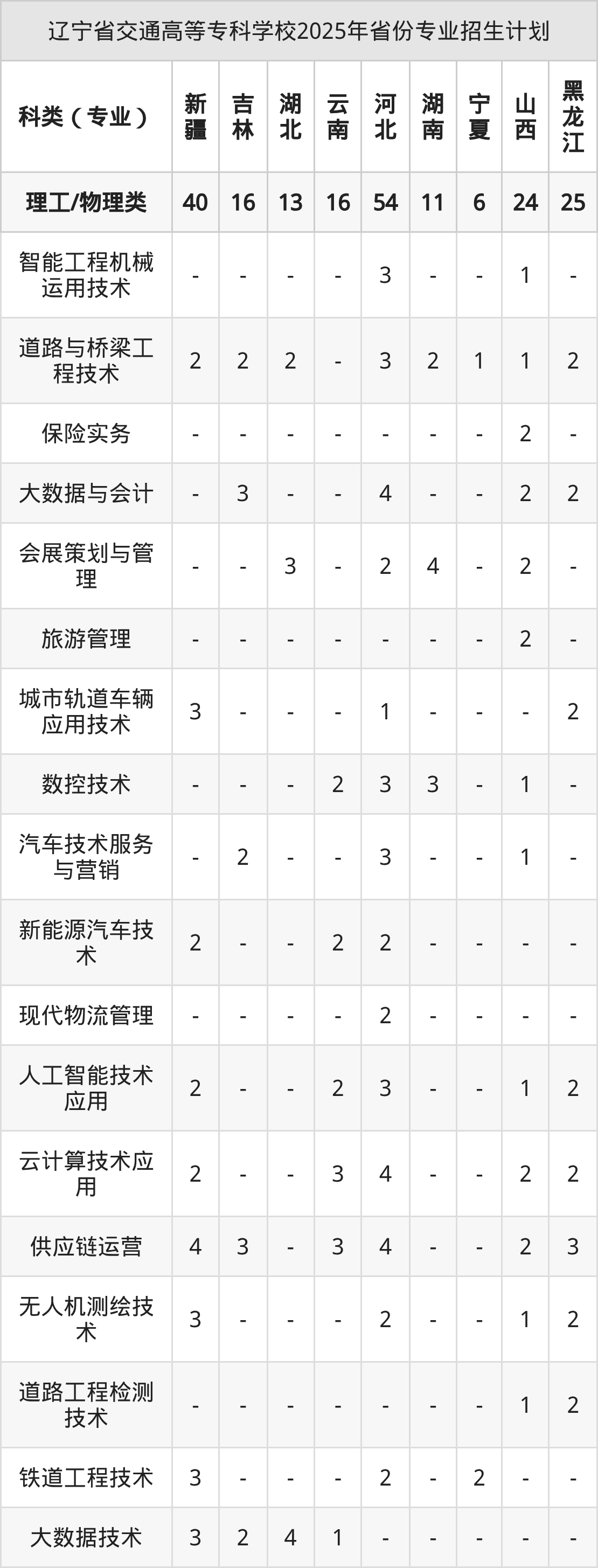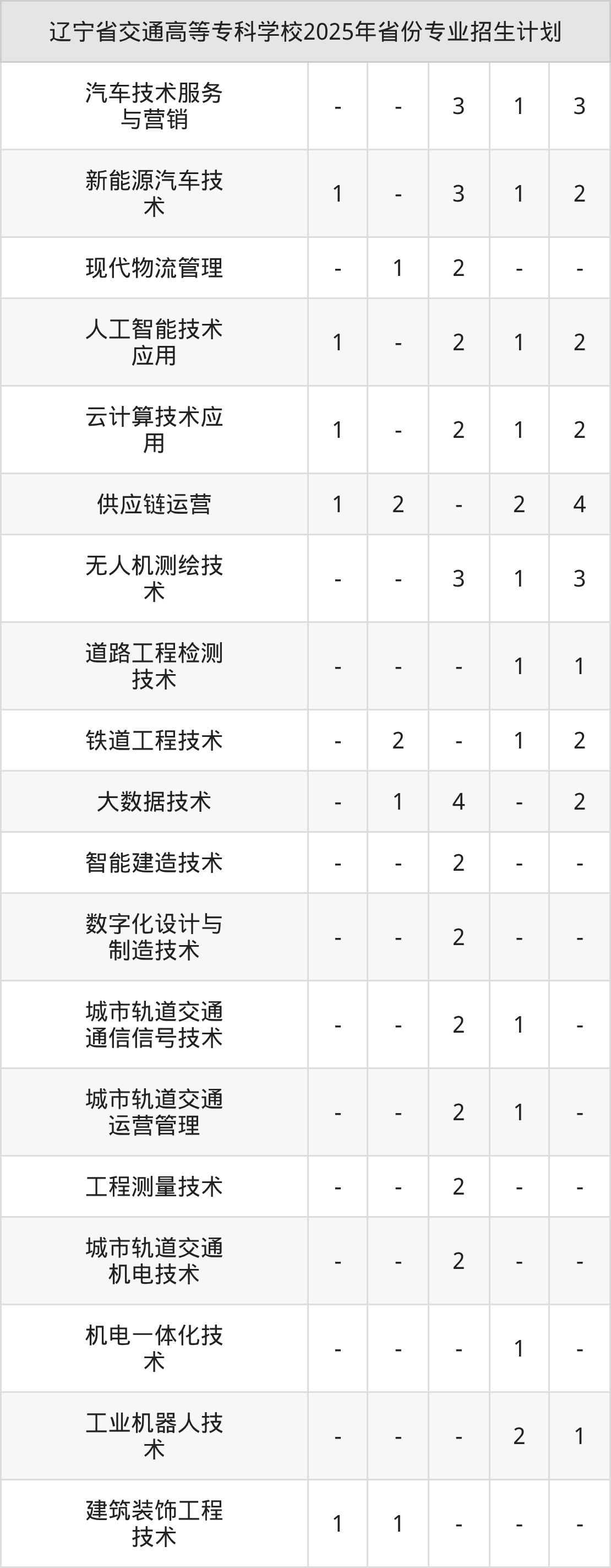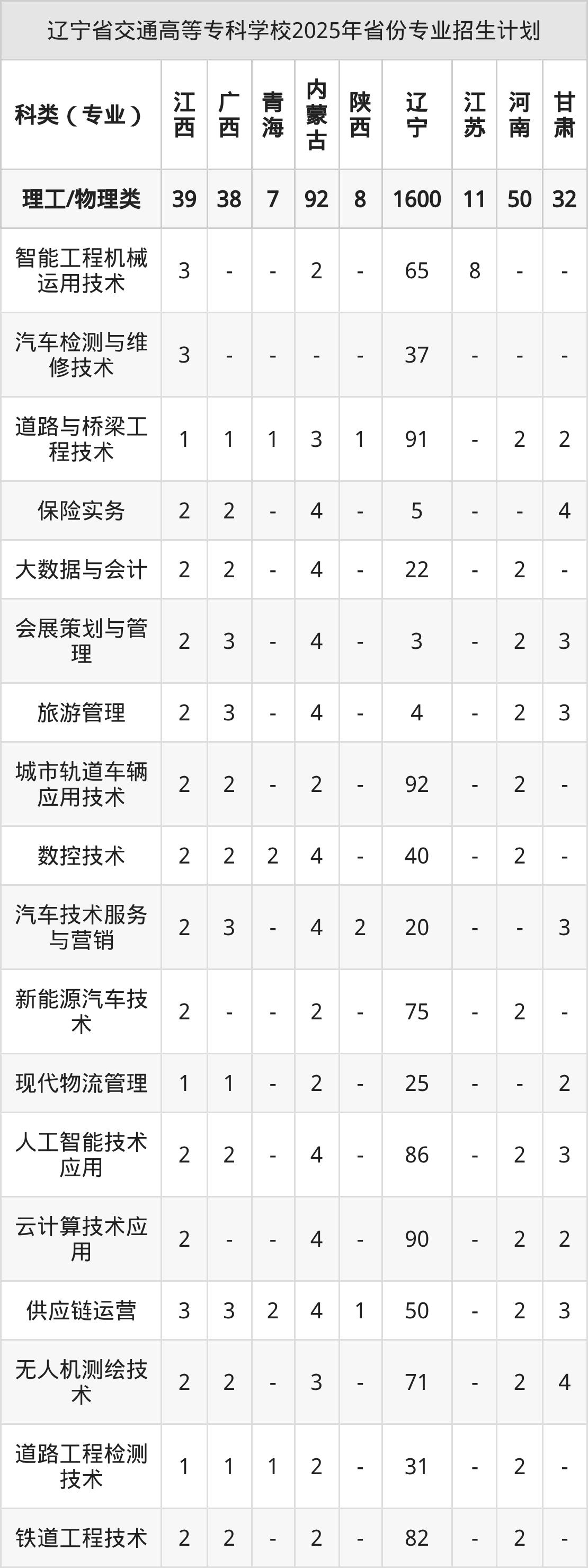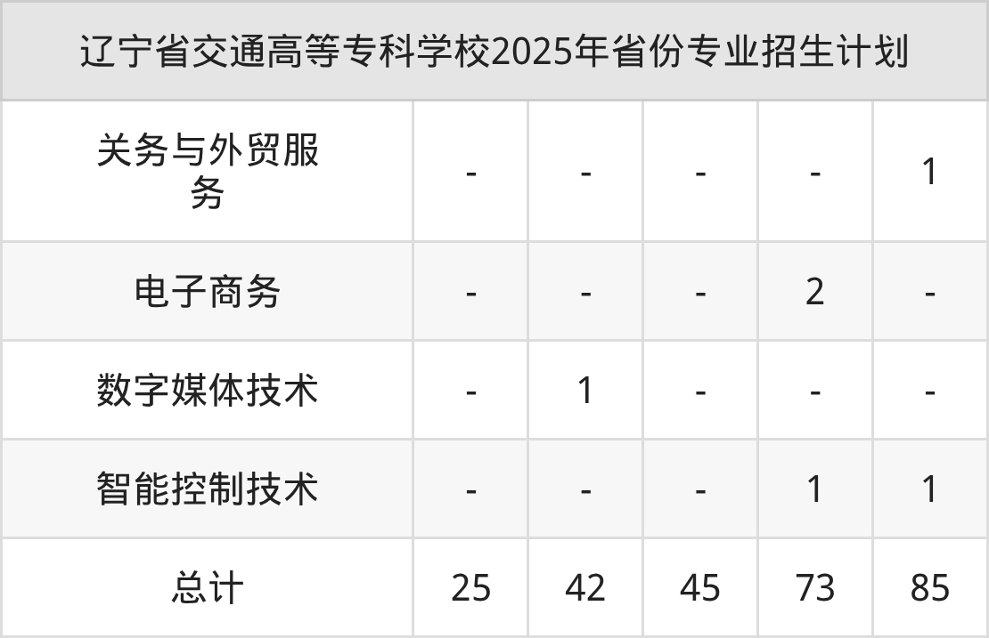 2026年辽宁省交通高等专科学校专科招生计划待公布,下面附上2025年数据,暂供参考: