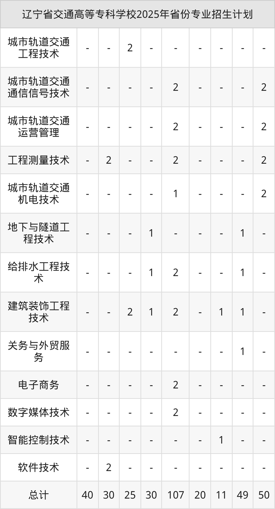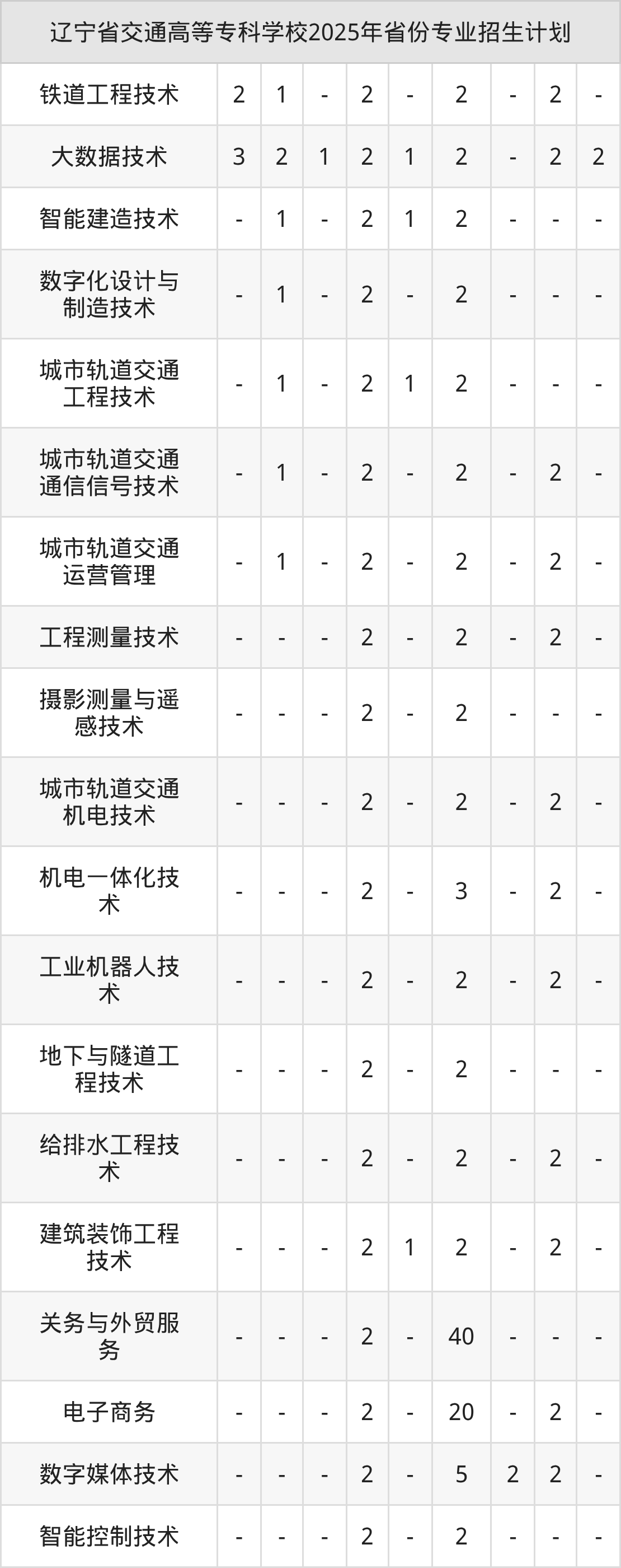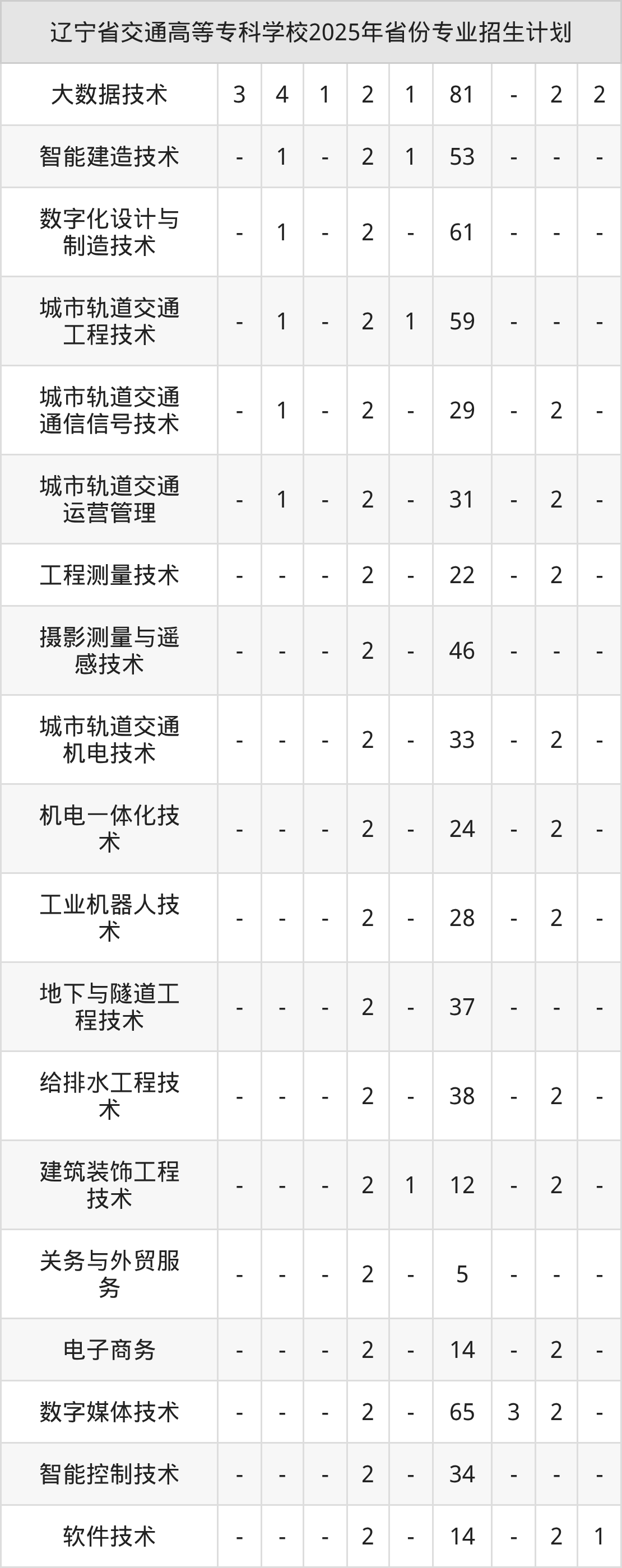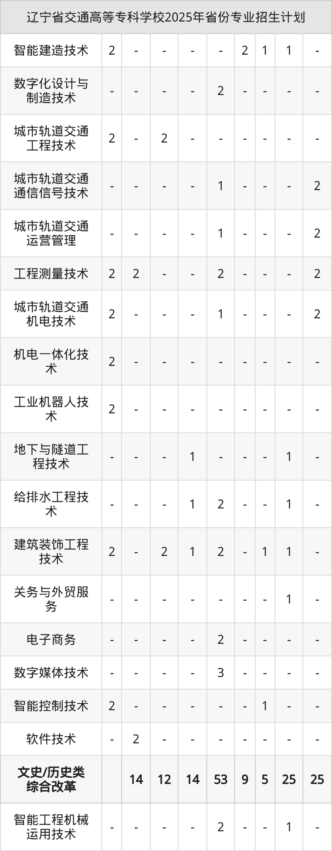 2026年辽宁省交通高等专科学校专科招生计划待公布,下面附上2025年数据,暂供参考:
