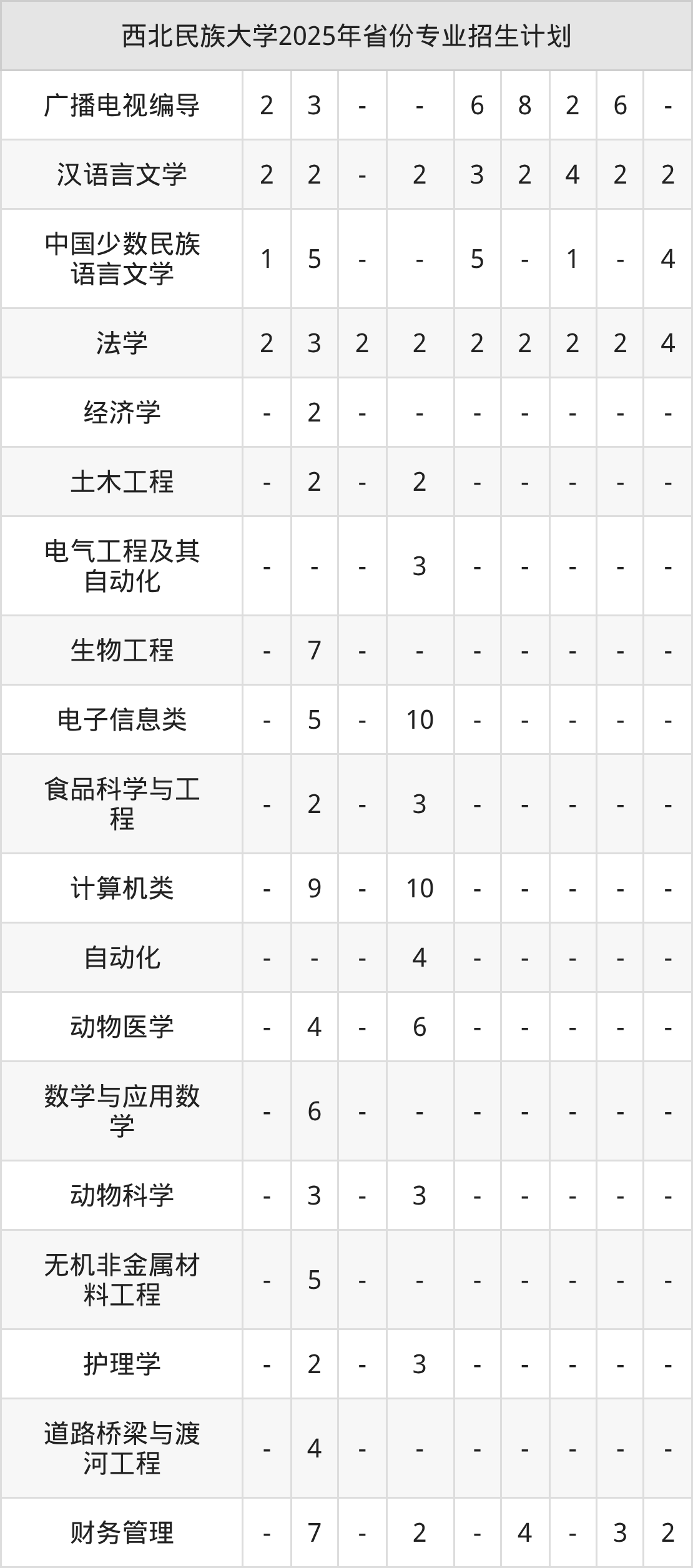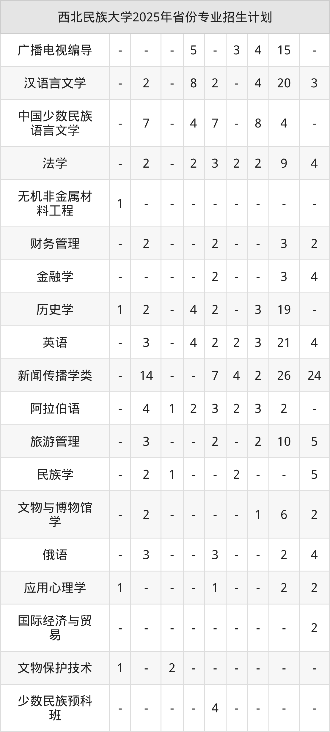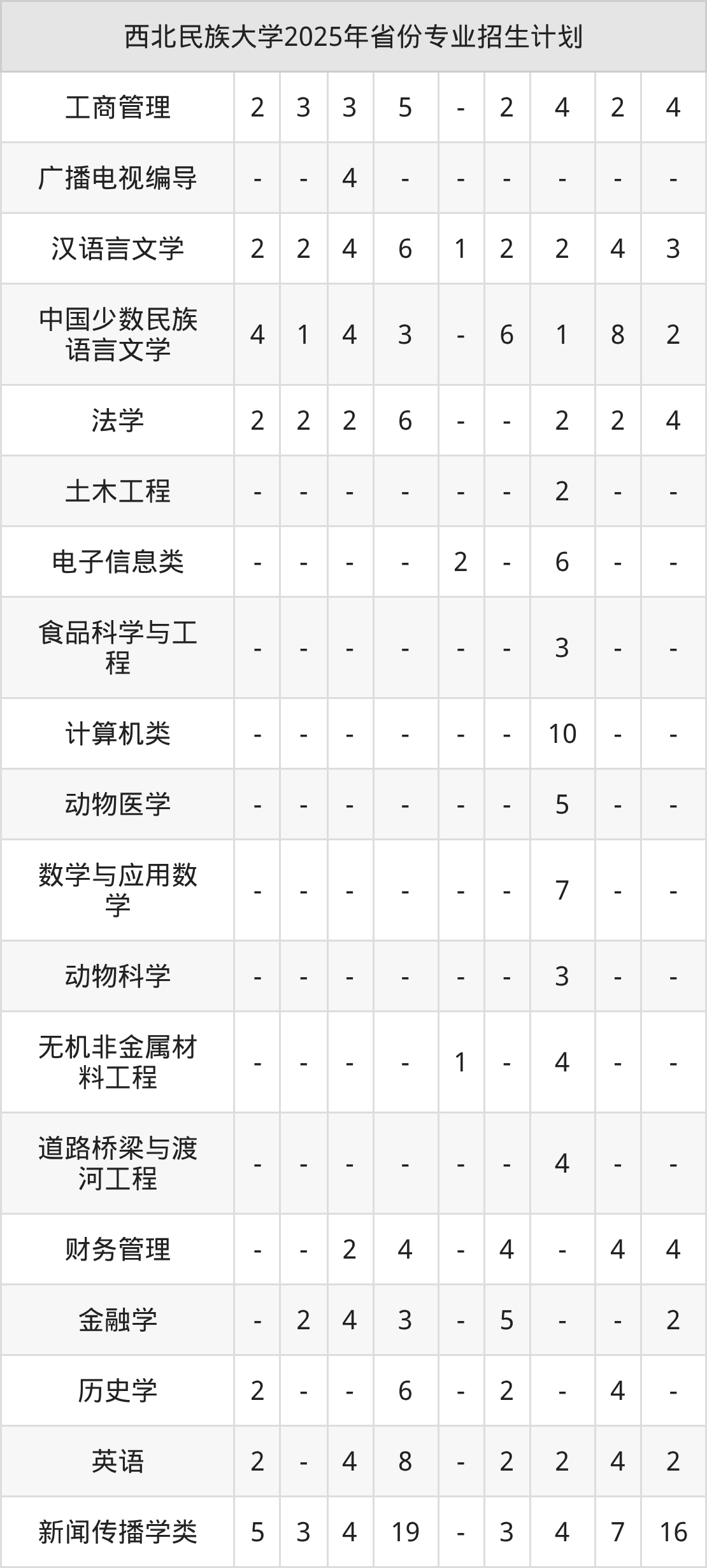 2026年西北民族大学本科招生计划待公布,下面附上2025年数据,暂供参考: