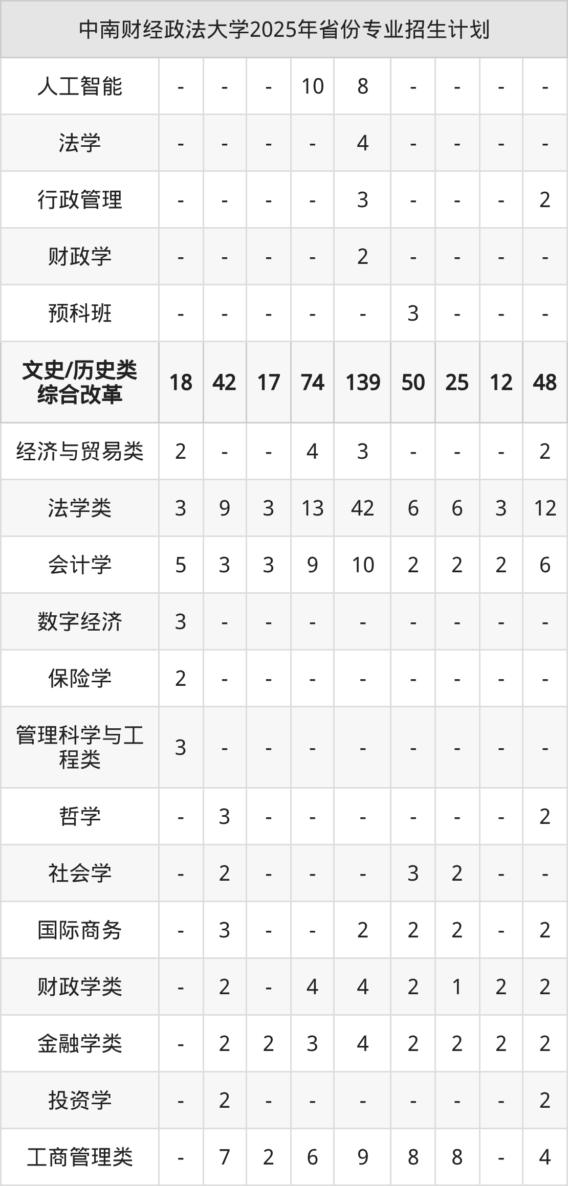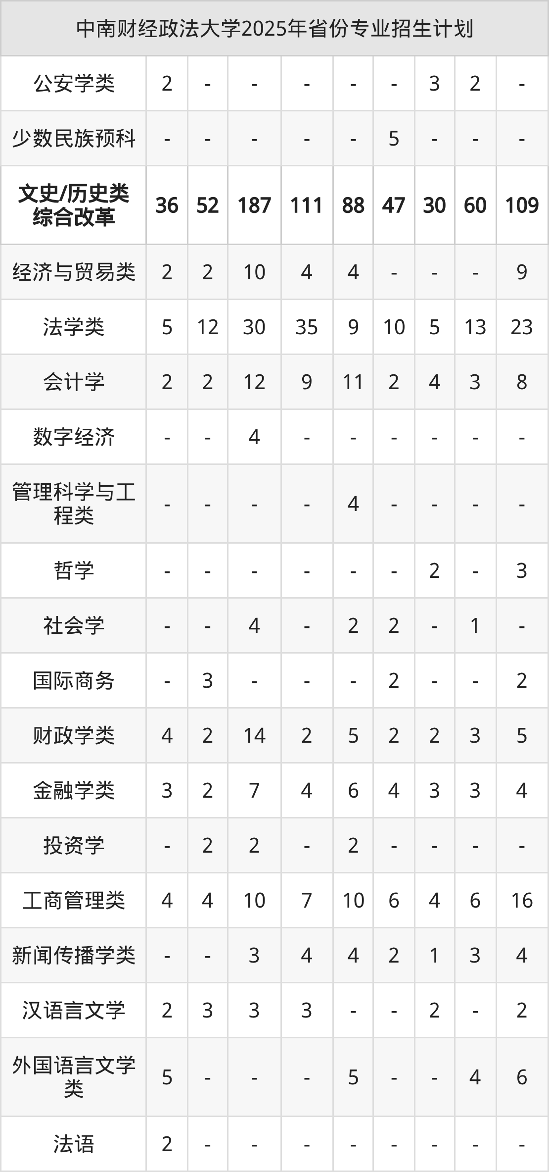 | 中南财经政法大学2025年本科最低分汇总 | ||||