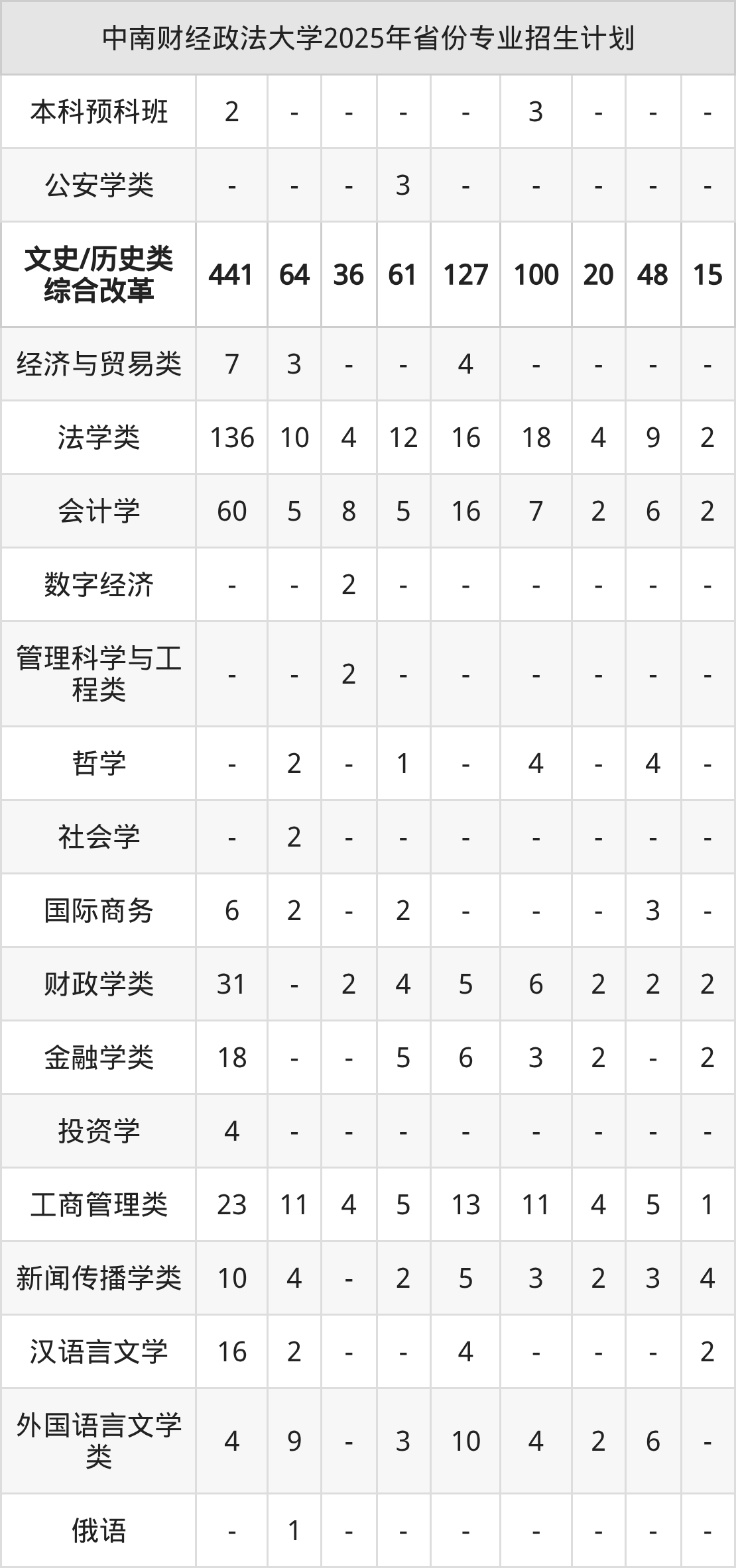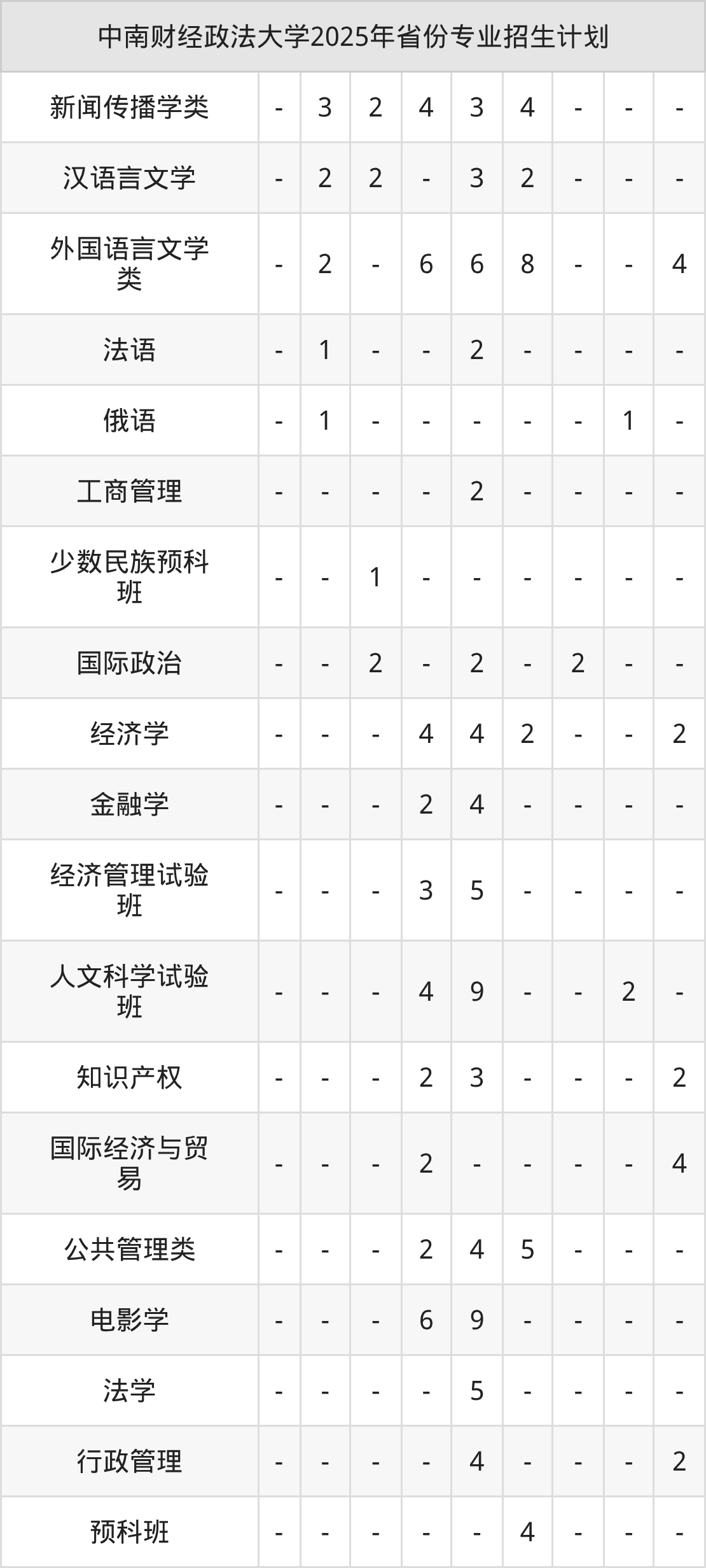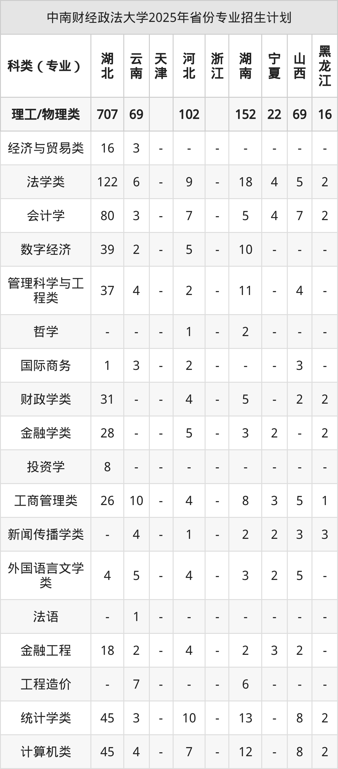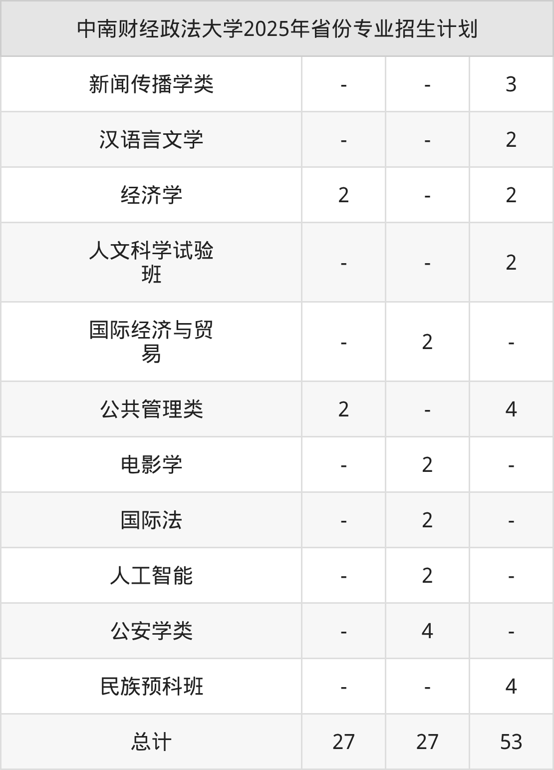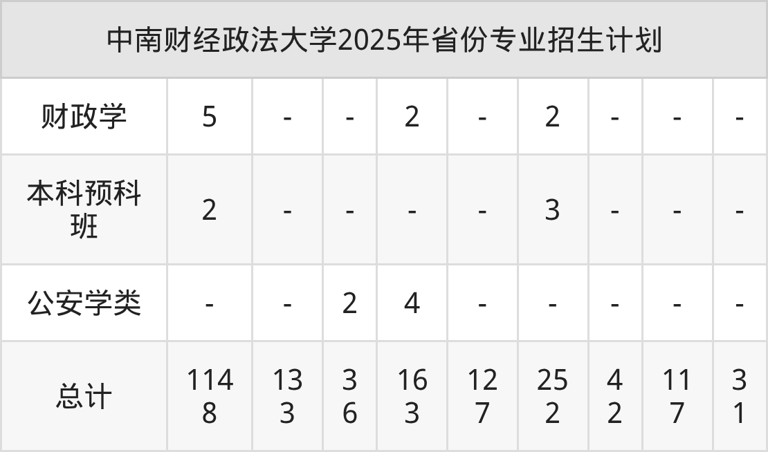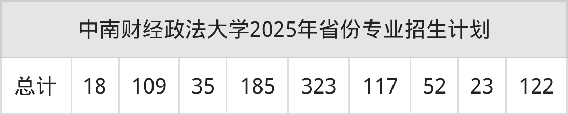 2026年中南财经政法大学本科招生计划待公布,下面附上2025年数据,暂供参考: