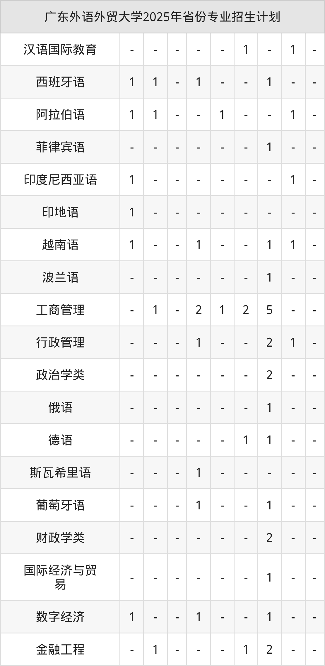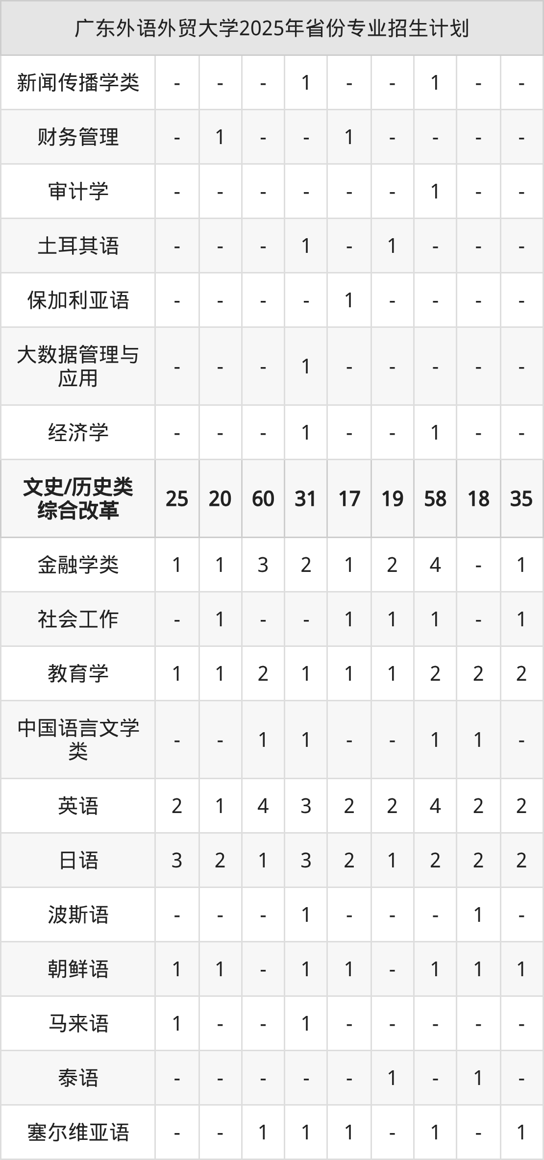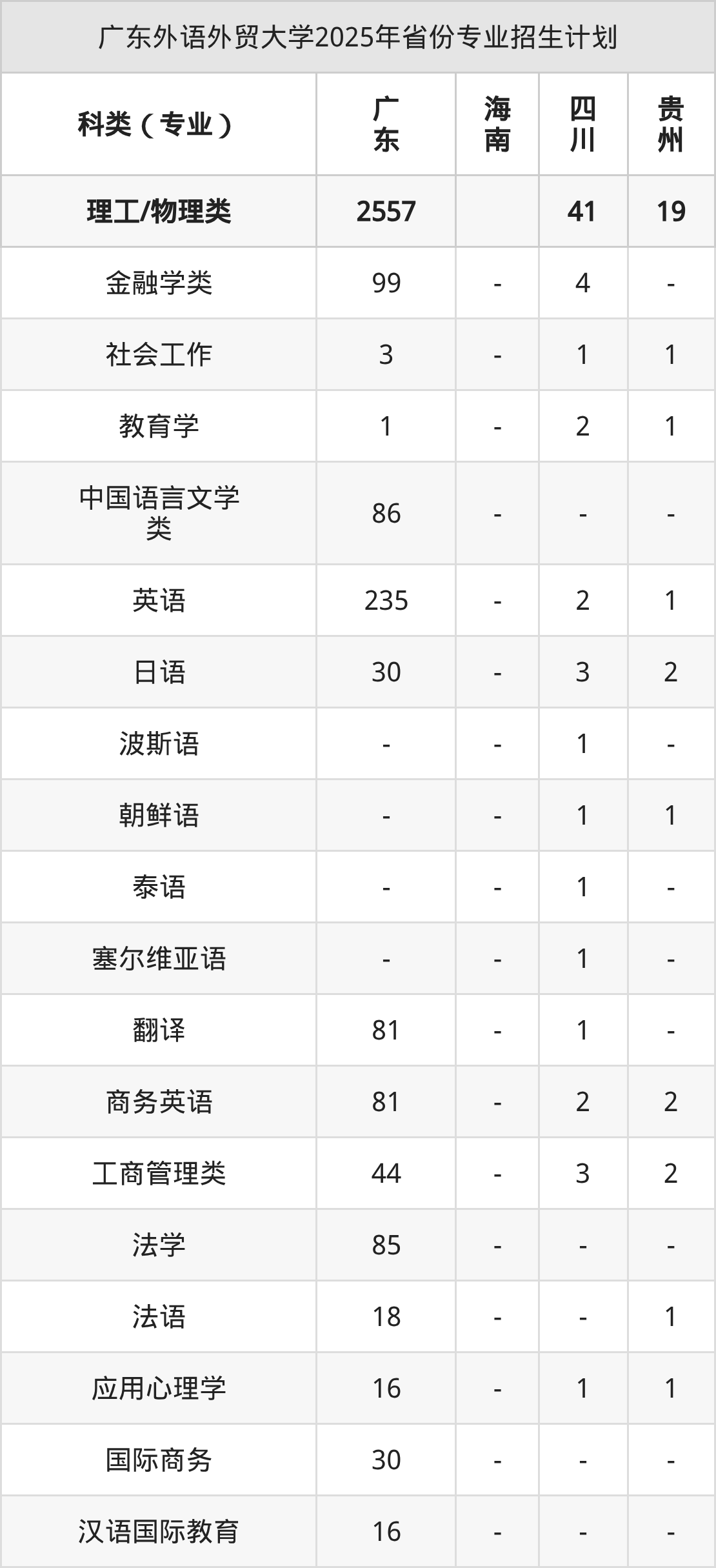 2026年广东外语外贸大学本科招生计划待公布,下面附上2025年数据,暂供参考:
