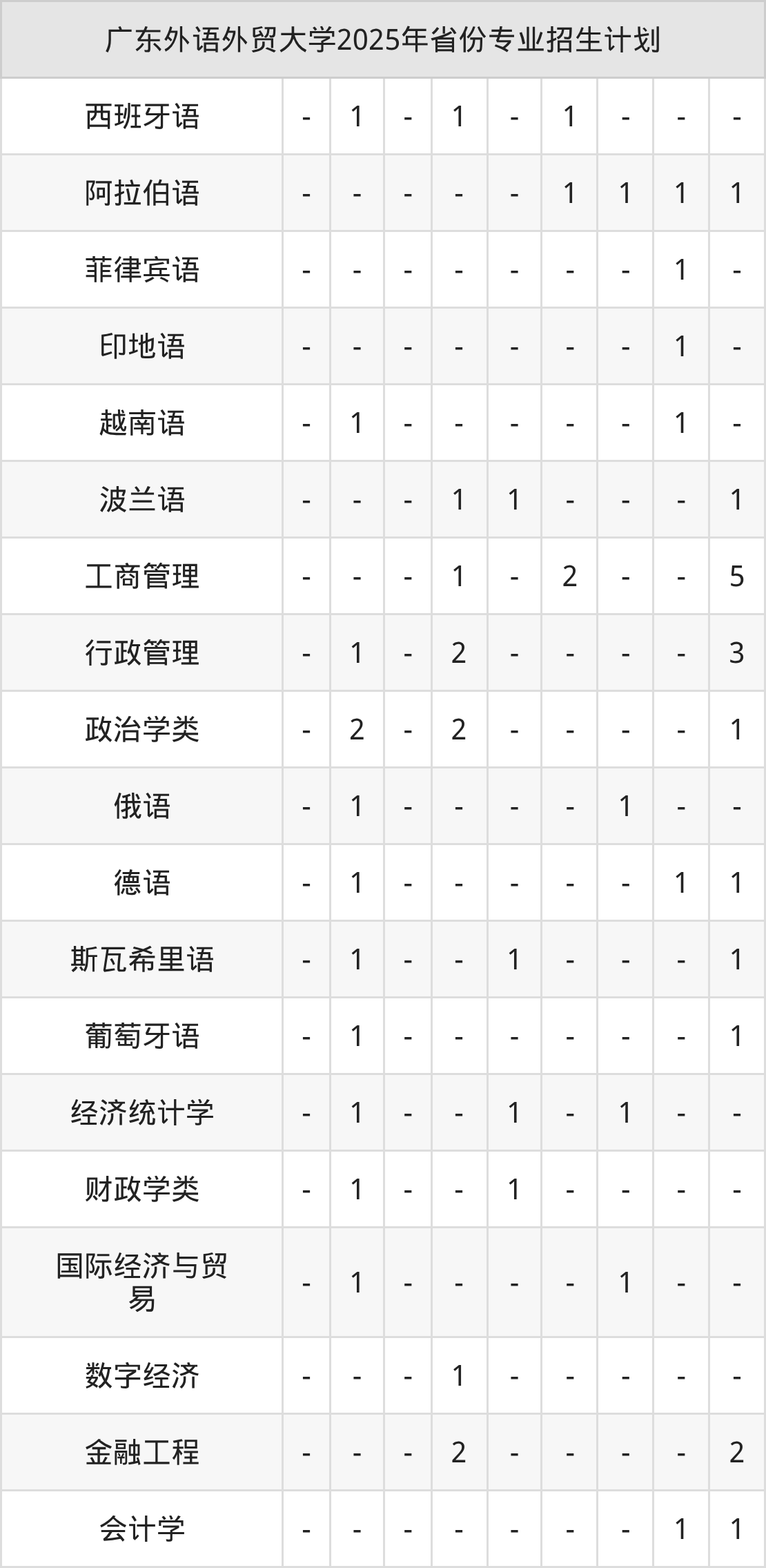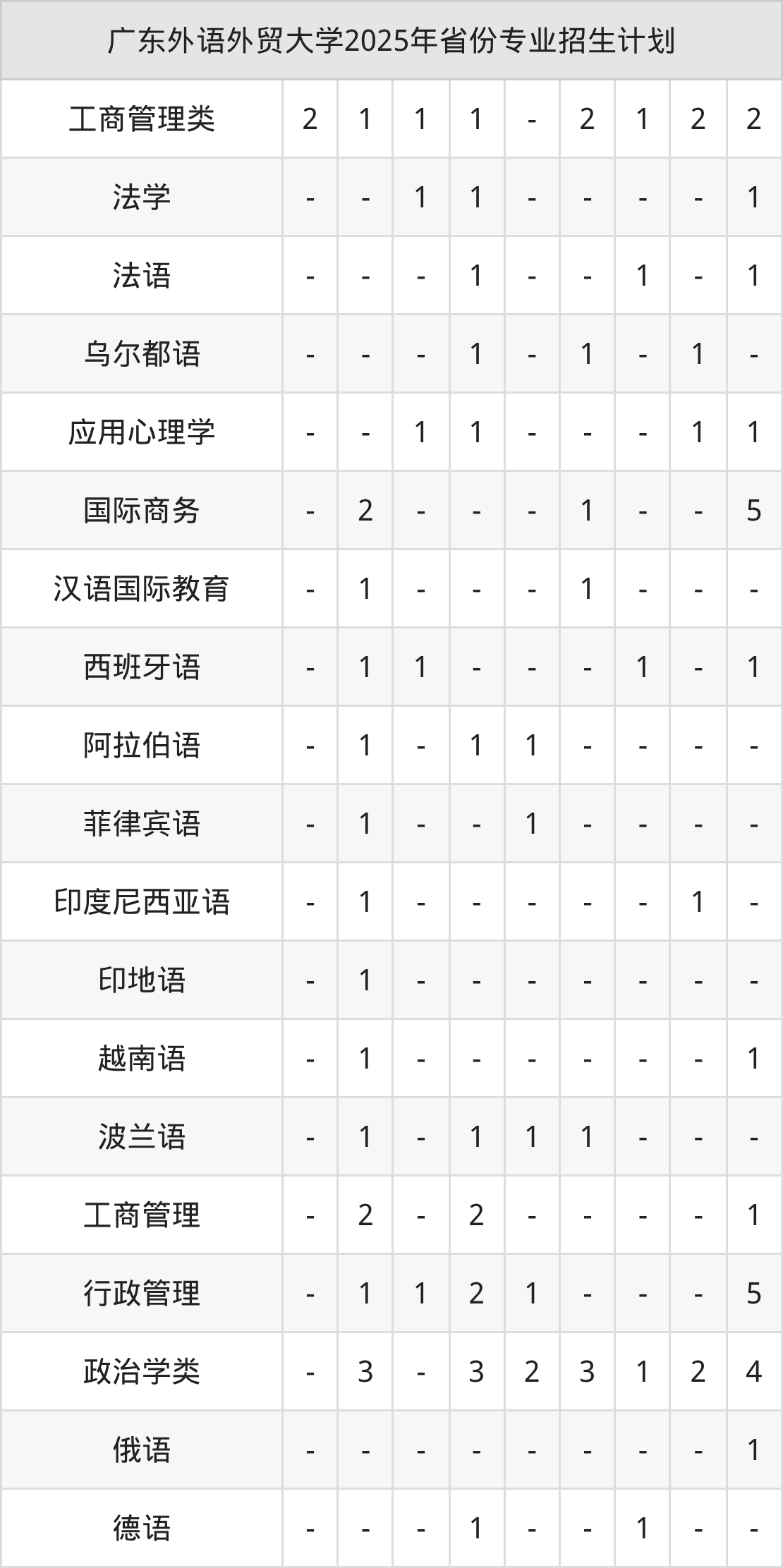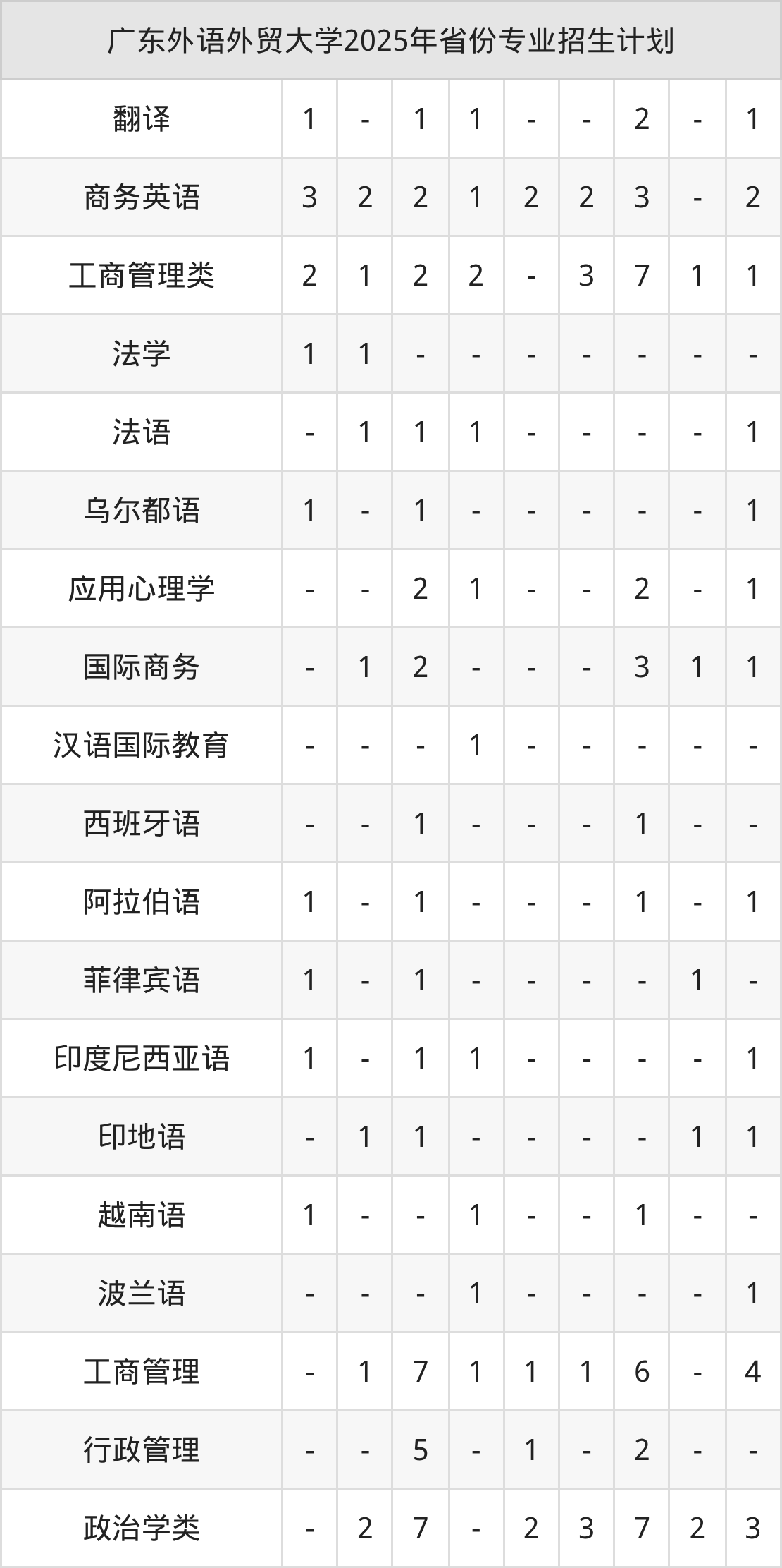2026年广东外语外贸大学本科招生计划待公布,下面附上2025年数据,暂供参考: