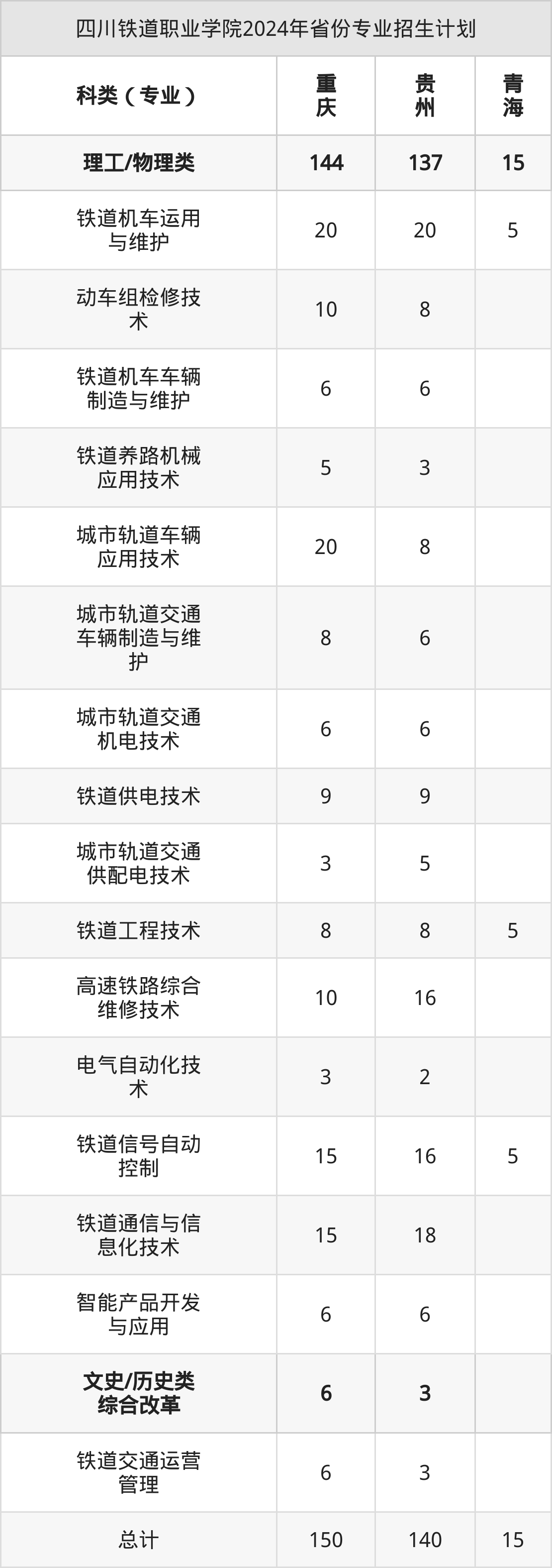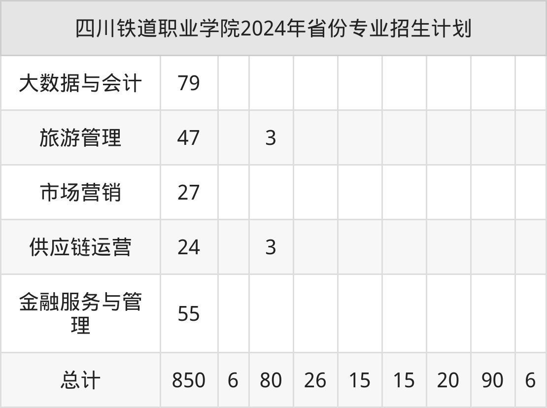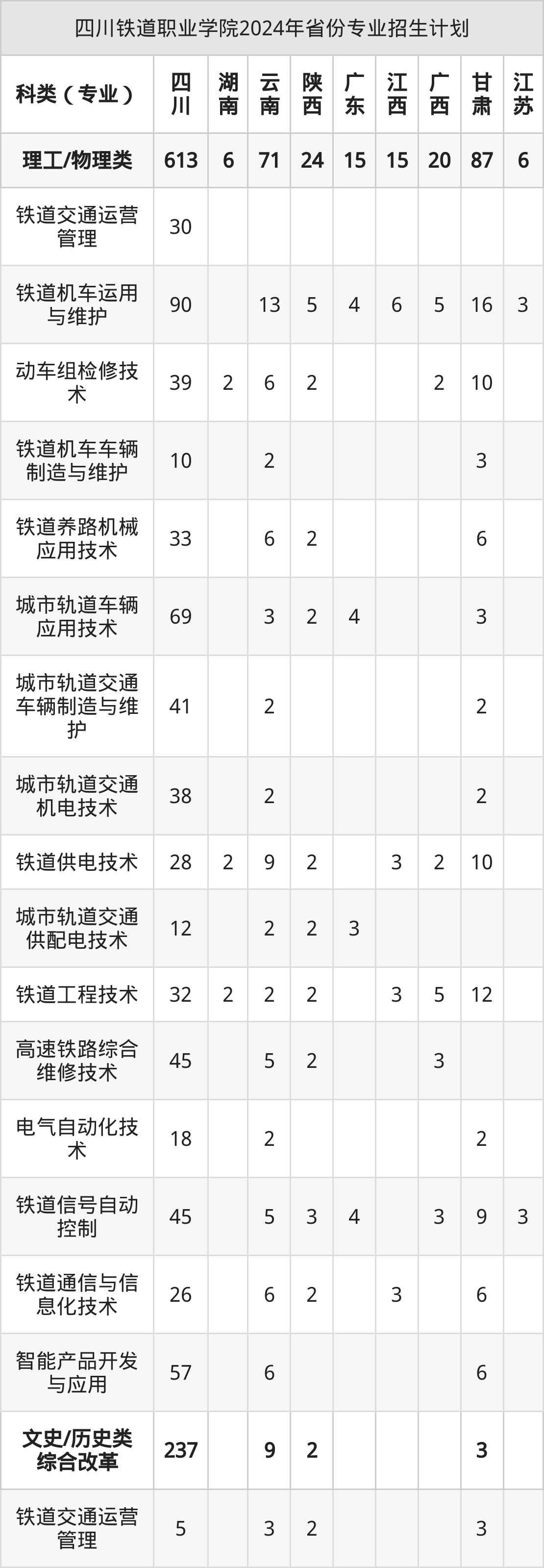 2025年四川铁道职业学院专科招生计划待公布,下面附上2024年数据,暂供参考: