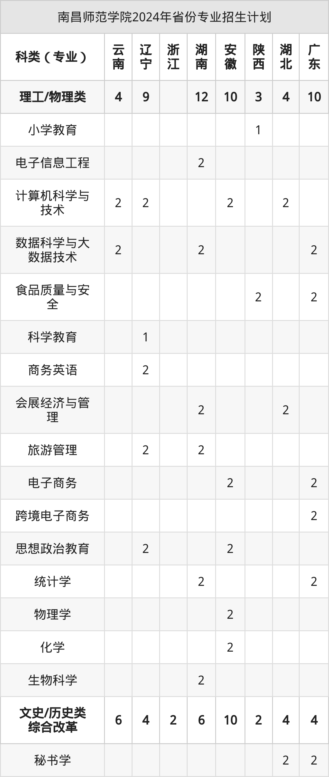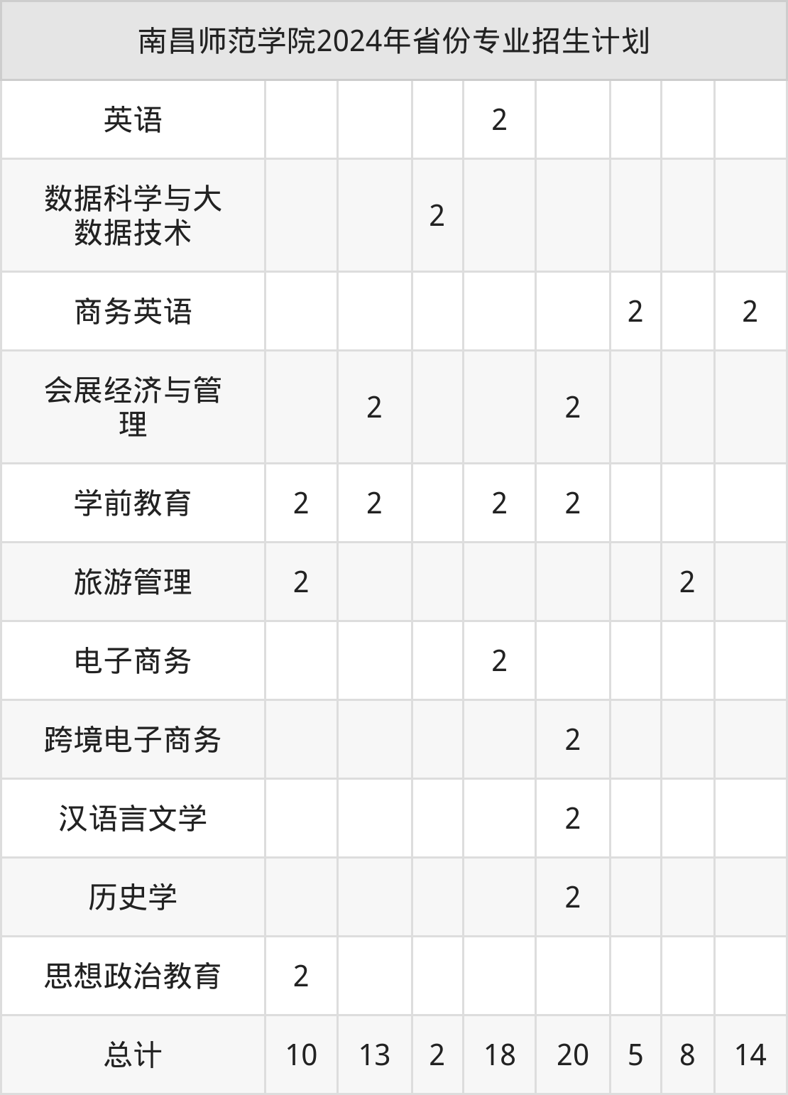 而各省份的招生计划数为浙江2人,湖南18人,安徽20人,湖北8人,广东14人等。
