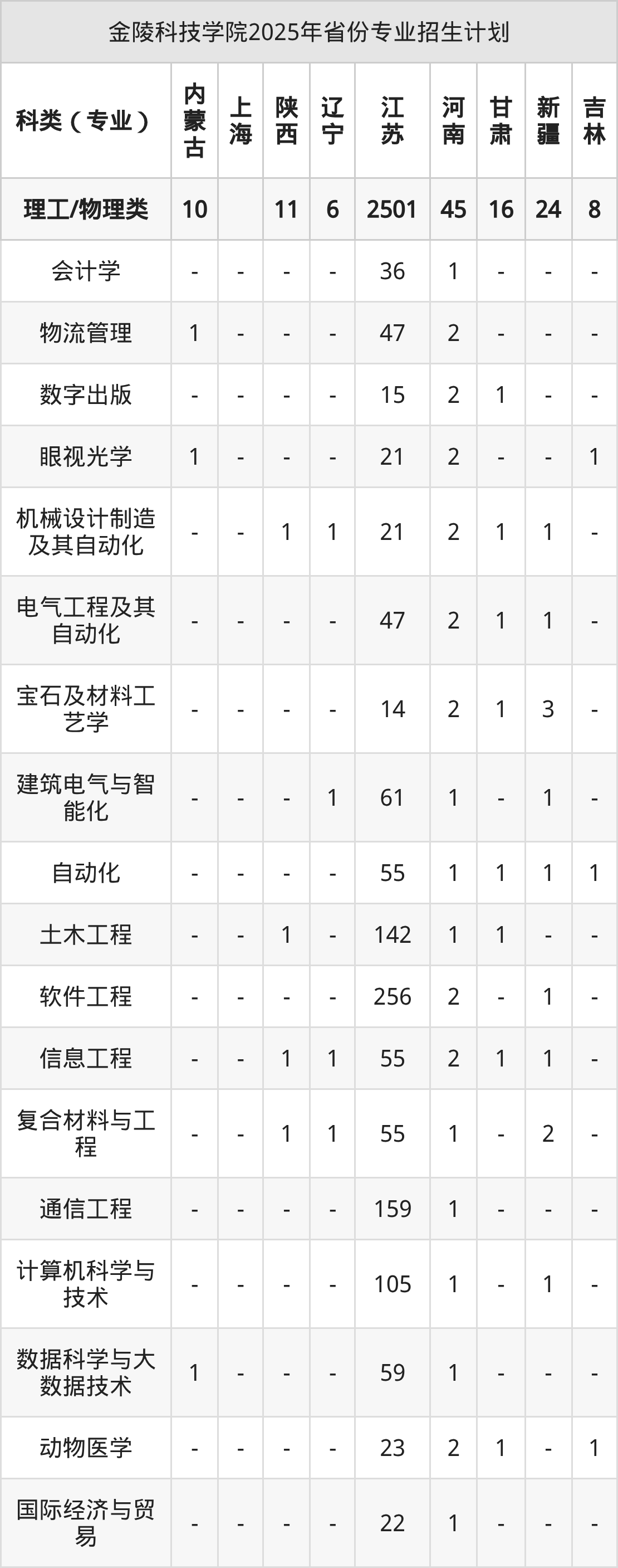 2026年金陵科技学院本科招生计划待公布,下面附上2025年数据,暂供参考: