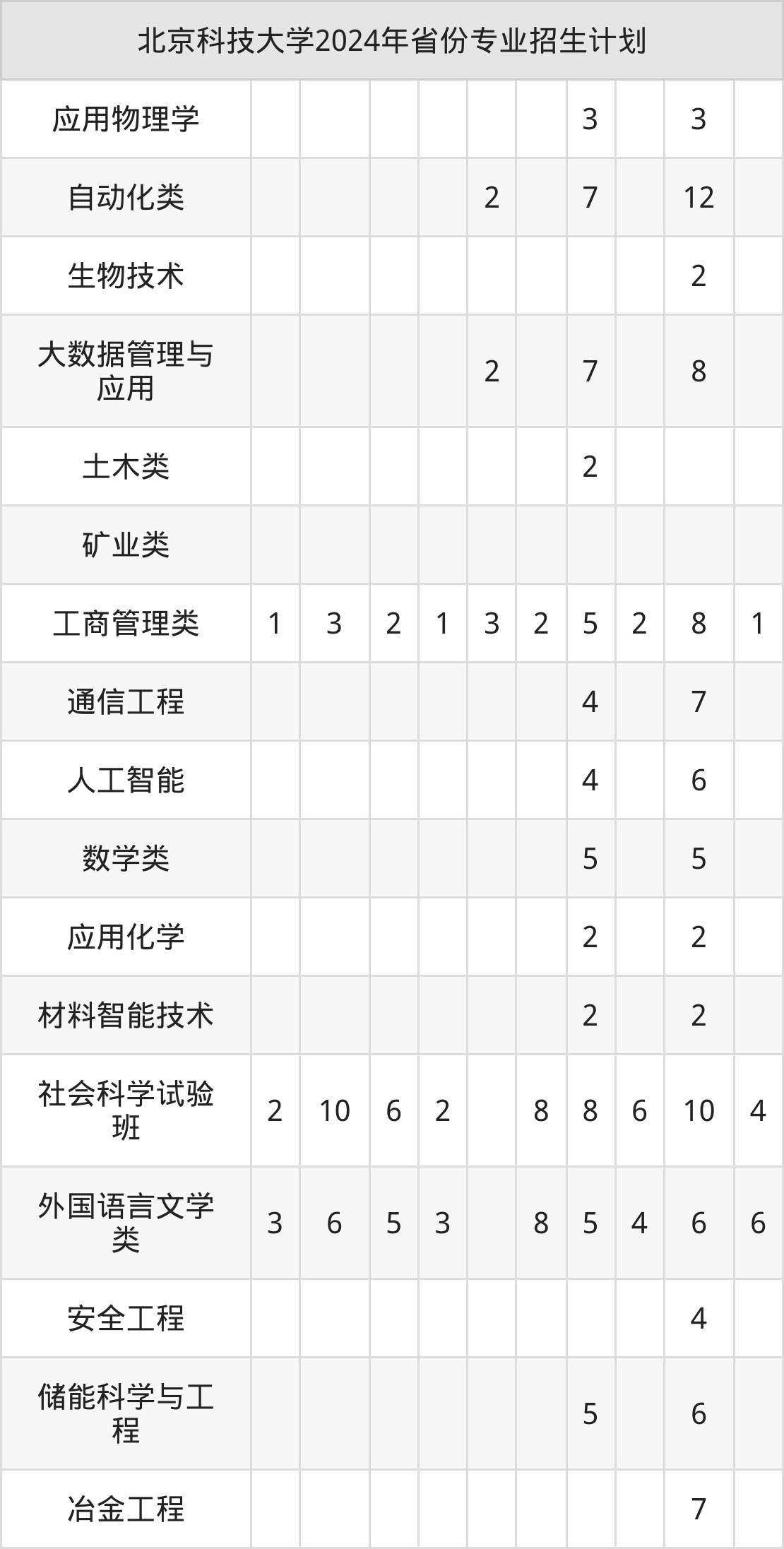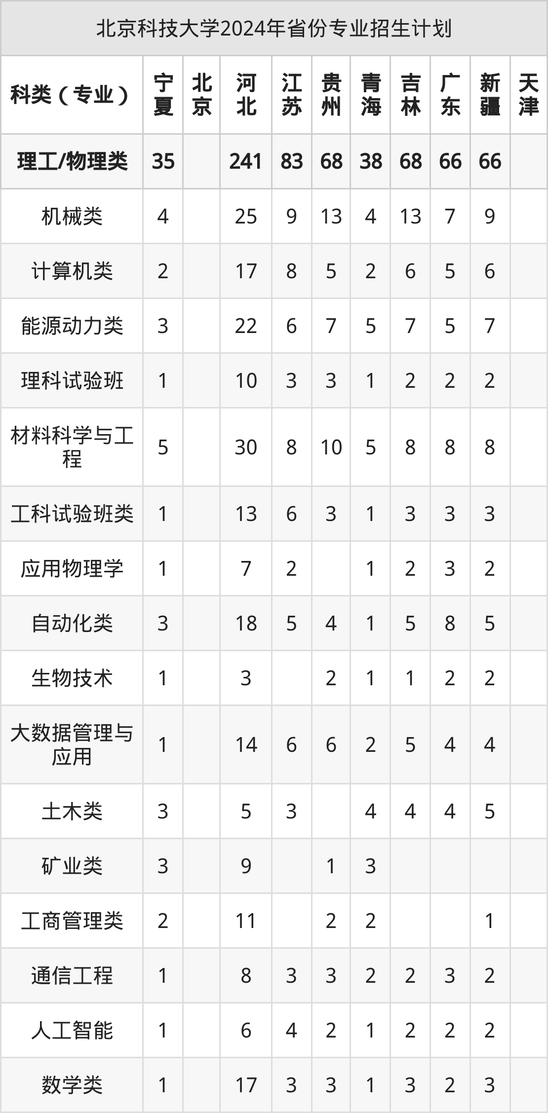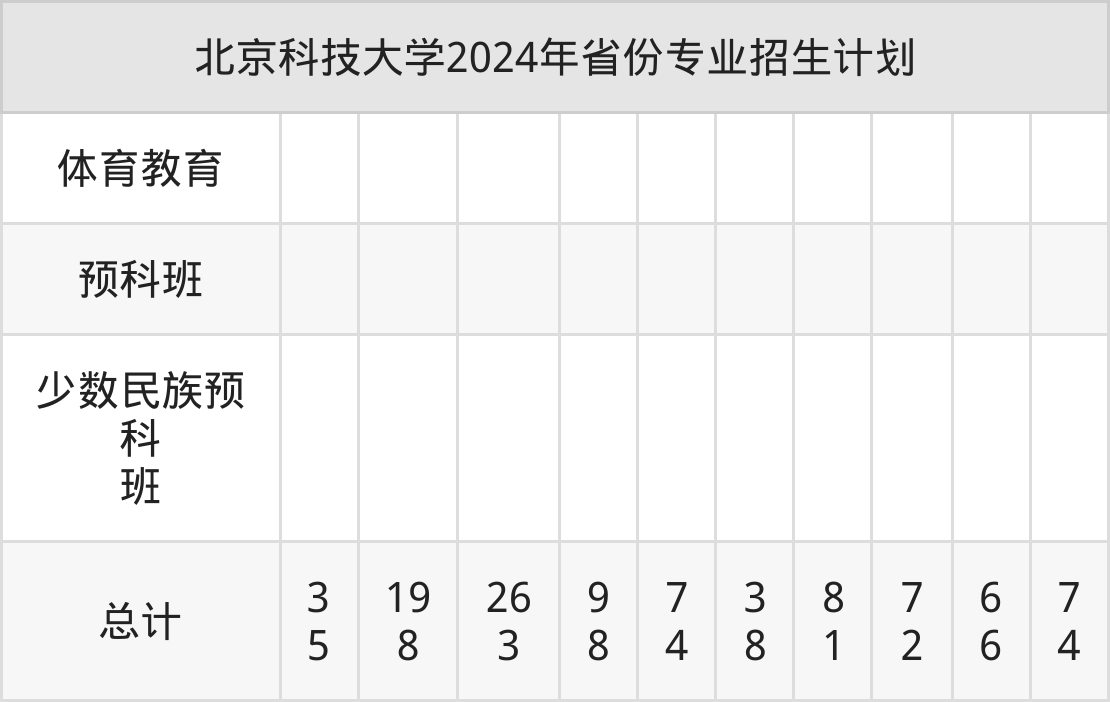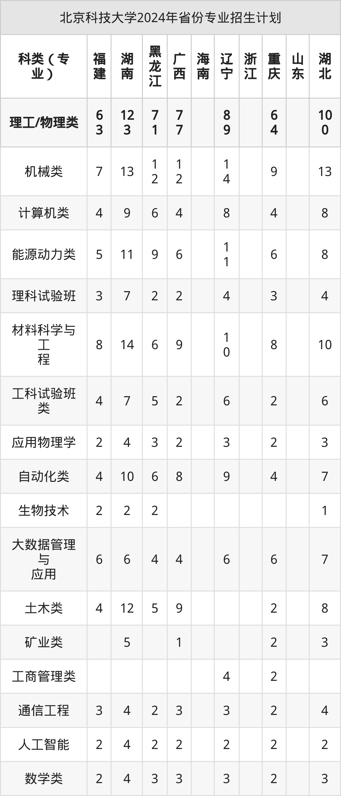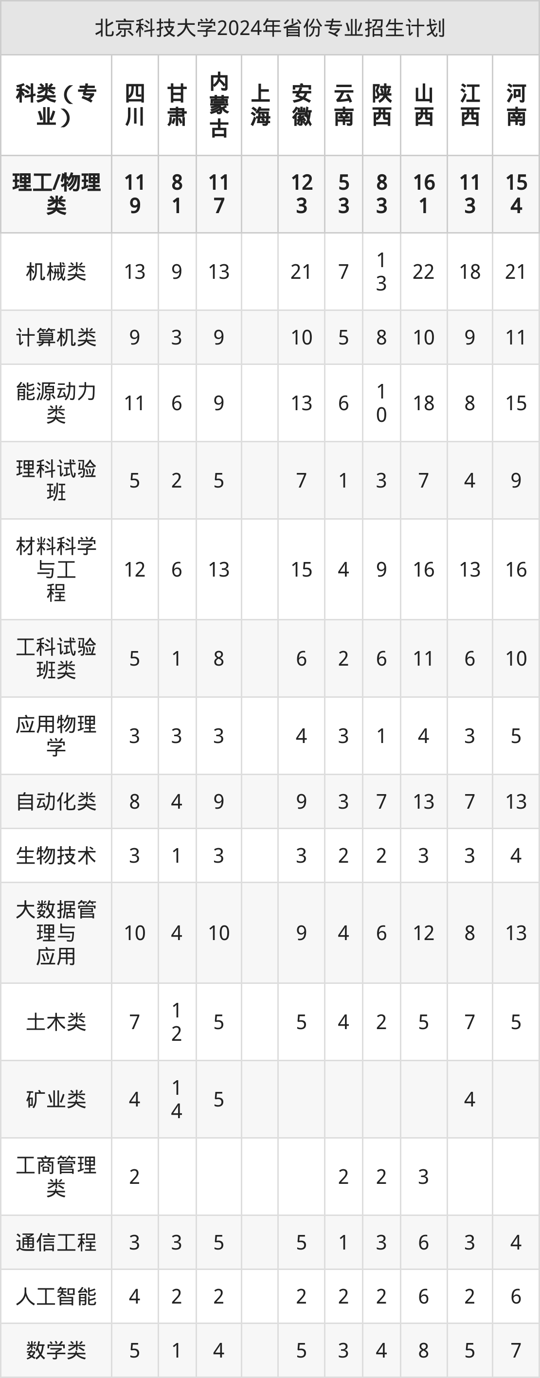 2025年北京科技大学本科招生计划待公布,下面附上2024年数据,暂供参考: