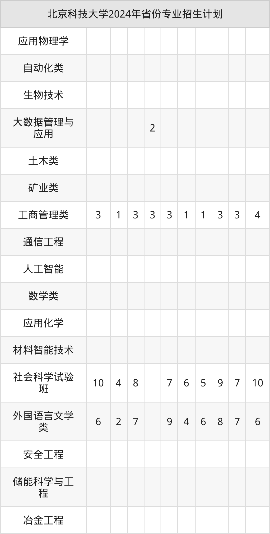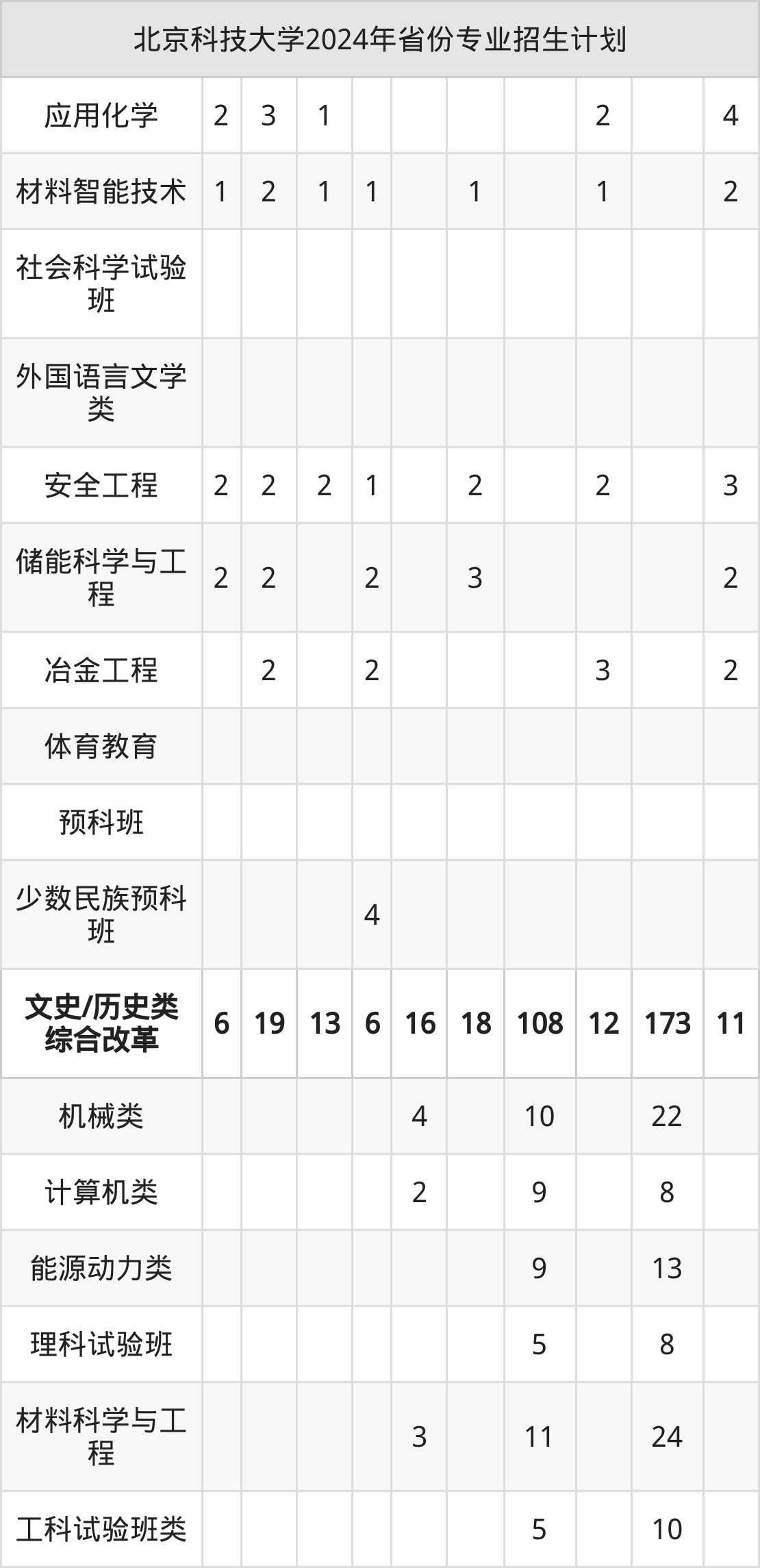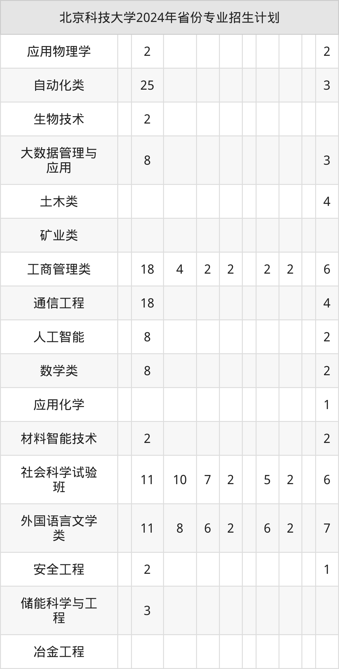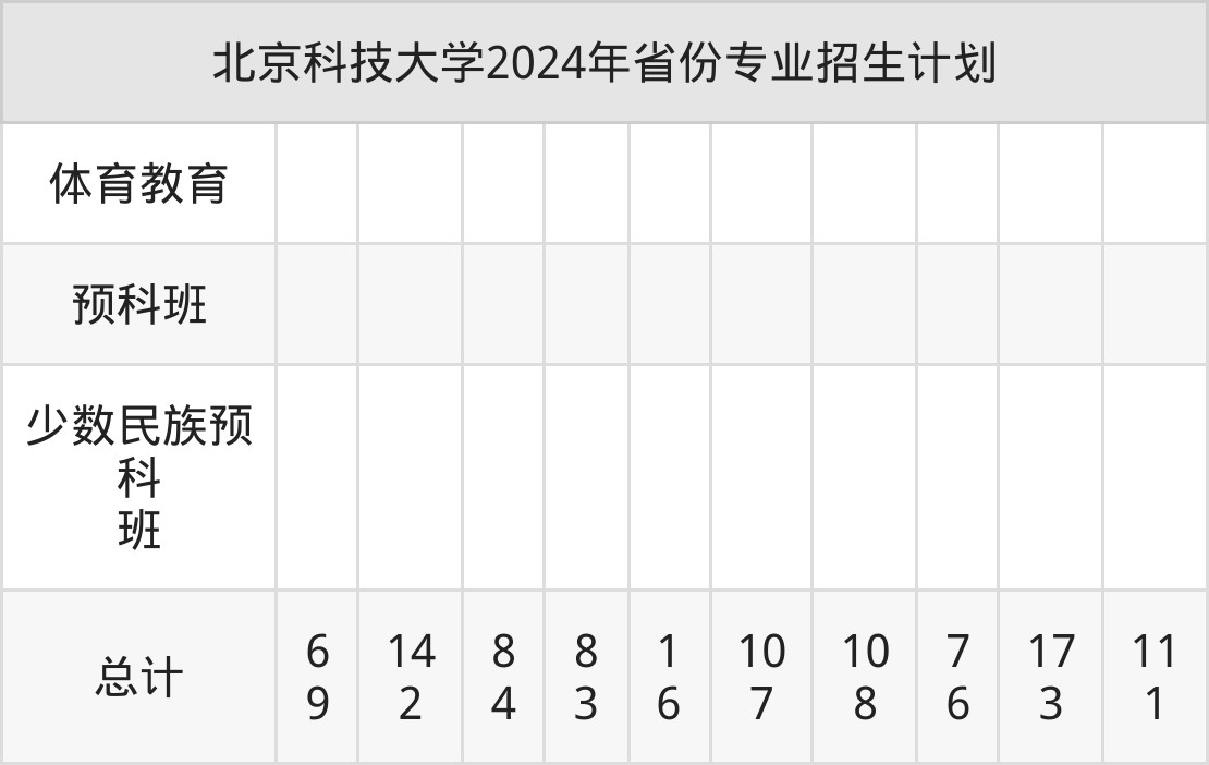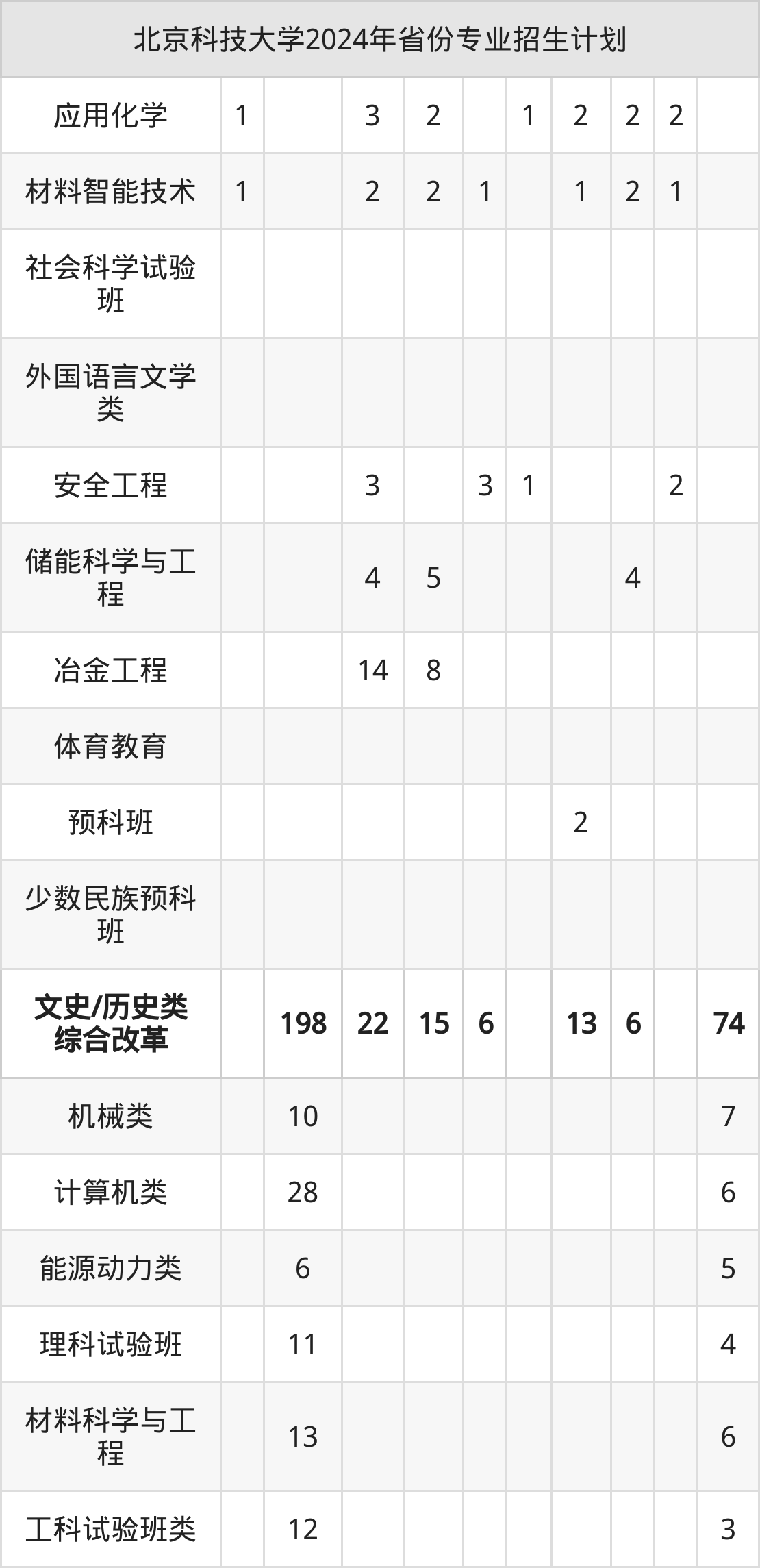2025年北京科技大学本科招生计划待公布,下面附上2024年数据,暂供参考: