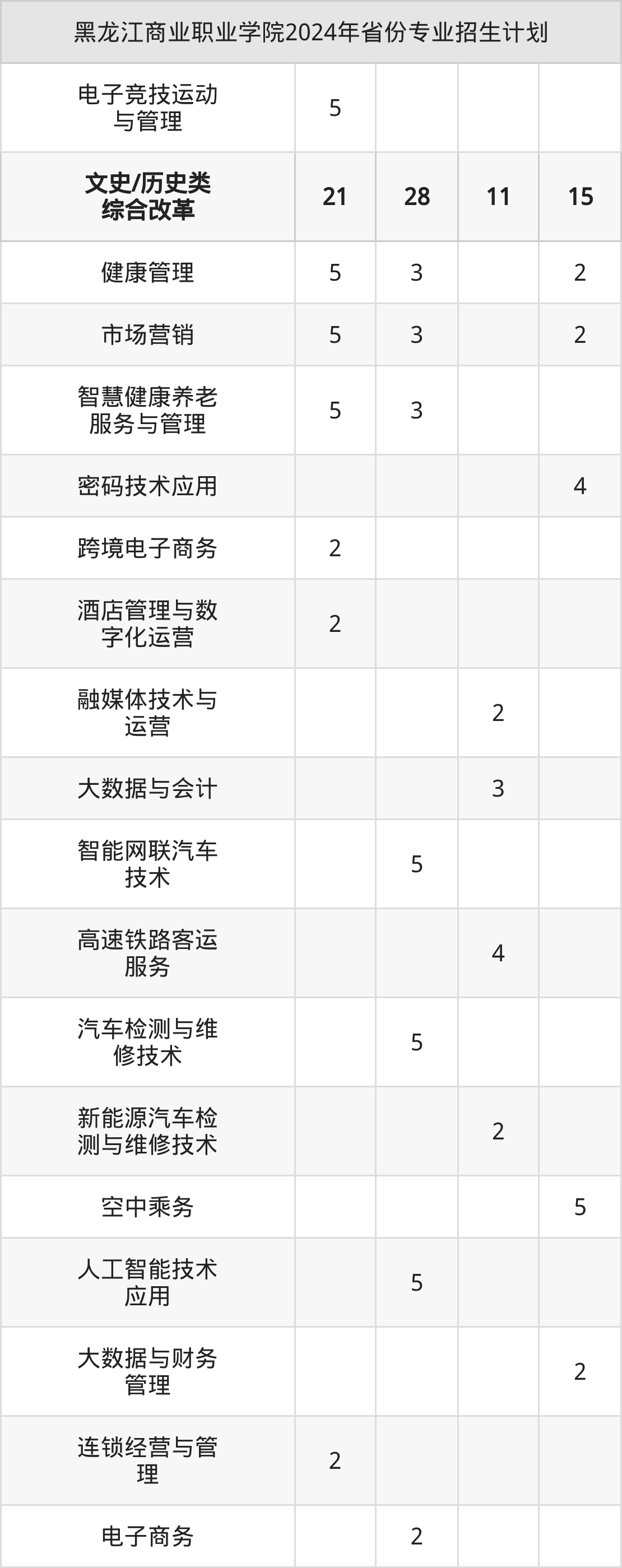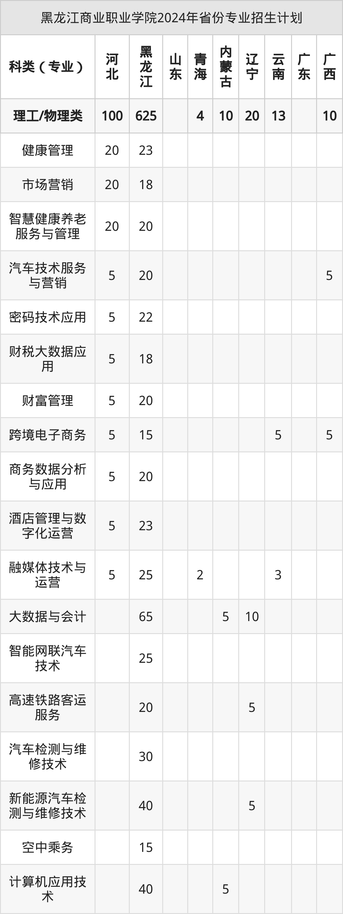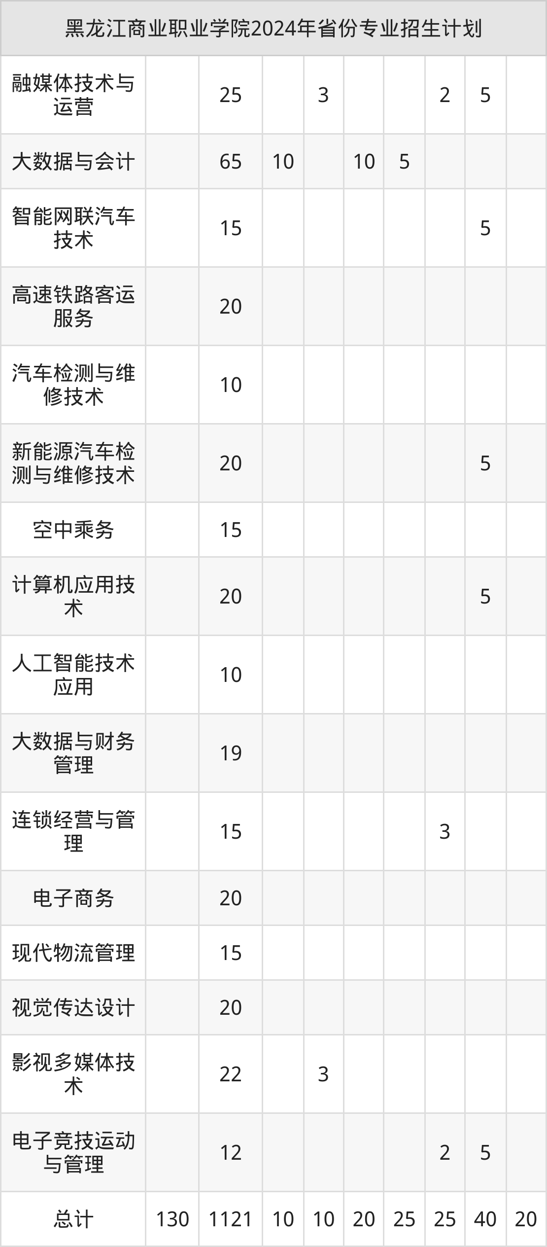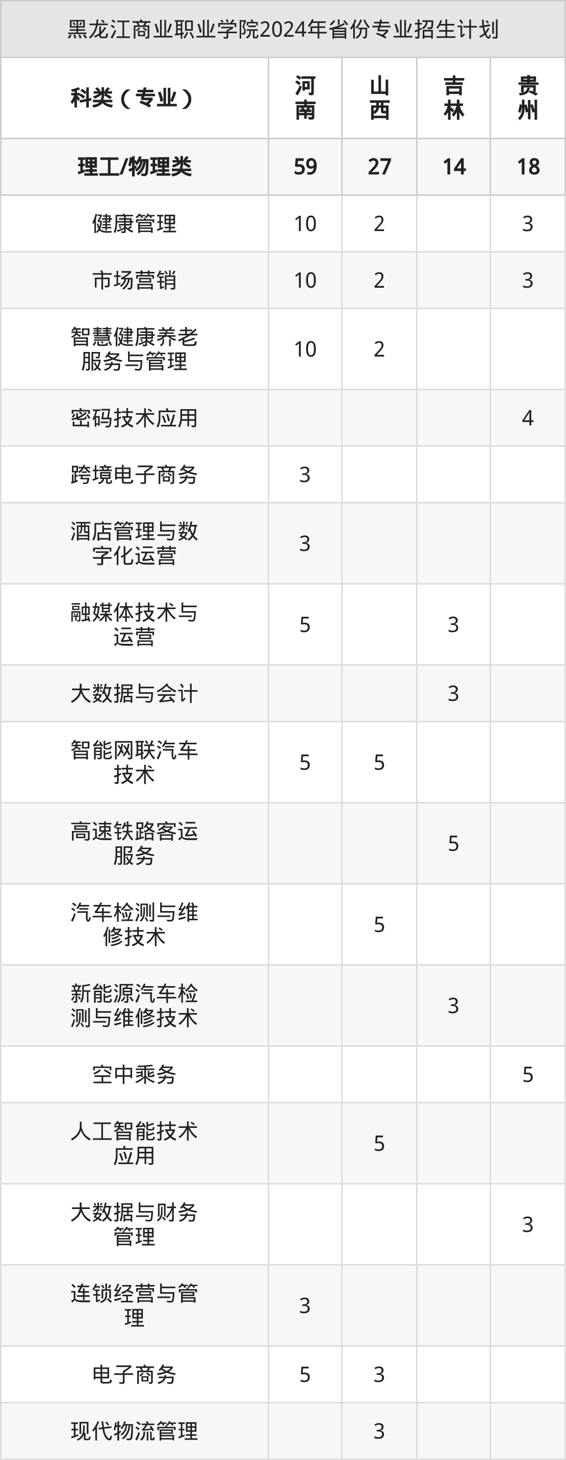 2025年黑龙江商业职业学院专科招生计划待公布,下面附上2024年数据,暂供参考: